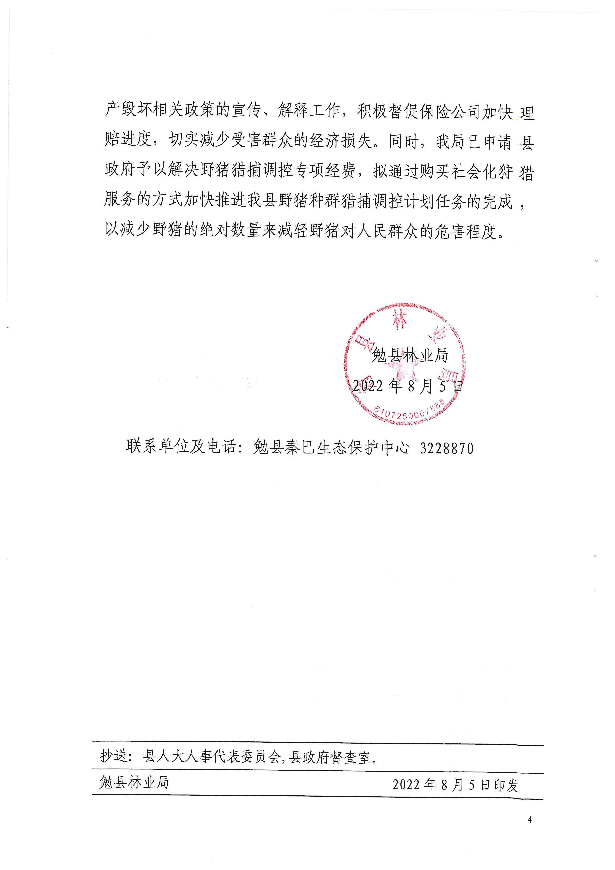 关于有效防止野猪致害人民群众生命