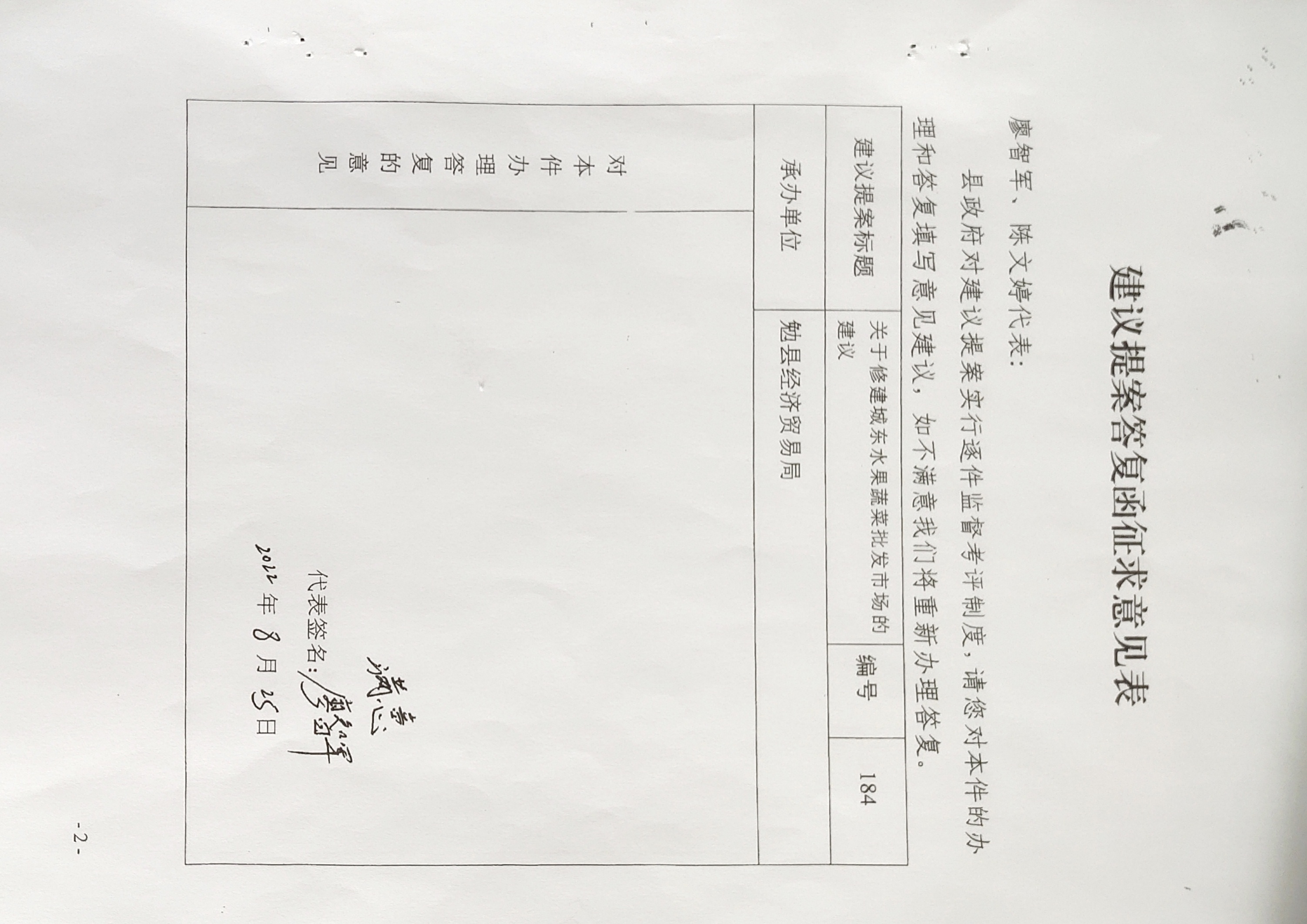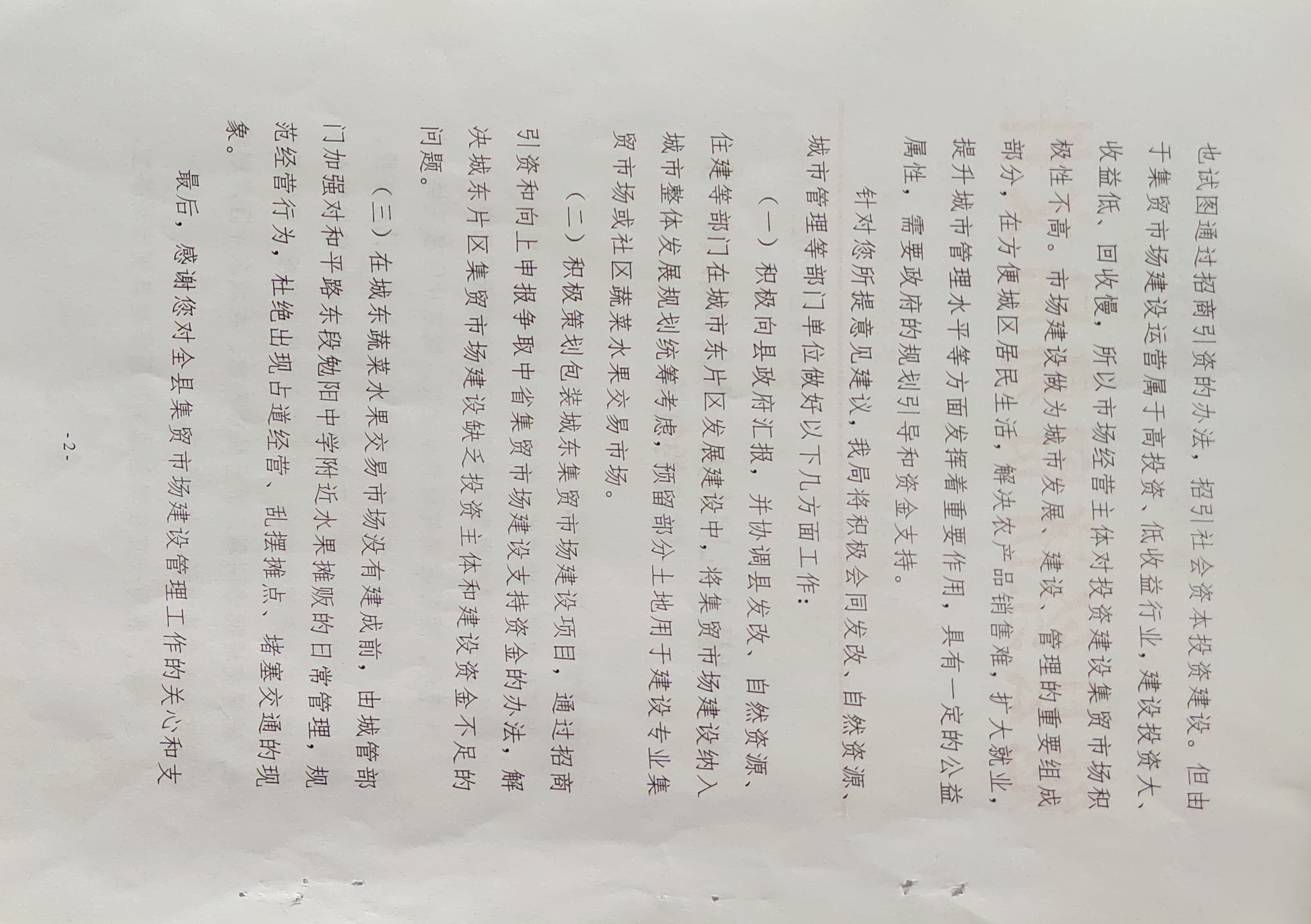 建 ⠂ 议:1、城东水果蔬菜批发市场的建设迫在眉睫,这即是保障居民基本生存的需要,也是保障绿色健康饮食的需要,更是提升城市文明形象的需要。提议在城东修建一个标准化水果蔬菜批发市场,以方便城东居民的生活和生产,保障民生供应,美化市容市貌。2、城管部门加强后期管理。