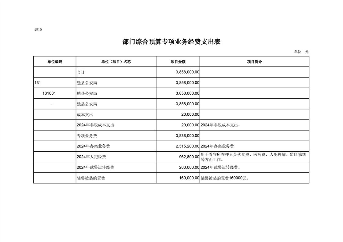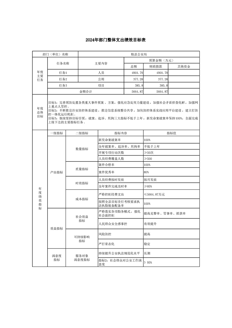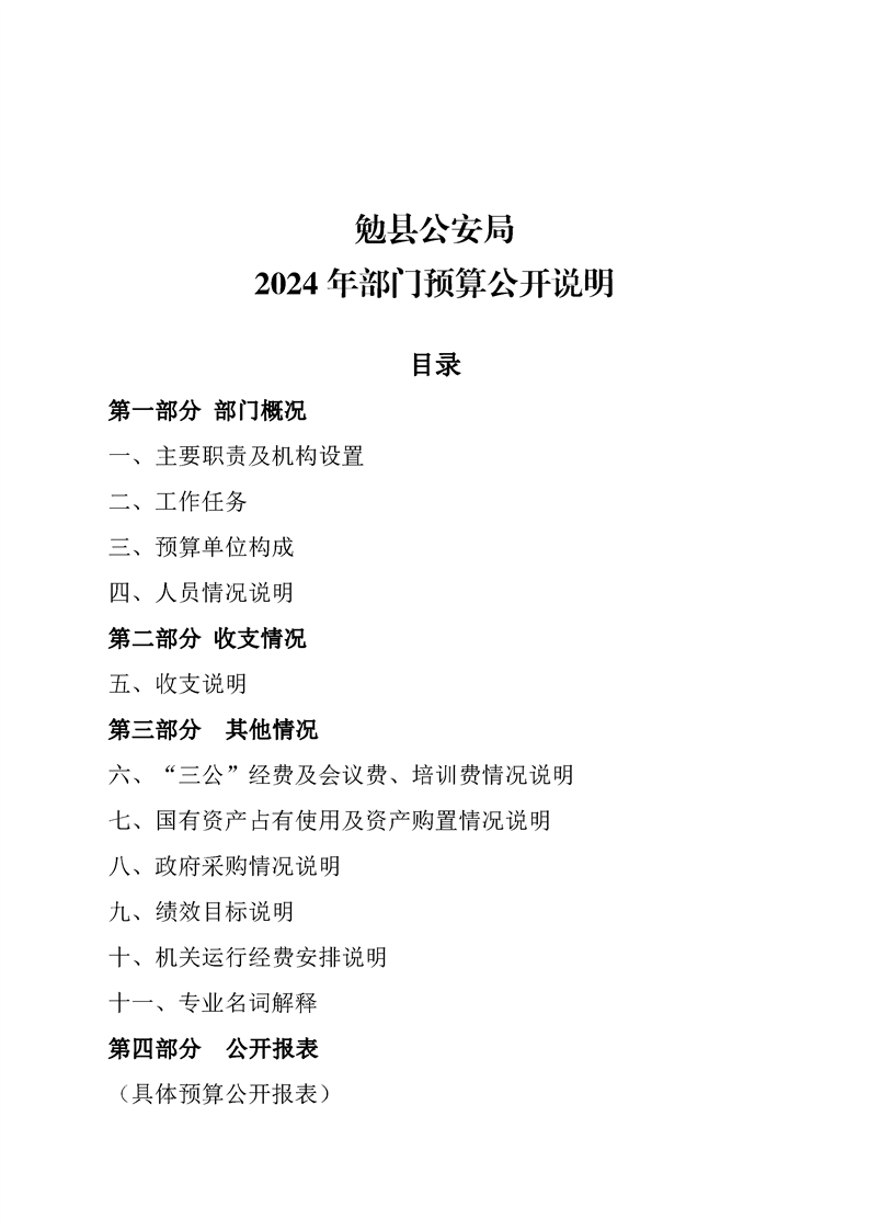 勉县公安局2024年部门预算公开说明