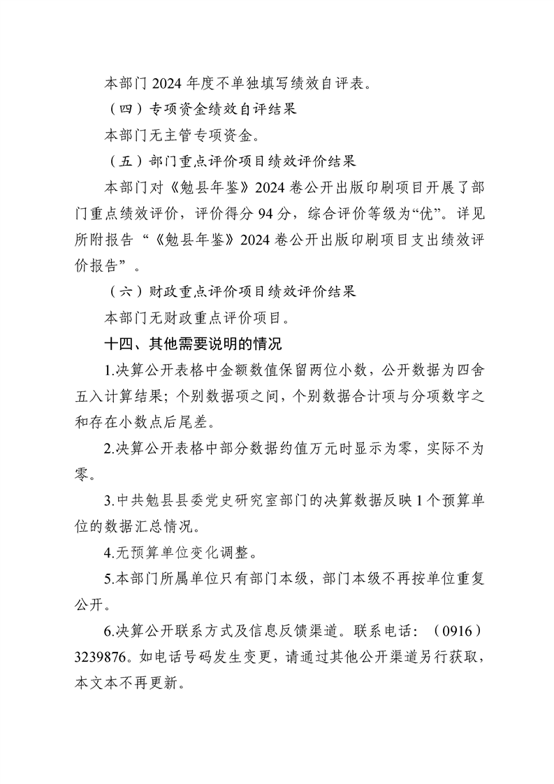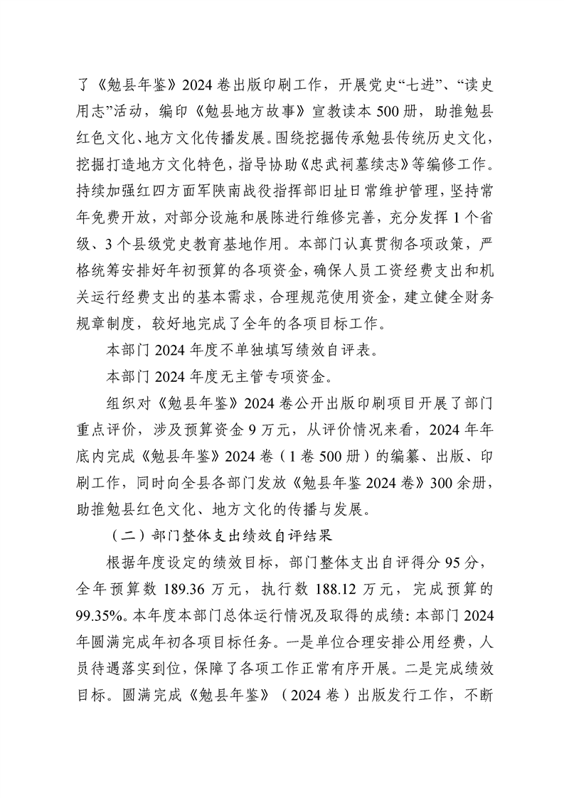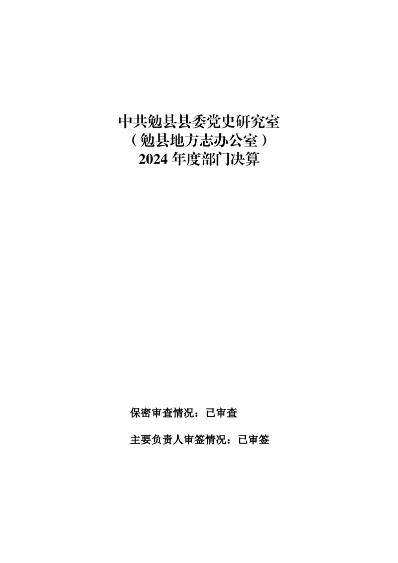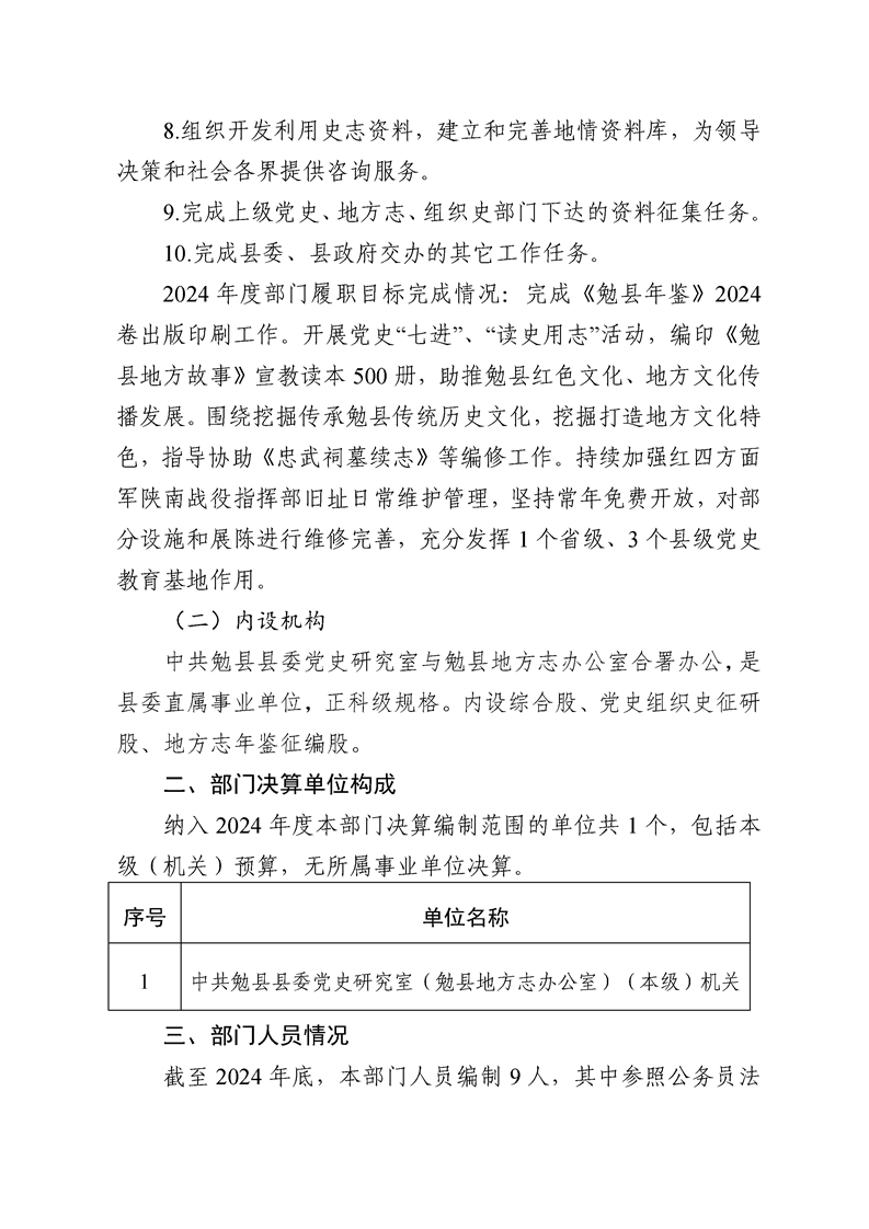 中共勉县县委党史研究室(勉县地方志办公室)2024年度部门决算公开