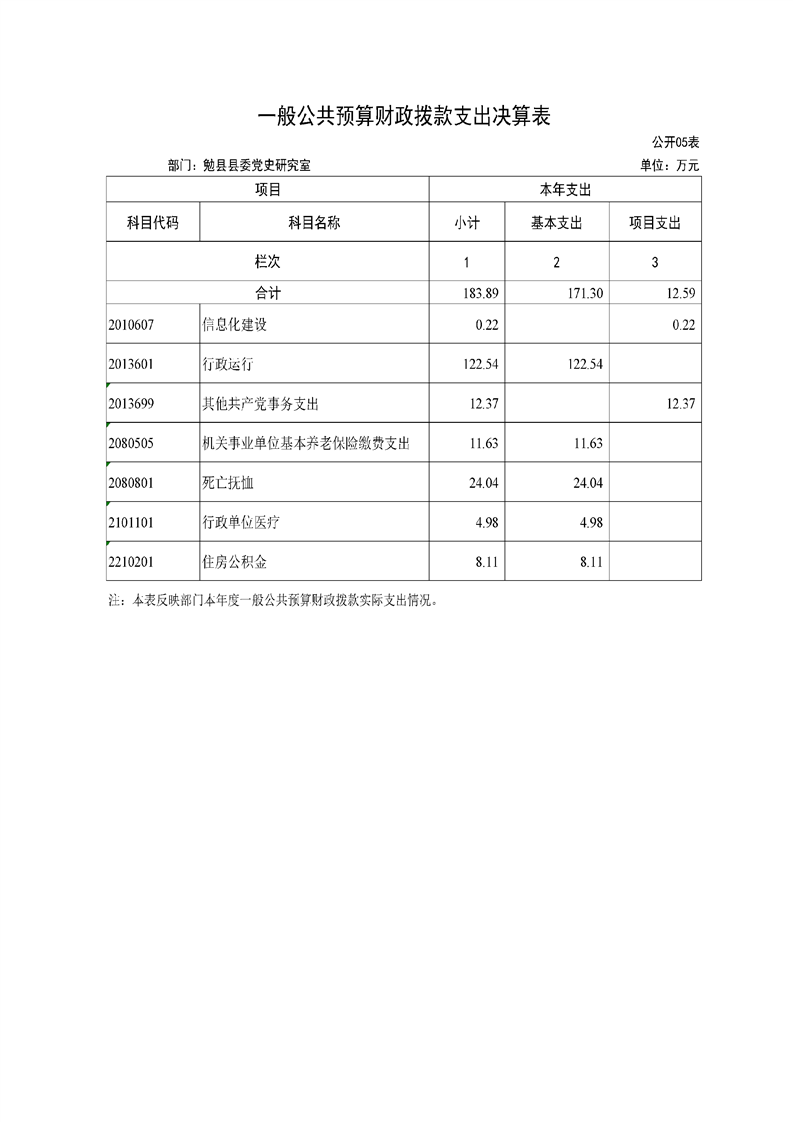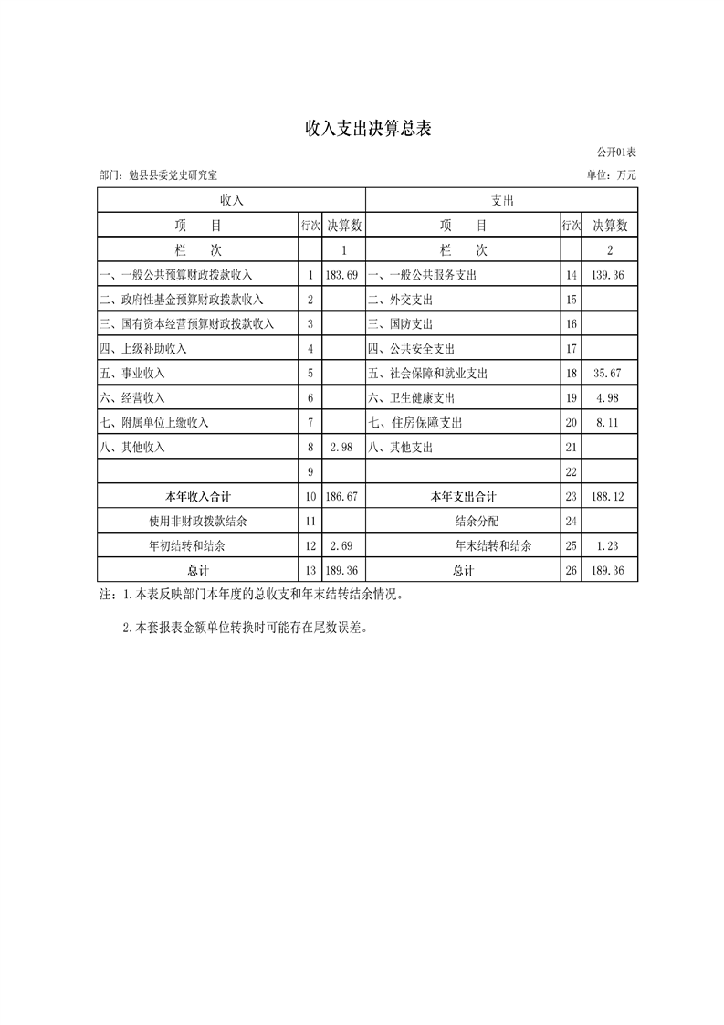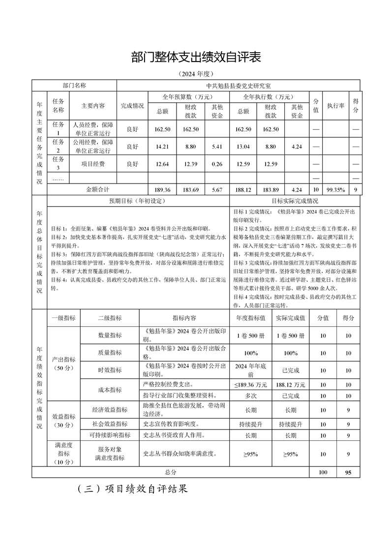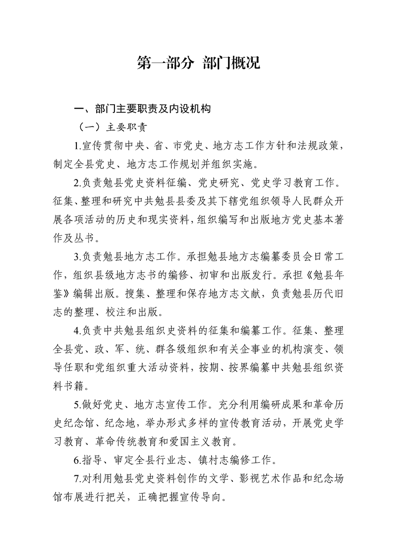 中共勉县县委党史研究室(勉县地方志办公室)2024年度部门决算公开
