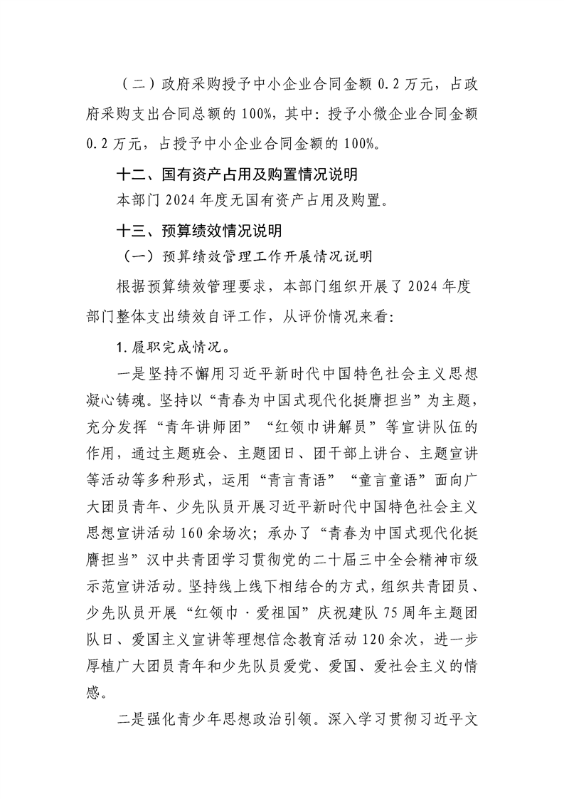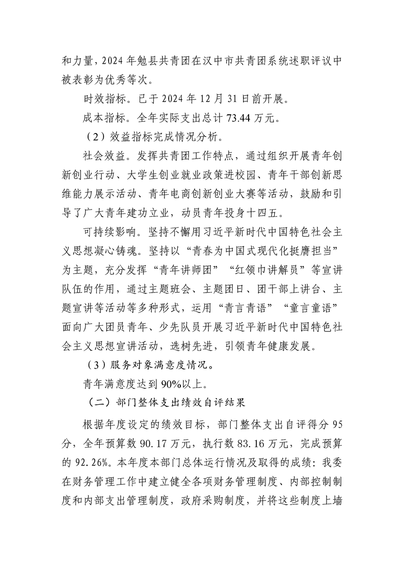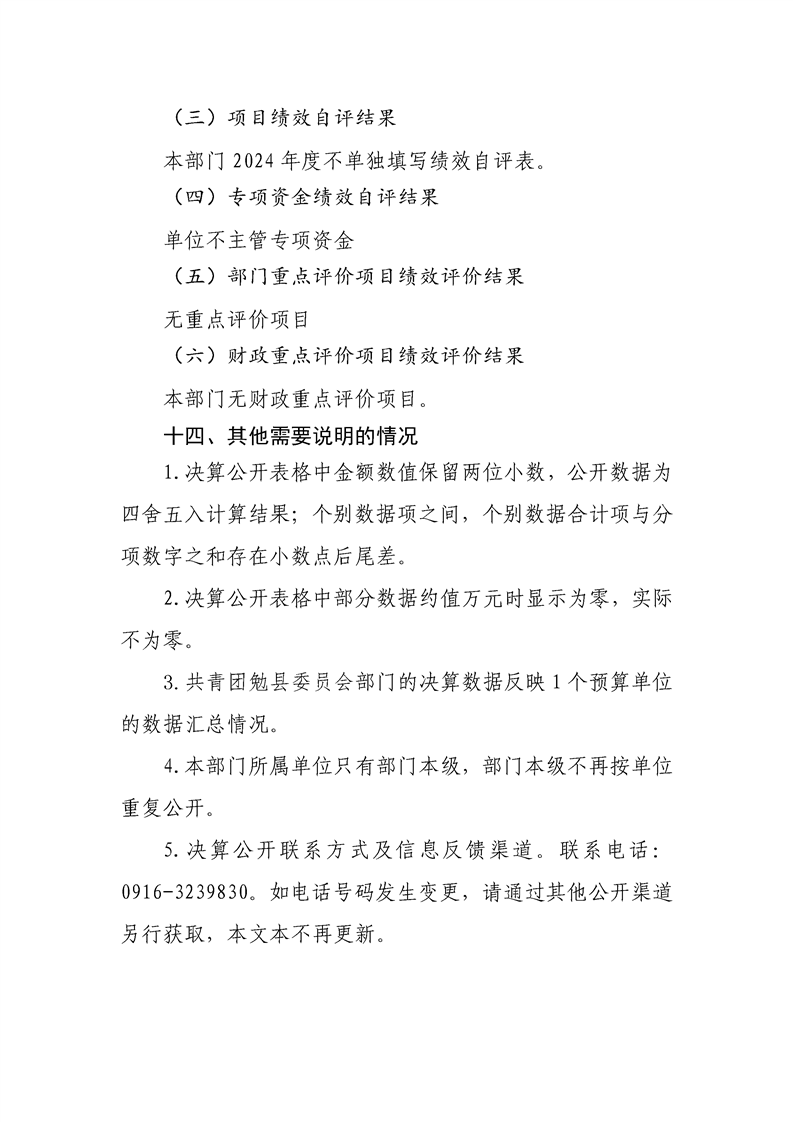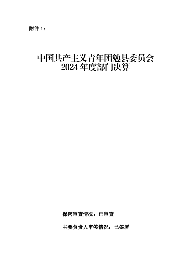 中国共产主义青年团勉县委员会2024年度部门决算公开