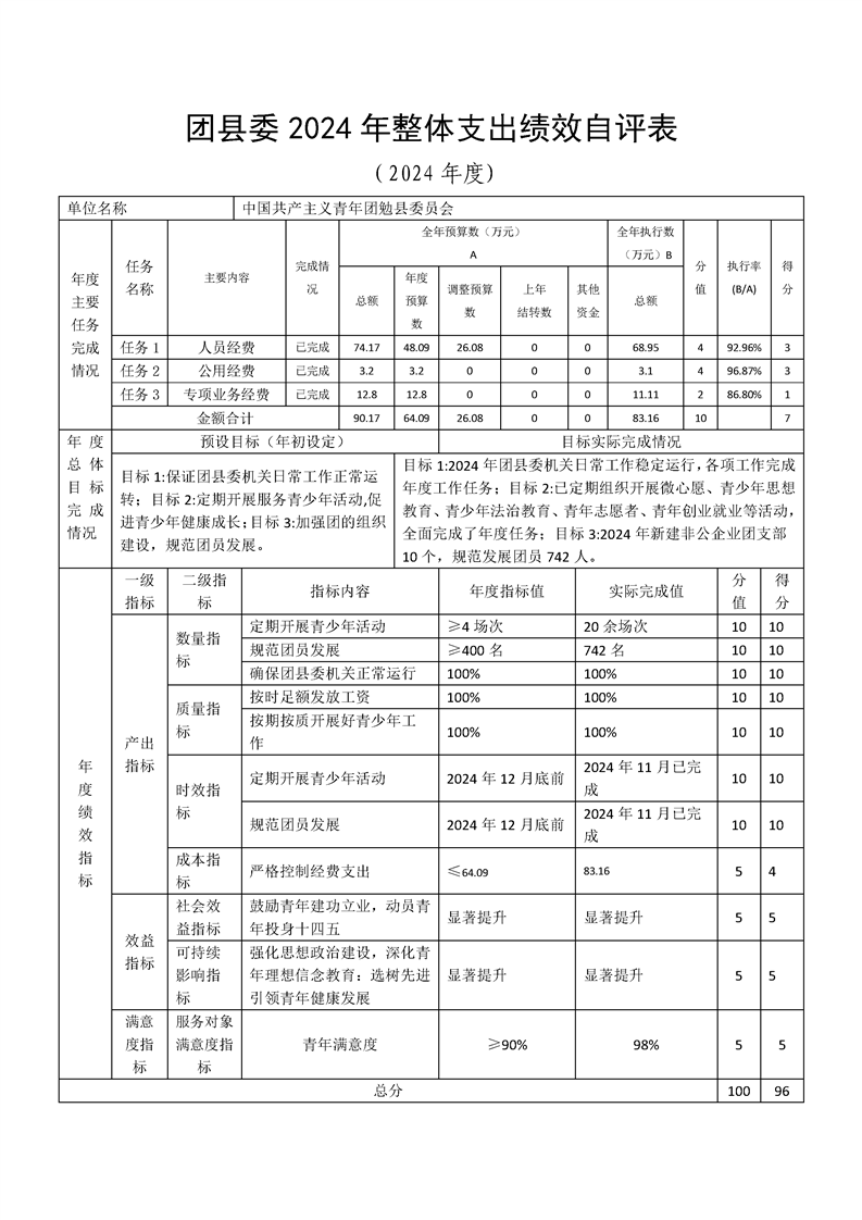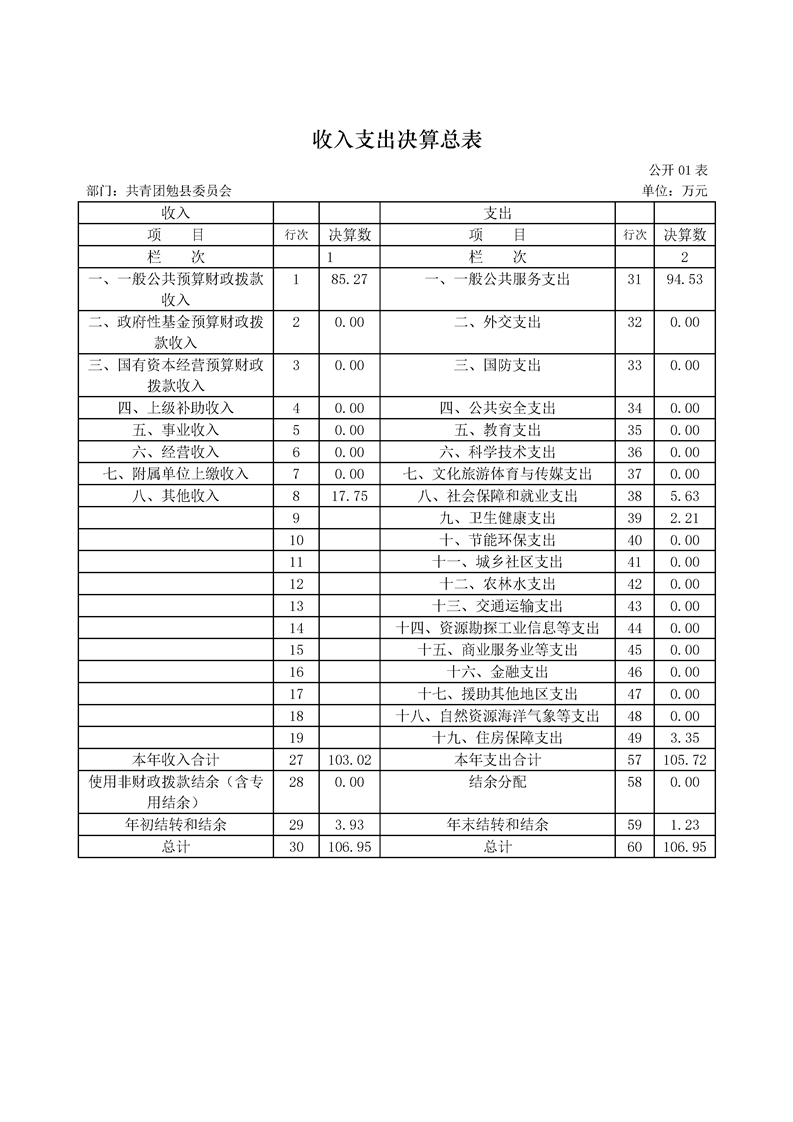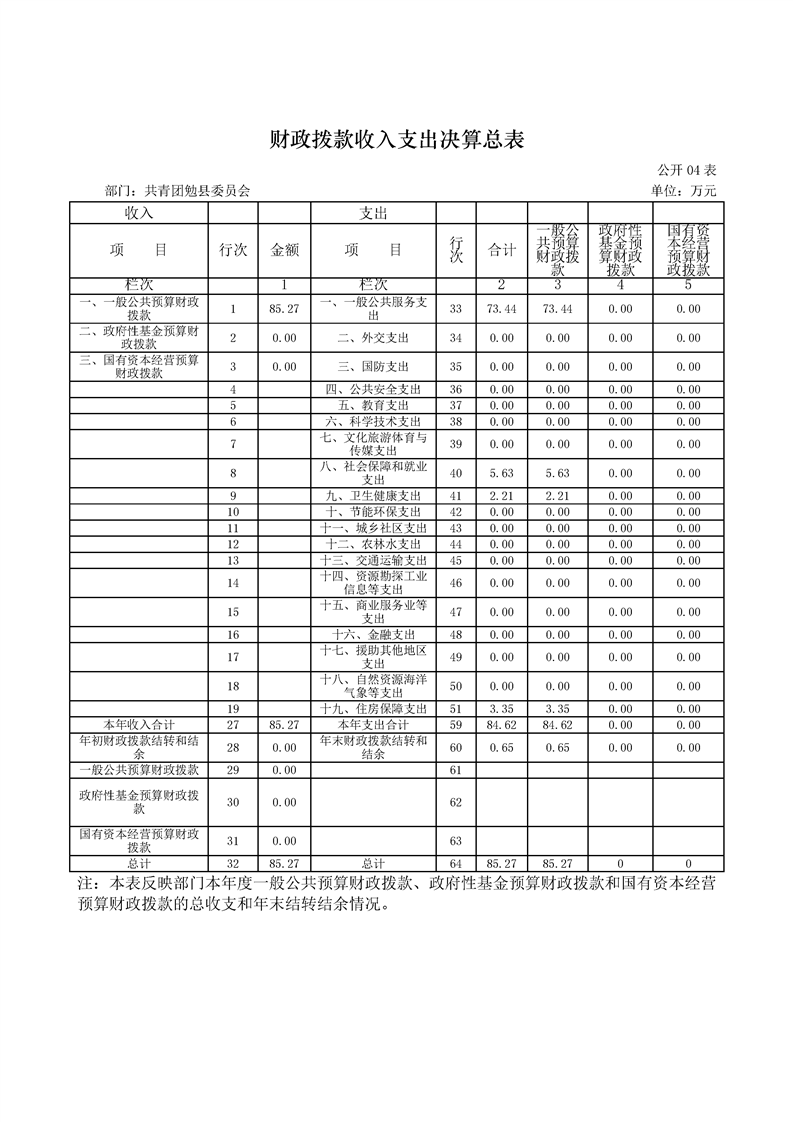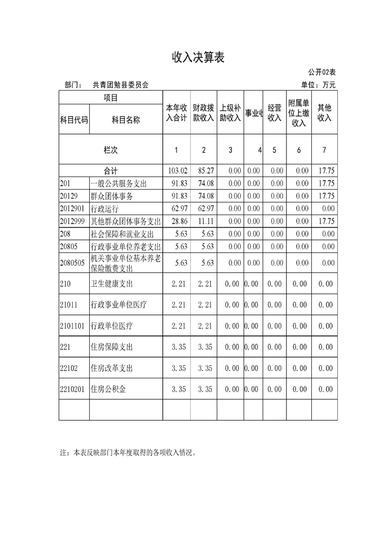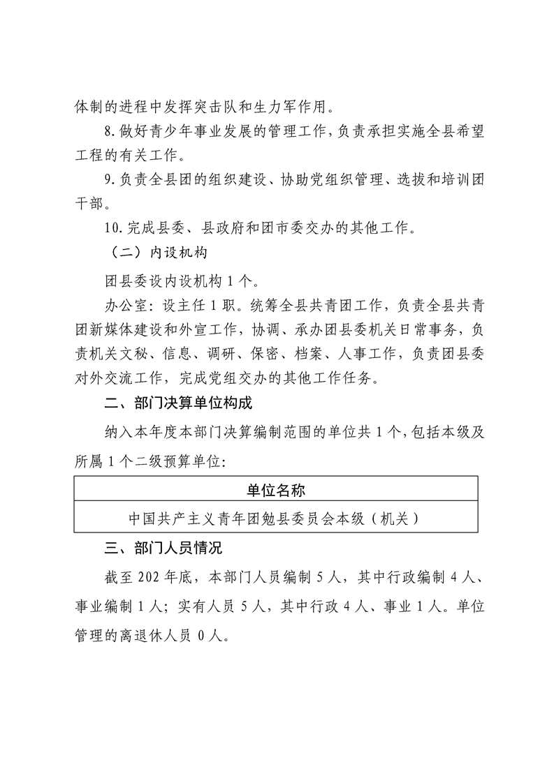 中国共产主义青年团勉县委员会2024年度部门决算公开