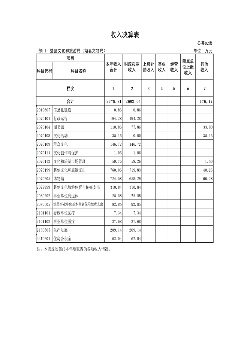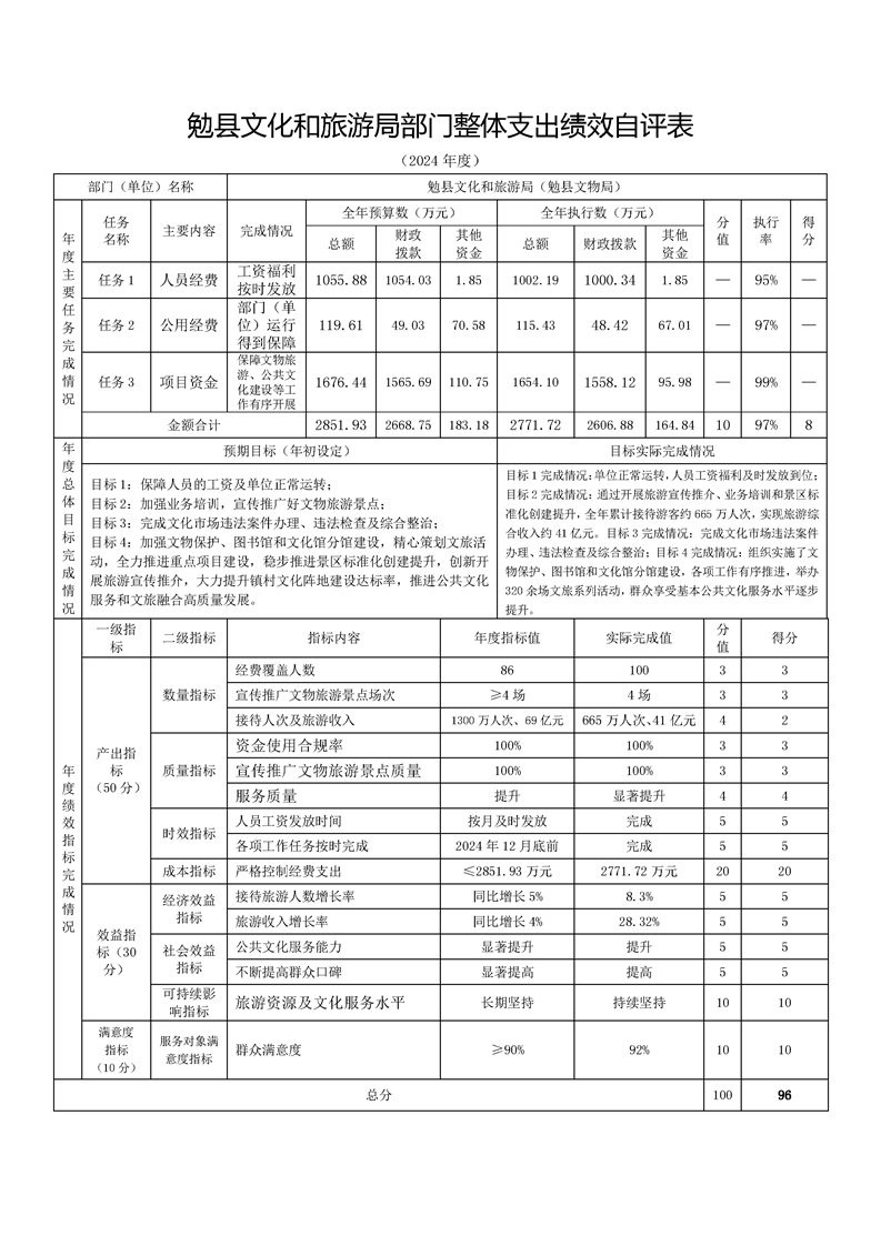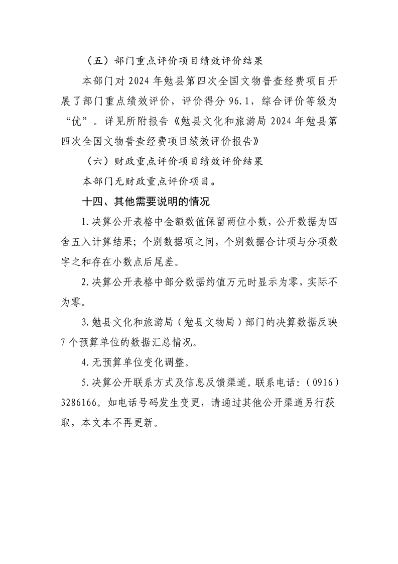 勉县文化和旅游局(勉县文物局)2024年度部门决算公开