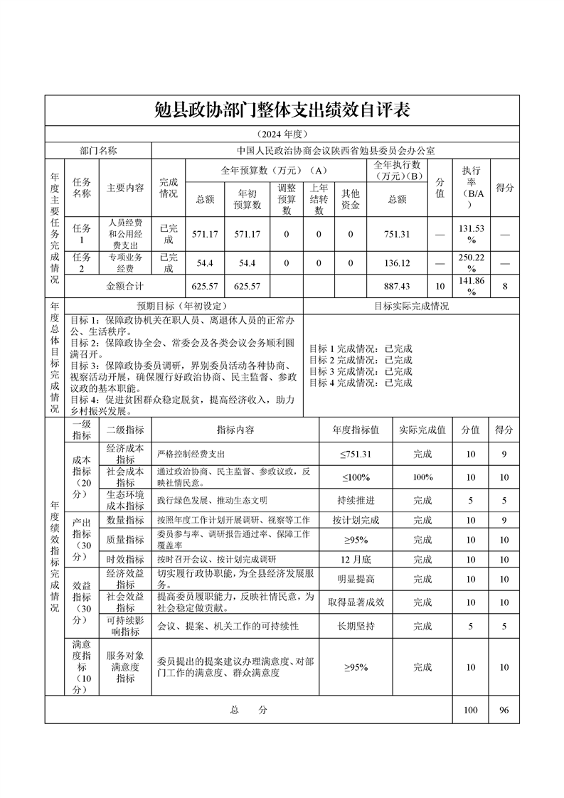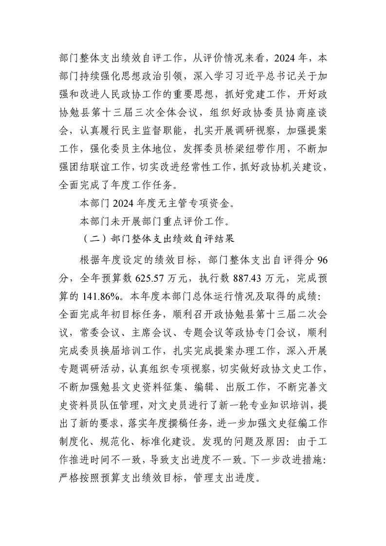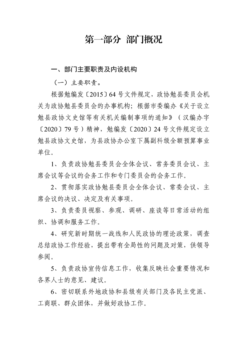 中国人民政治协商会议陕西省勉县委员会办公室2024年度部门决算
