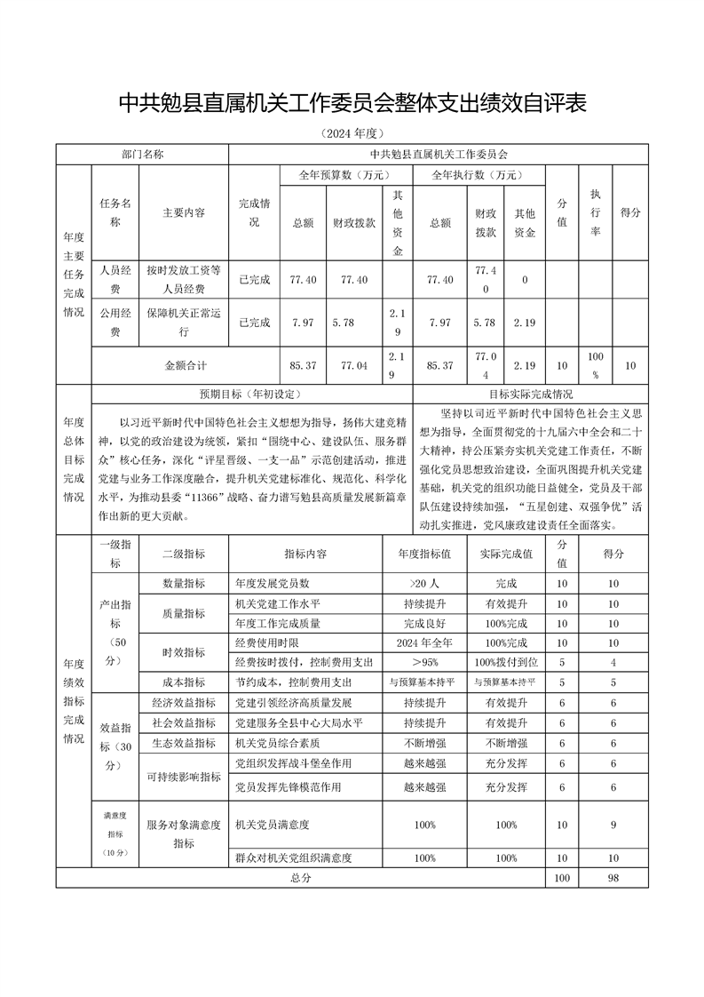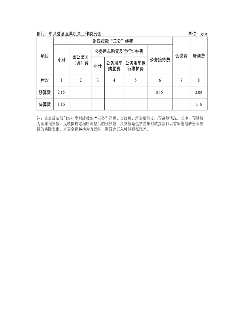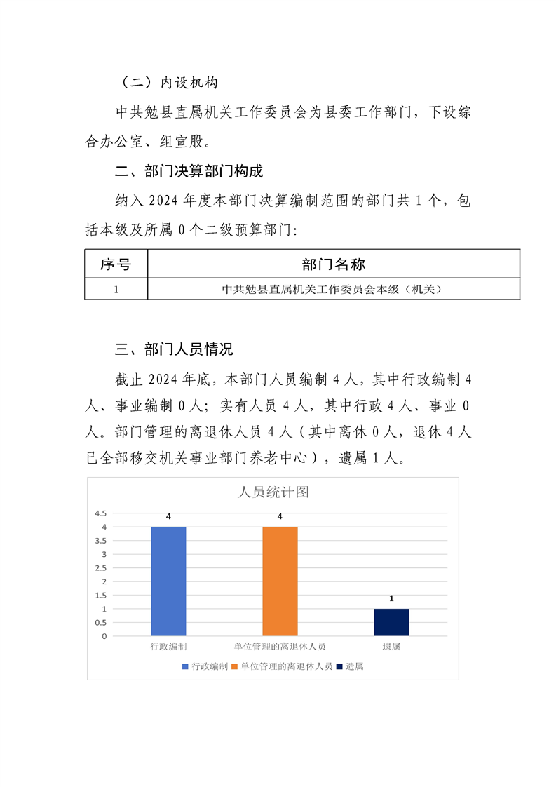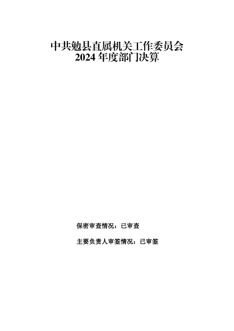 中共勉县直属机关工作委员会2024年度部门决算公开