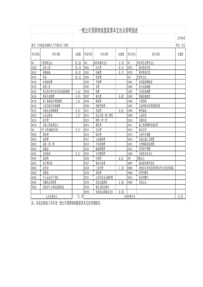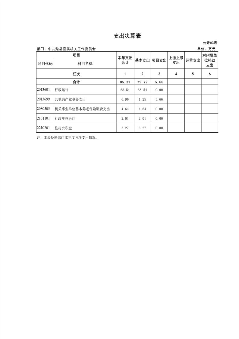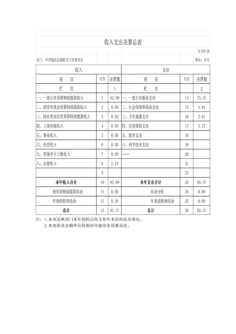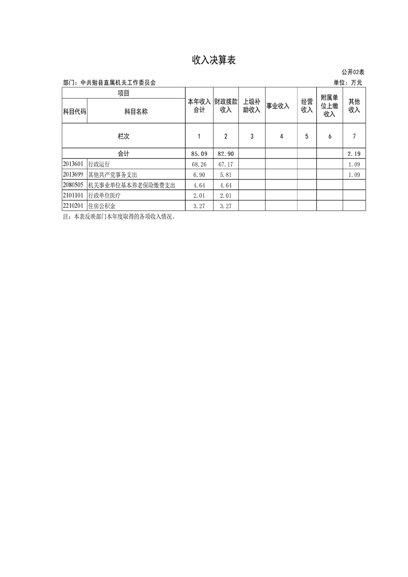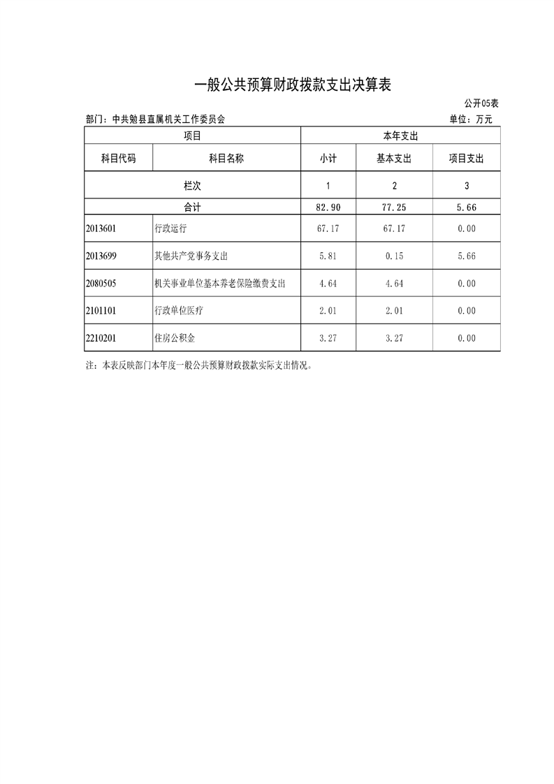 中共勉县直属机关工作委员会2024年度部门决算公开