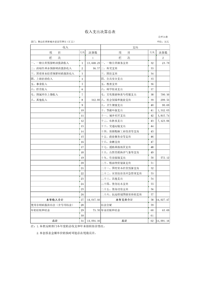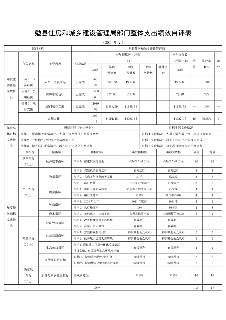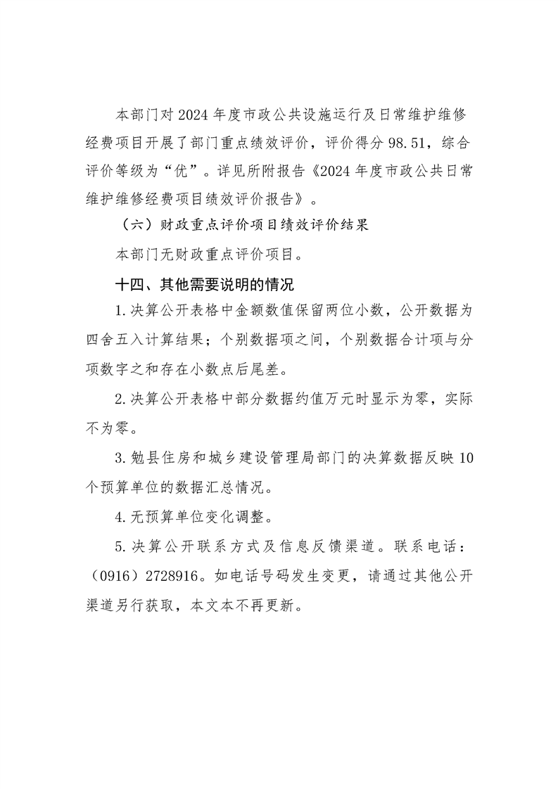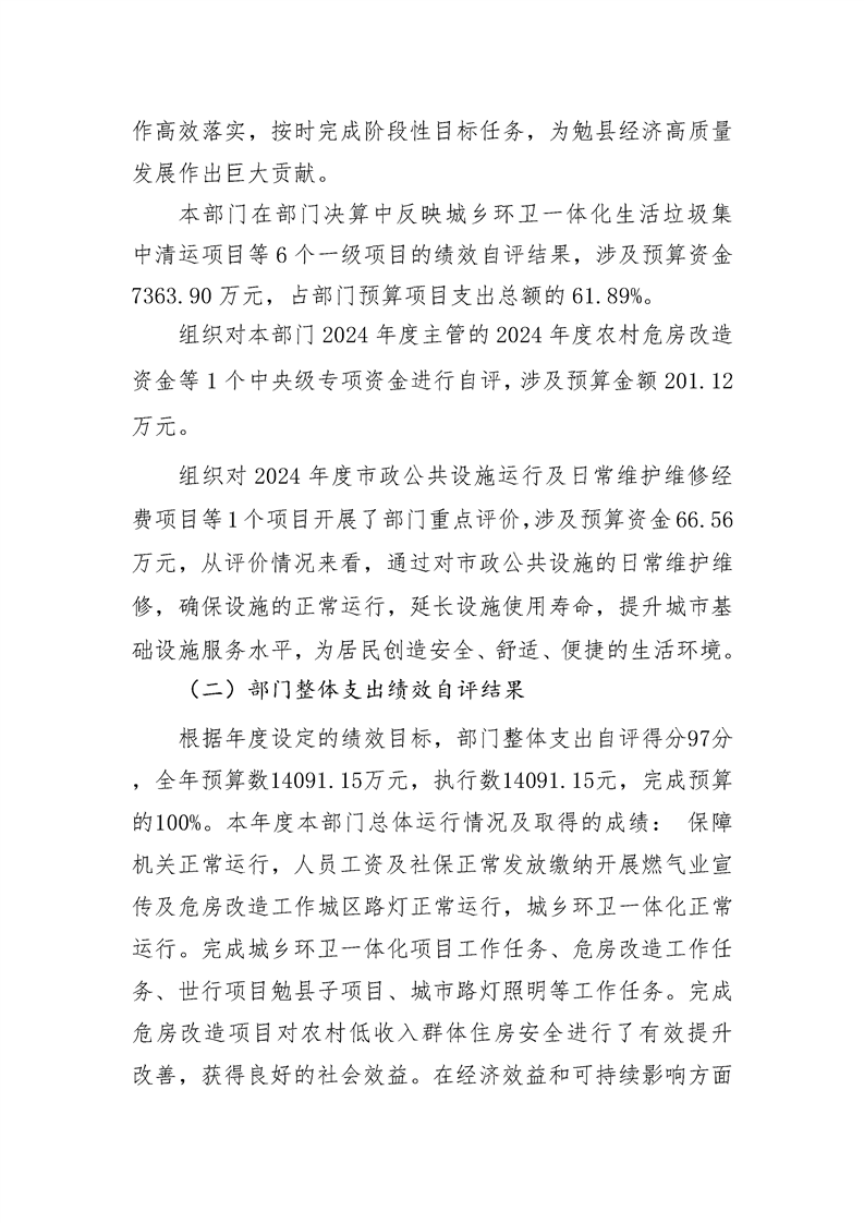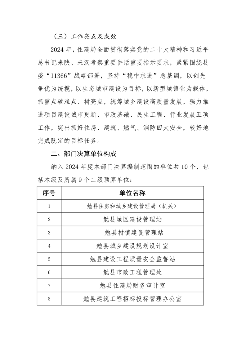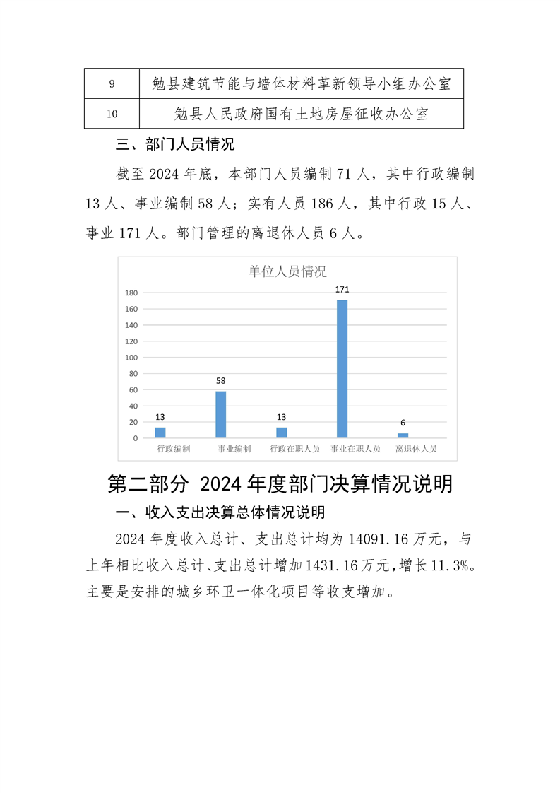 勉县住房和城乡建设管理局2024年度部门决算公开