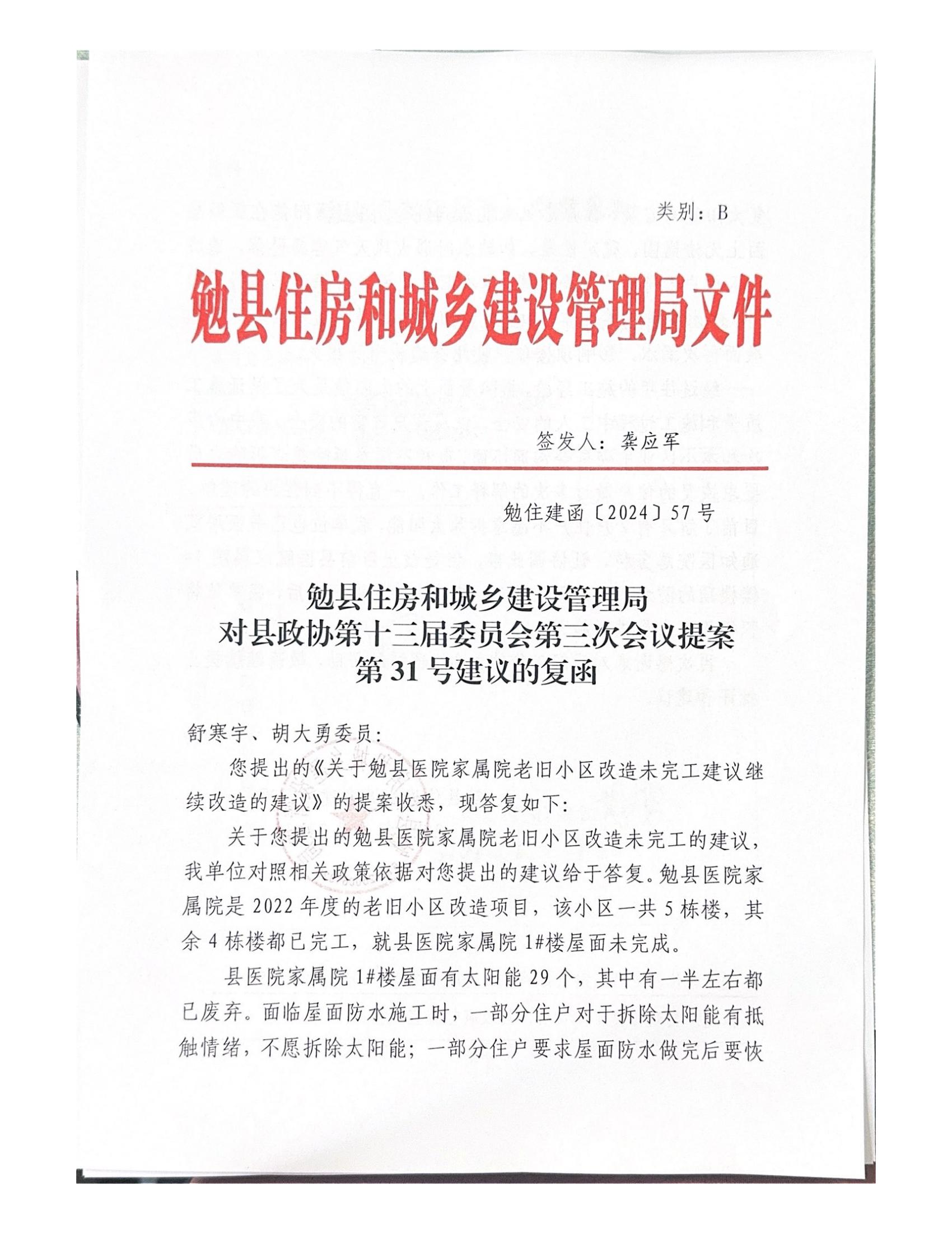 关于勉县医院家属院老旧小区改造未完工建议继续改造的建议