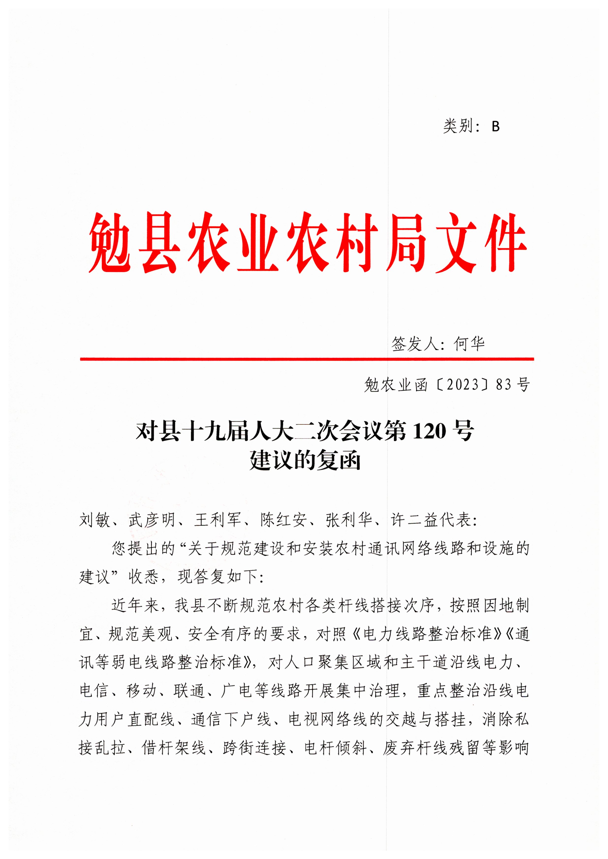 附议代表:武彦明、王利军、陈红安、张利华、许二益