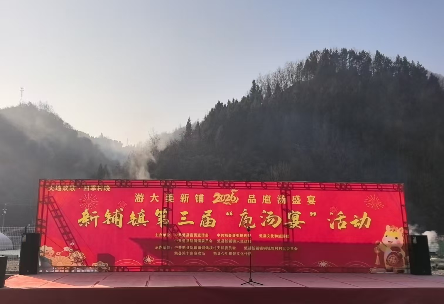 腊月时节,年味渐浓。勉县新铺镇第三届庖汤宴在铜钱坝村勉县鸿丰家庭农场火热开席。县委常委、统战部长皇少君、县委常委、宣传部长周云秀、县常委会人大常委会副主任周波、县政府副县长殷强、县政协党组成员杨豪出席活动,近千名游客、党员干部及志愿者与村民齐聚一堂,共赴乡土风情年味盛宴。