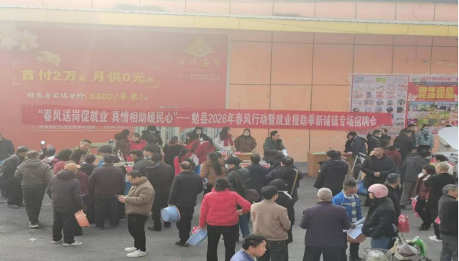 2月5日(农历腊月十八),“春风送岗促就业 真情相助暖民心”勉县2026年春风行动暨就业援助季乡镇专场招聘活动,在新铺镇新铺湾社区福万家购物广场顺利举办。本次活动旨在搭建供需对接平台,精准服务企业用工和群众就业需求,为新铺镇及周边群众送上“家门口”的就业服务。