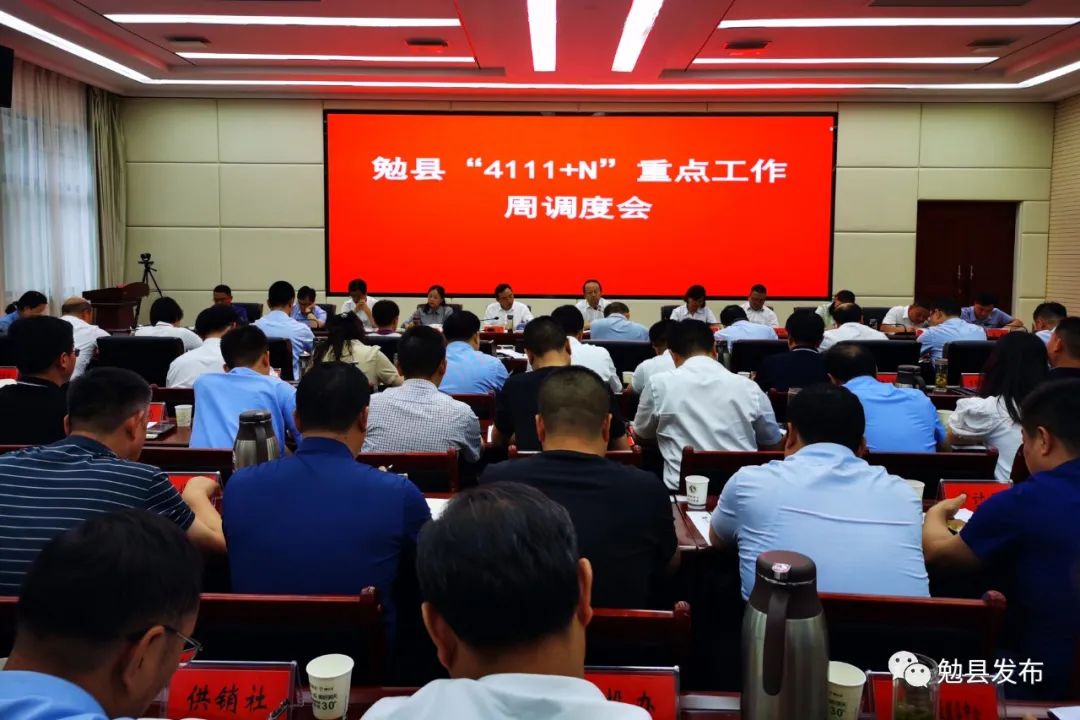7月18日下午,我县召开“4111+N”重点工作调度会议,认真贯彻落实市委六届三次全会精神,传达全市“4111”调度会议精神,总结分析上半年各项经济指标运行情况,听取重点项目建设、工业经济、乡村振兴、巩固衔接、防汛备汛等重点工作汇报,安排部署当前重点工作任务。市人大常委会副主任、县委书记黎建军出席会议并讲话;县委副书记、县长罗国才主持会议;县人大常委会主任王翠红,县政协主席李剑飞,县委副书记、政法委书记李妮等全体在家县级领导及相关部门、镇(街道)主要负责同志参加会议。