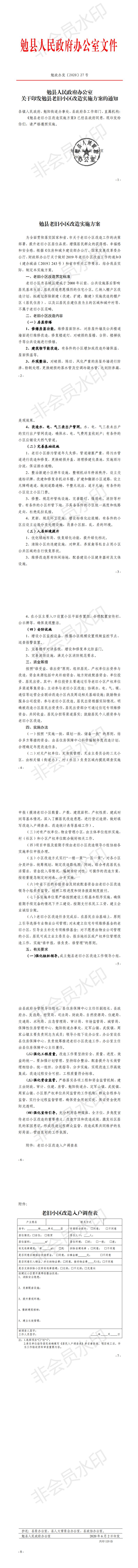 勉政办发〔2020〕27号关于印发勉县老旧小区改造实施方案的通知