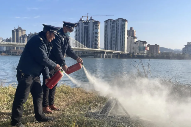 本次演练特别邀请县消防救援大队专业教官全程指导,确保演练科学规范、贴合实际。演练正式启动前,教官结合园林环卫行业工作特性,从干粉灭火器的构造原理、适用场景、操作步骤等核心知识入手,通过“理论讲解+现场演示”的方式,详细拆解“提、拔、握、压”操作要领,重点强调了火灾初期扑救的关键时机、安全距离把控及应急避险注意事项。随后,参演员工分组进行实操训练,熟练掌握灭火器使用技巧,切实将理论知识转化为实战能力。