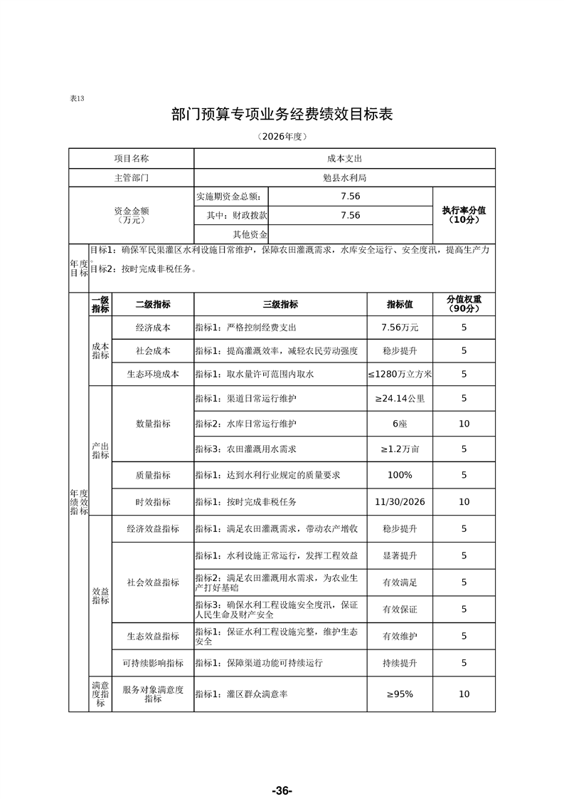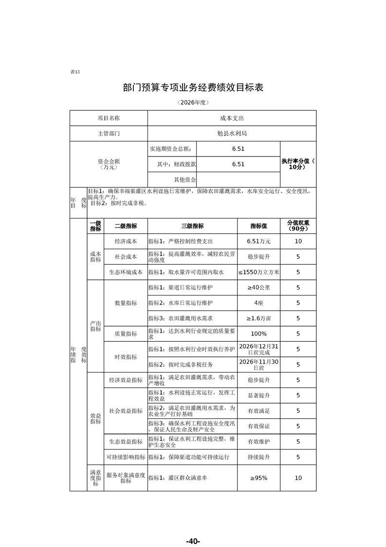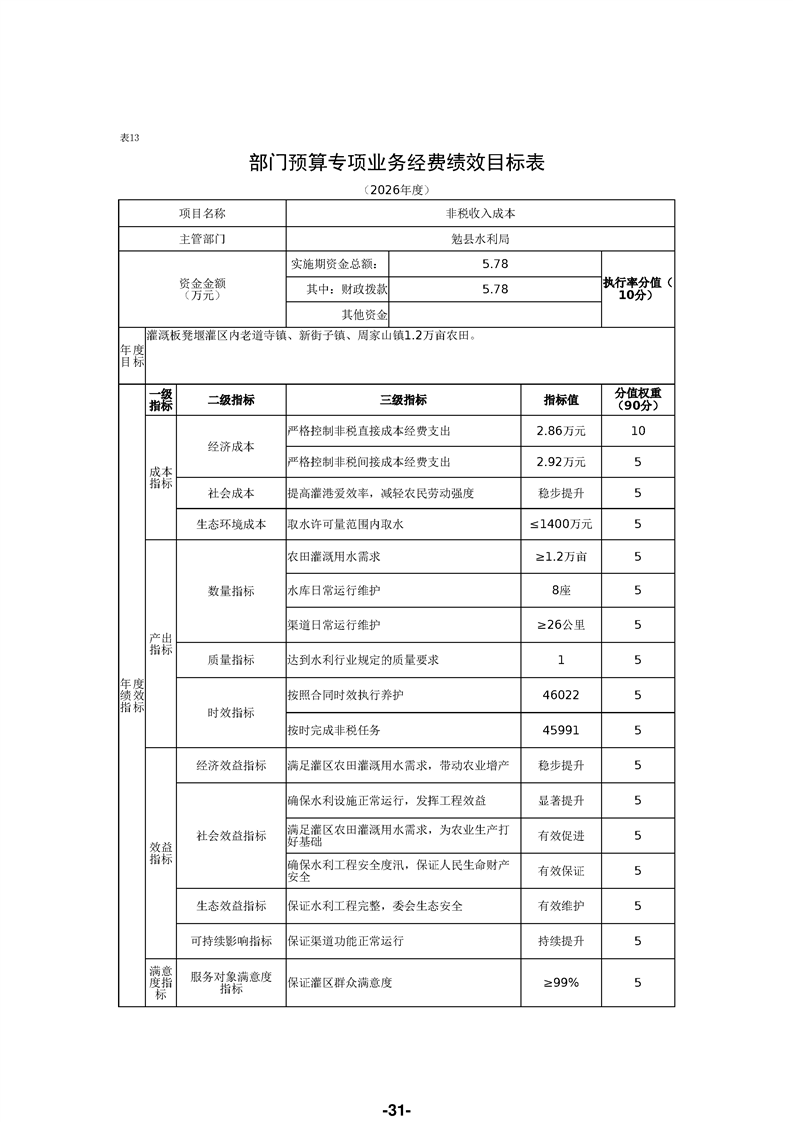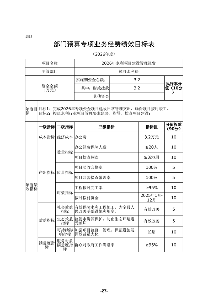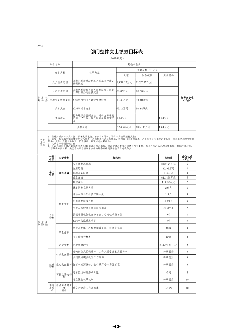 勉县水利局(汇总)2026年部门预算公开说明