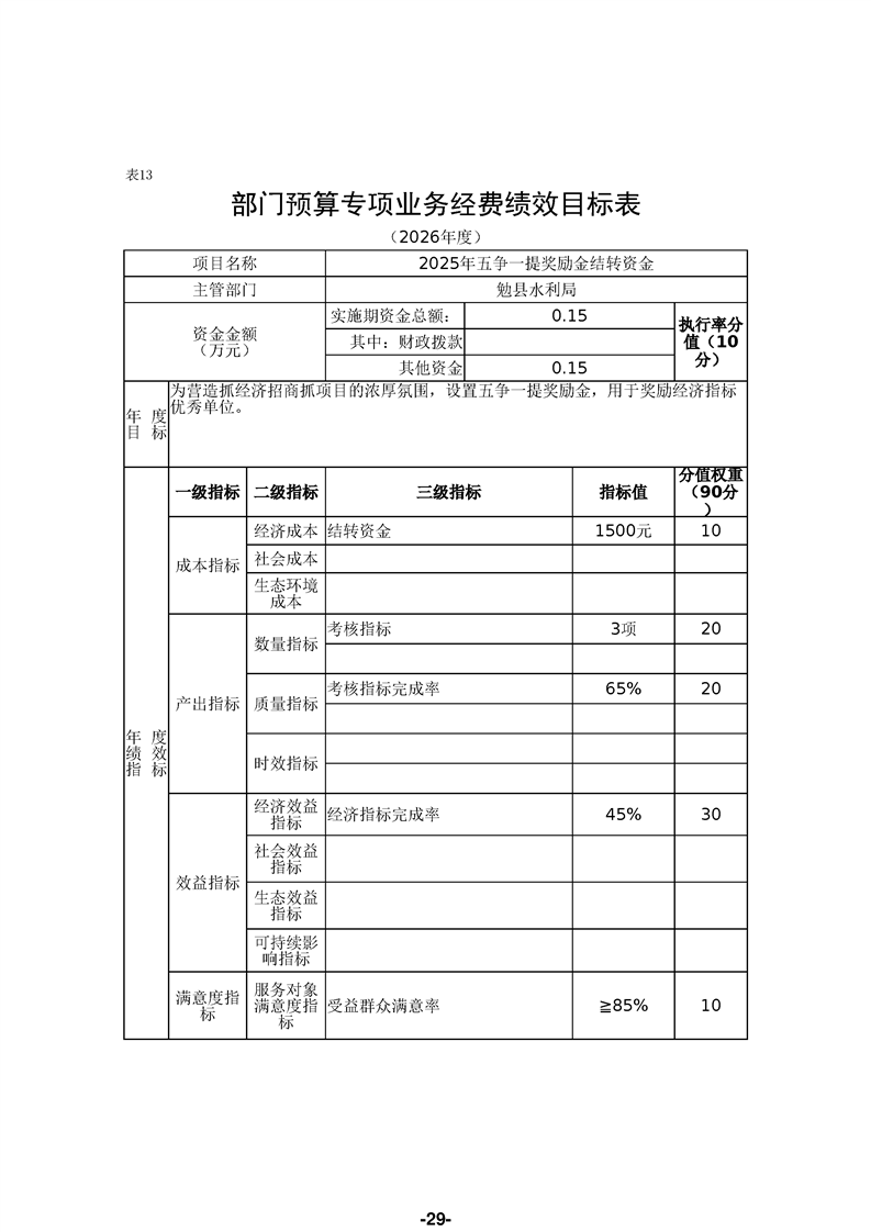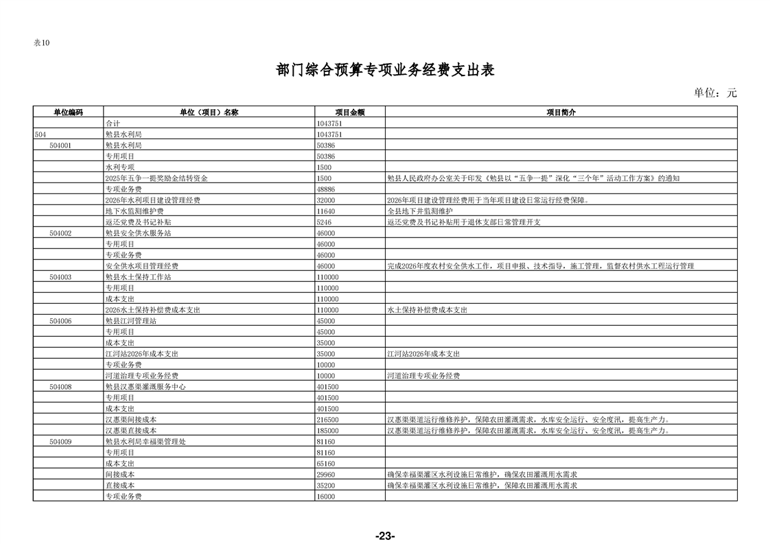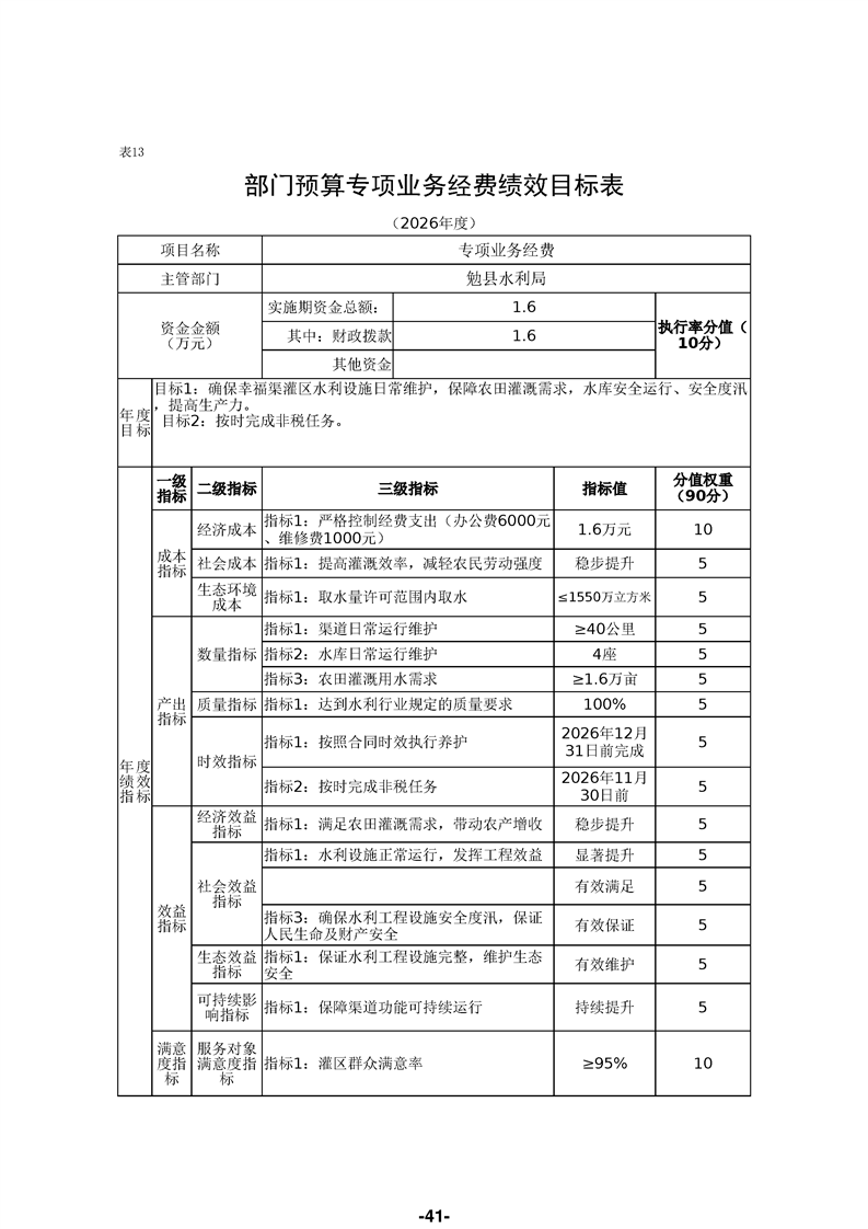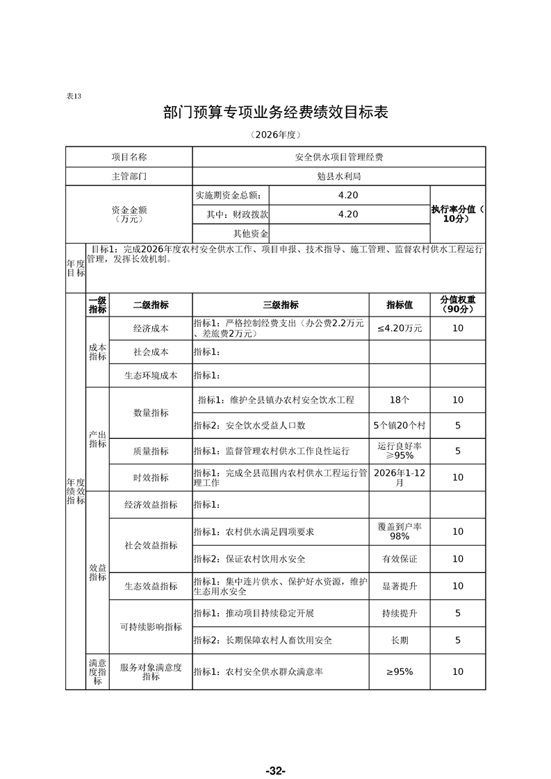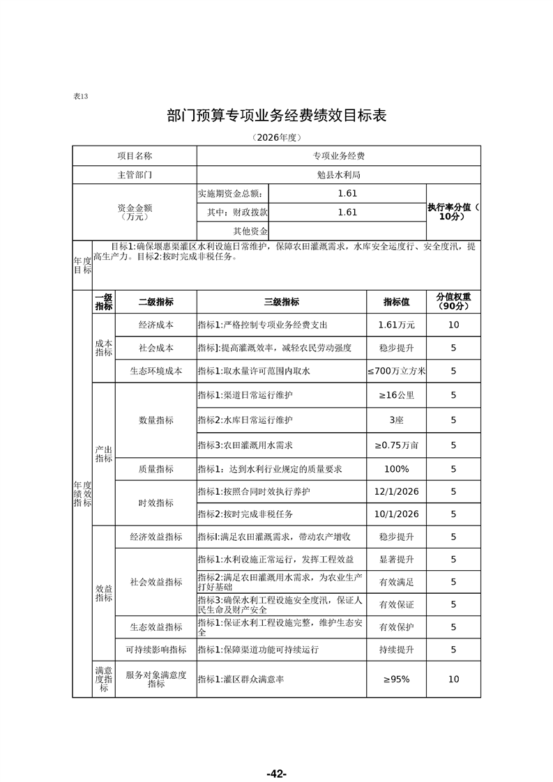 勉县水利局(汇总)2026年部门预算公开说明