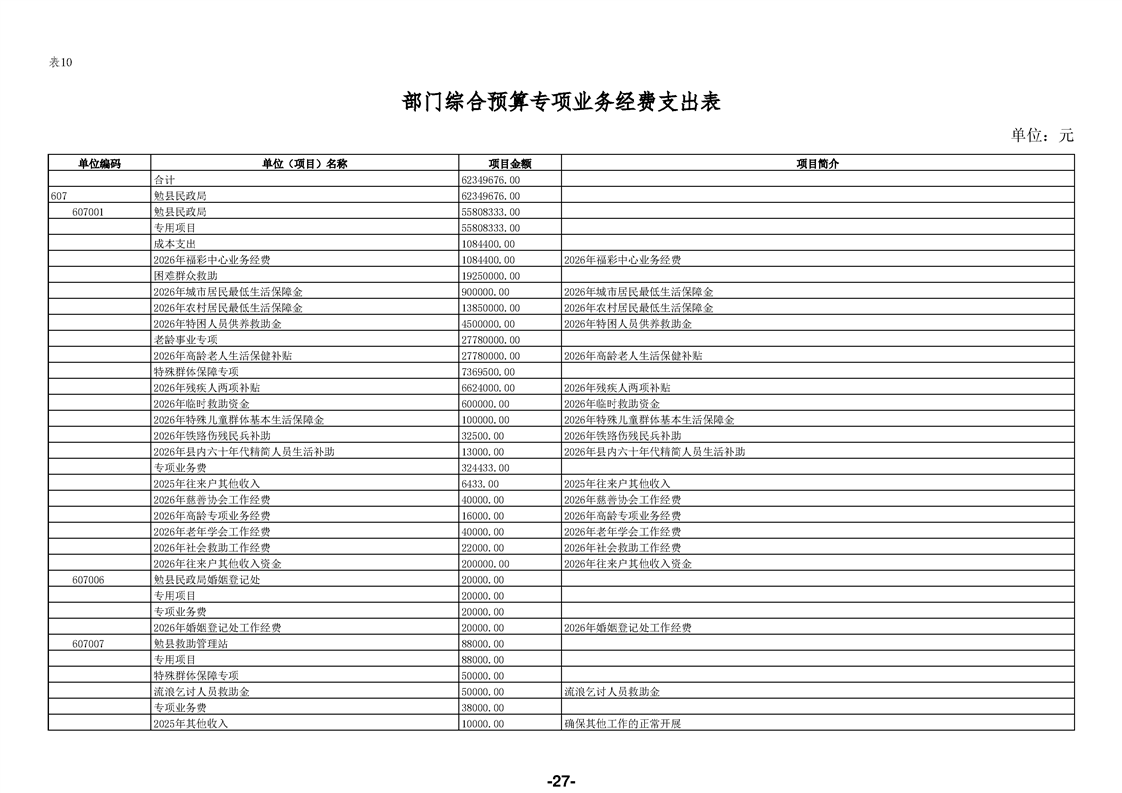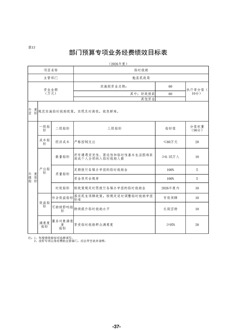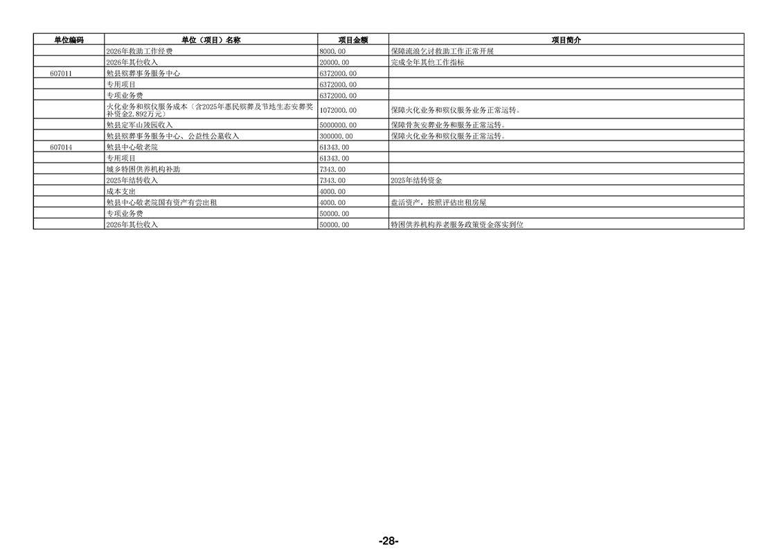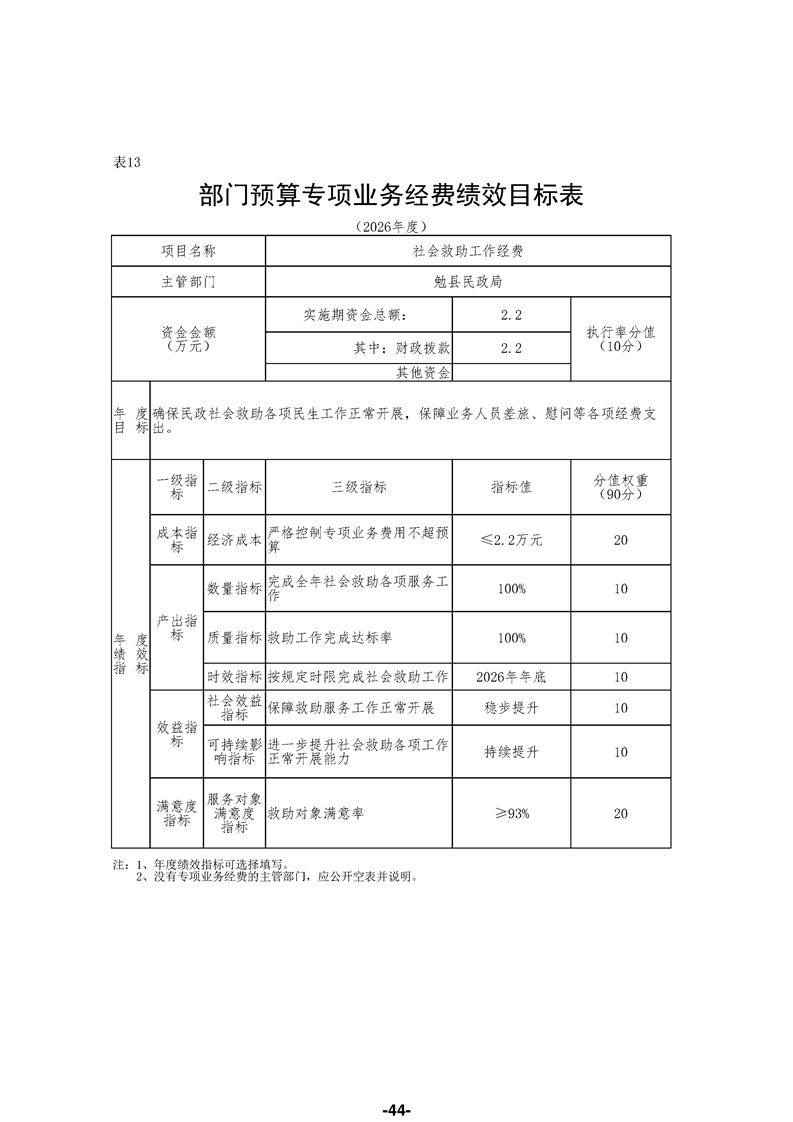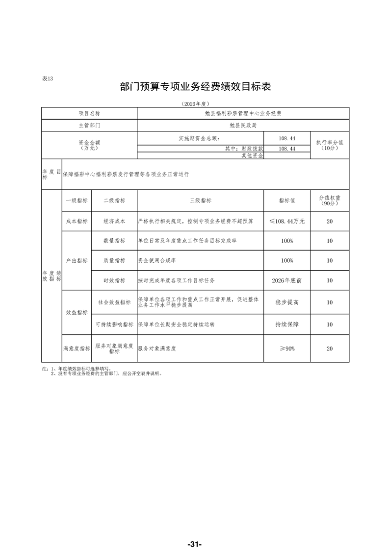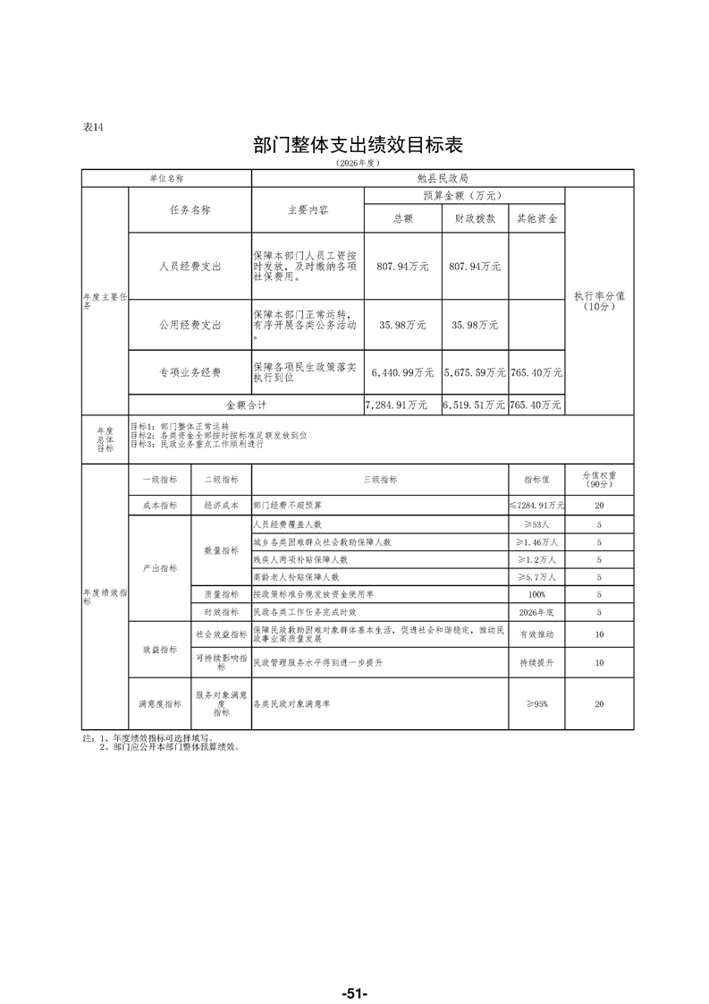 勉县民政局(汇总)2026年部门预算公开说明