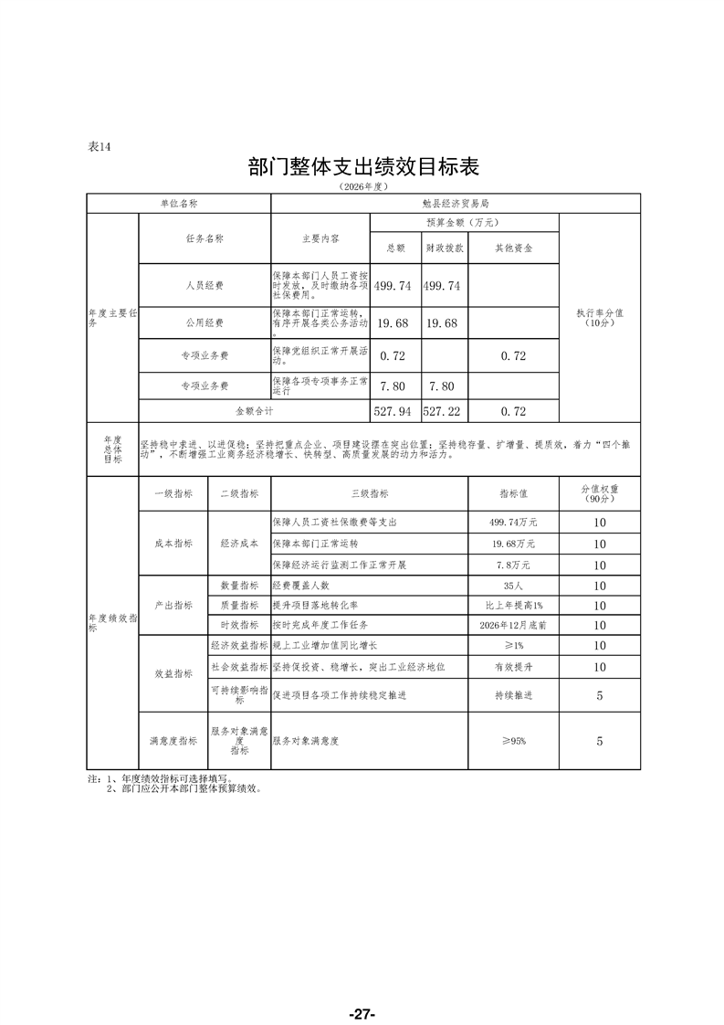 勉县经济贸易局(汇总)2026年部门预算公开说明