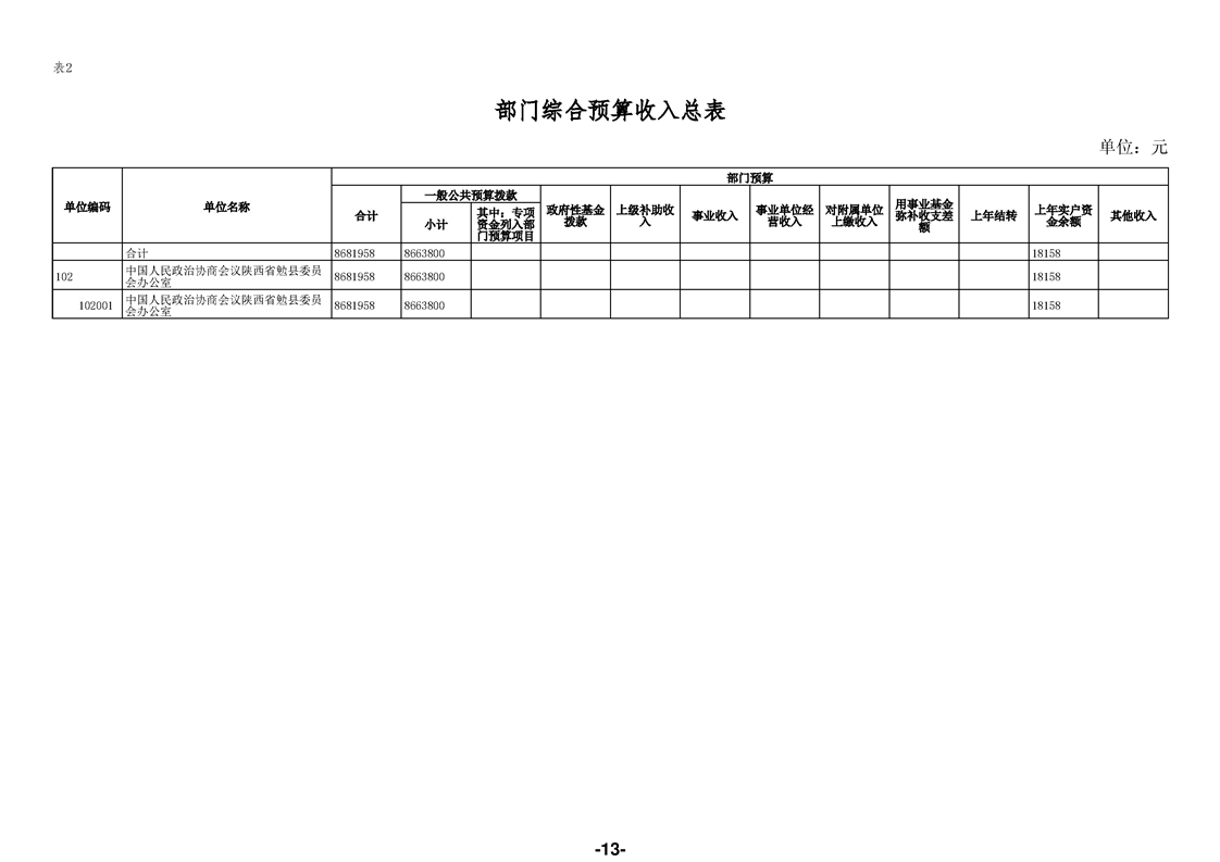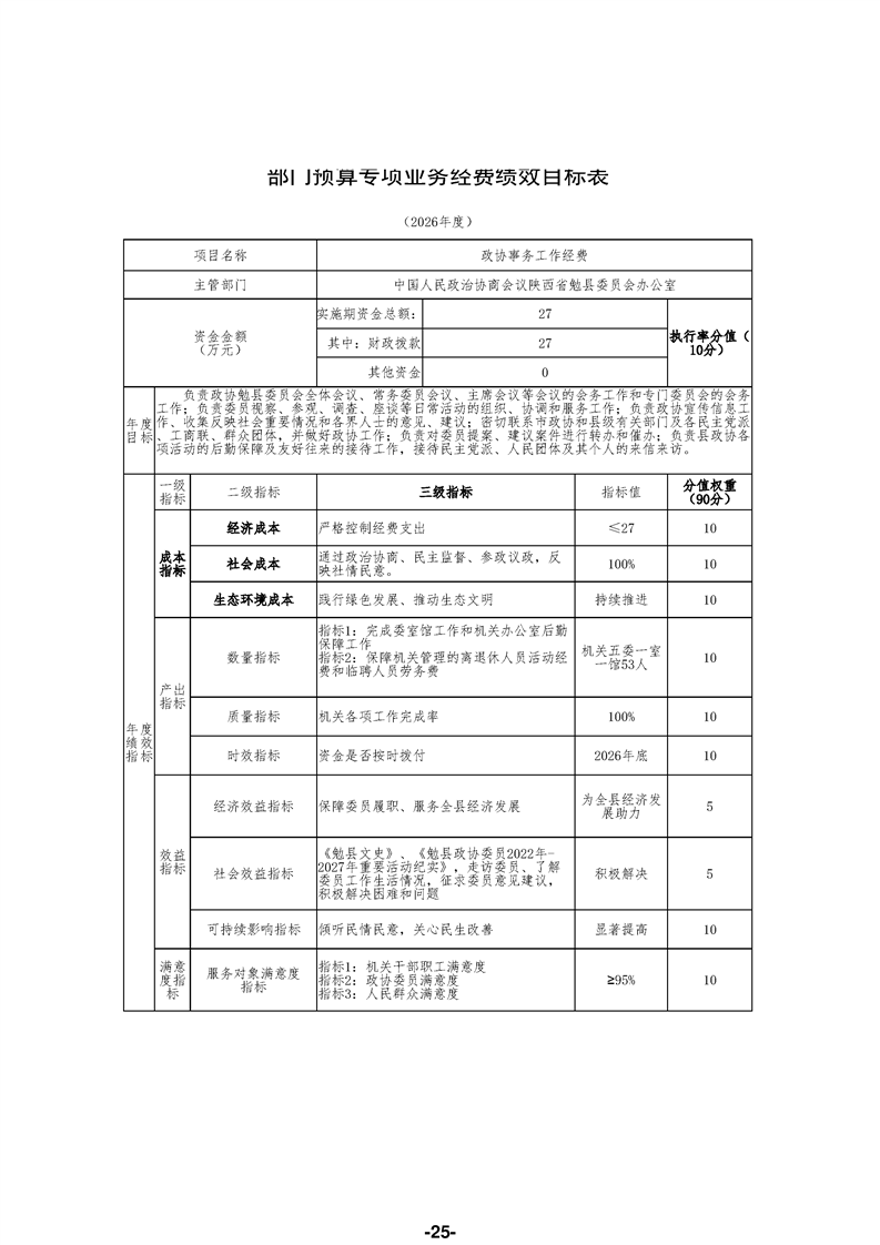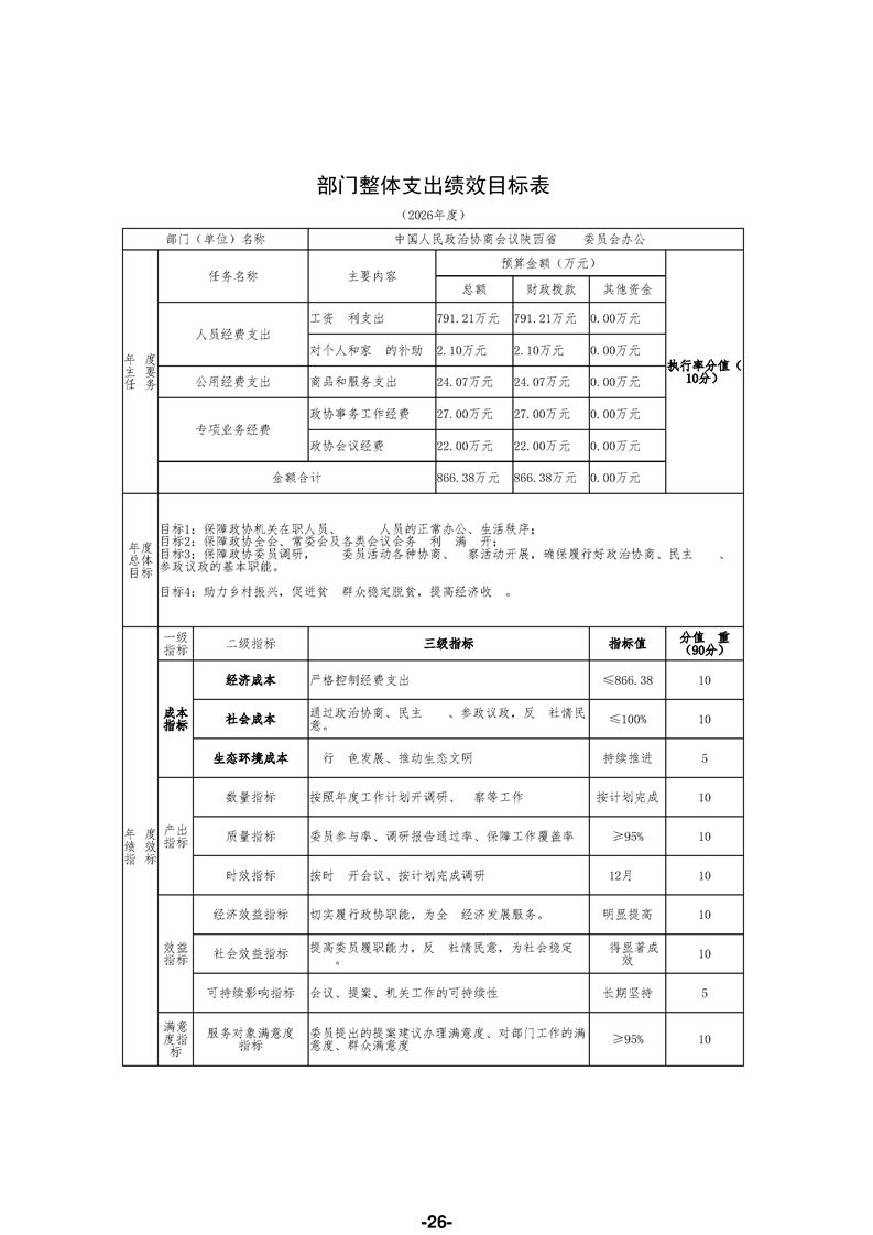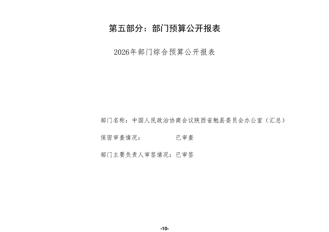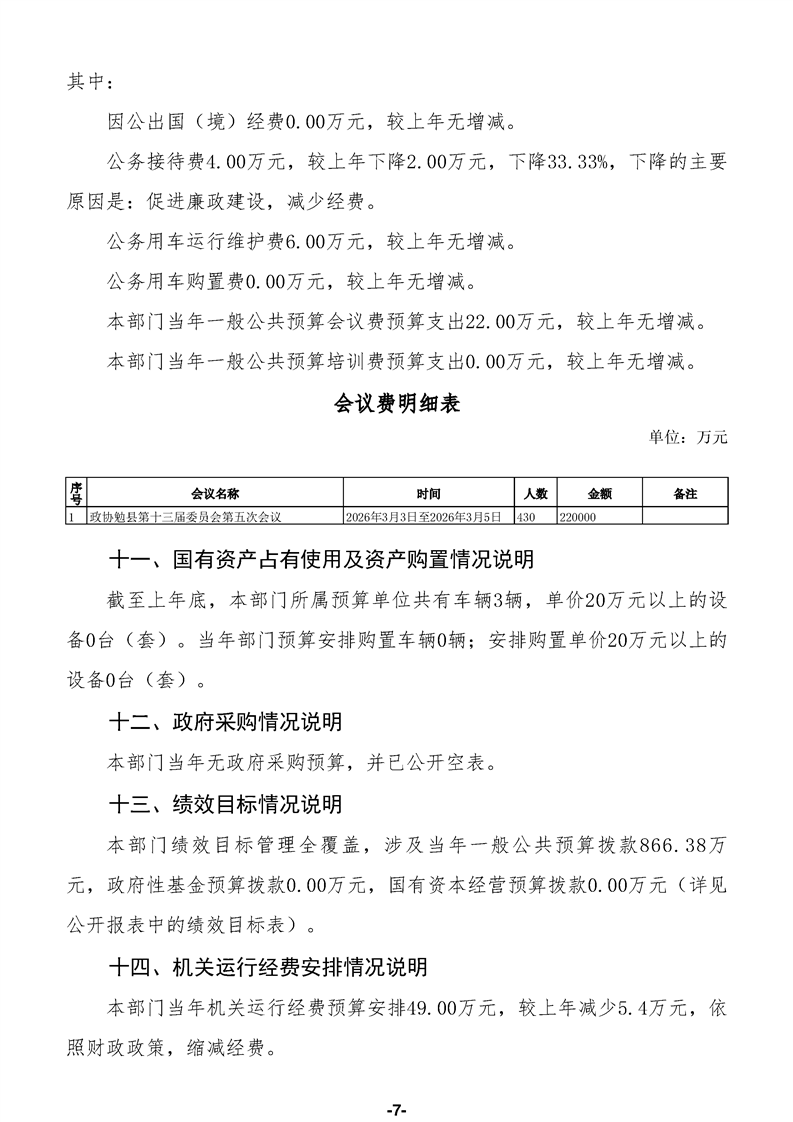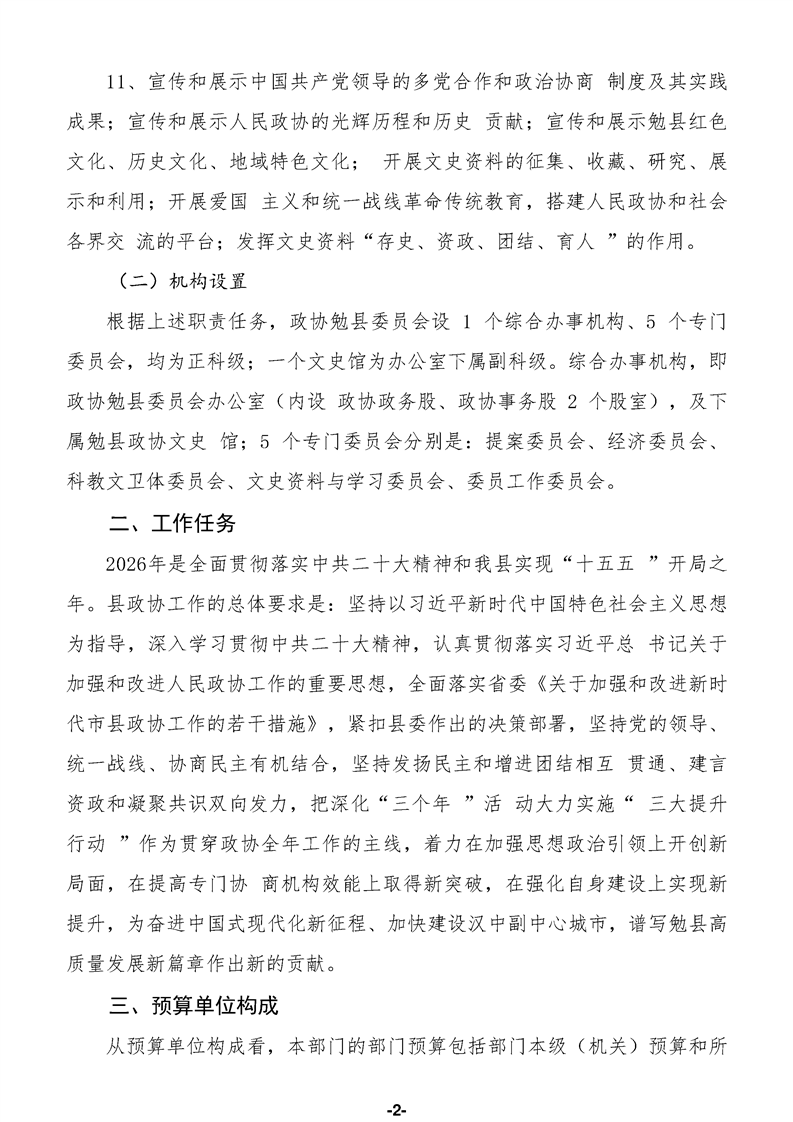 中国人民政治协商会议陕西省勉县委员会办公室(汇总)2026年部门预算公开说明