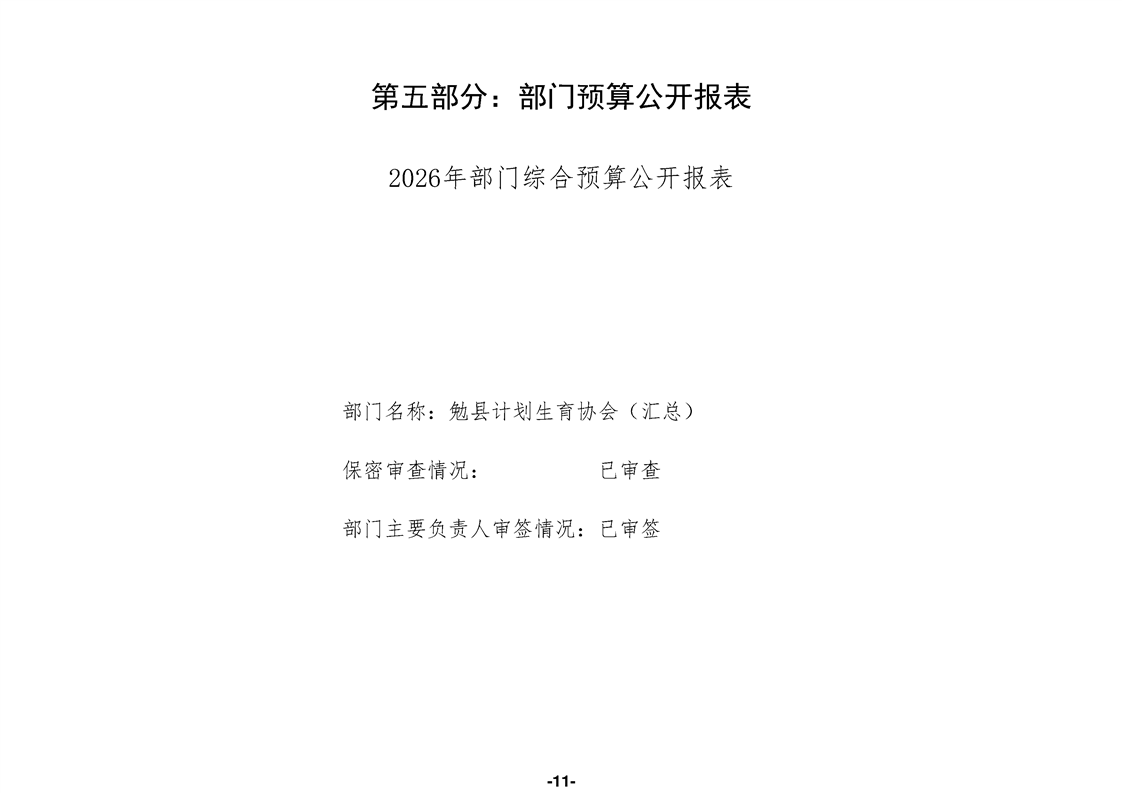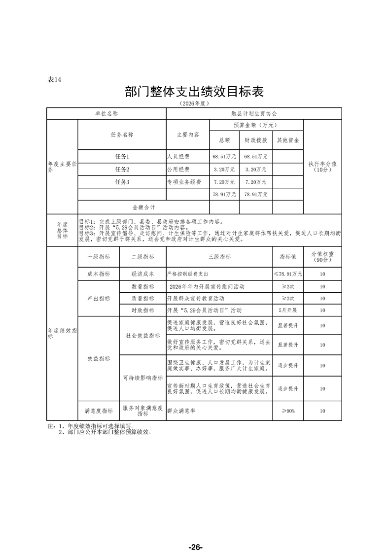 勉县计划生育协会(汇总)2026年部门预算公开说明