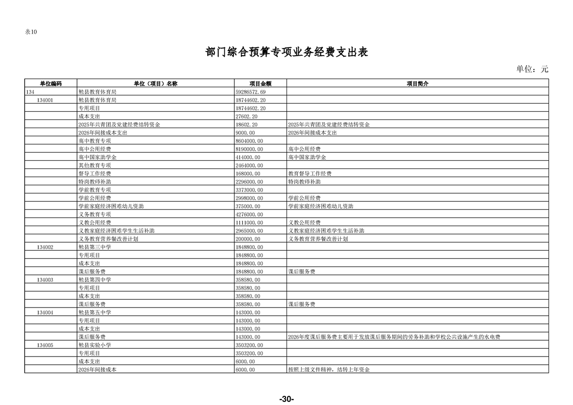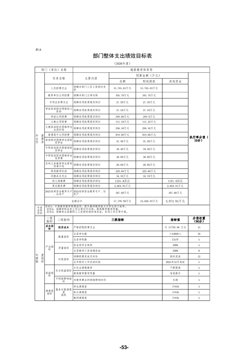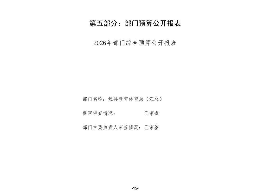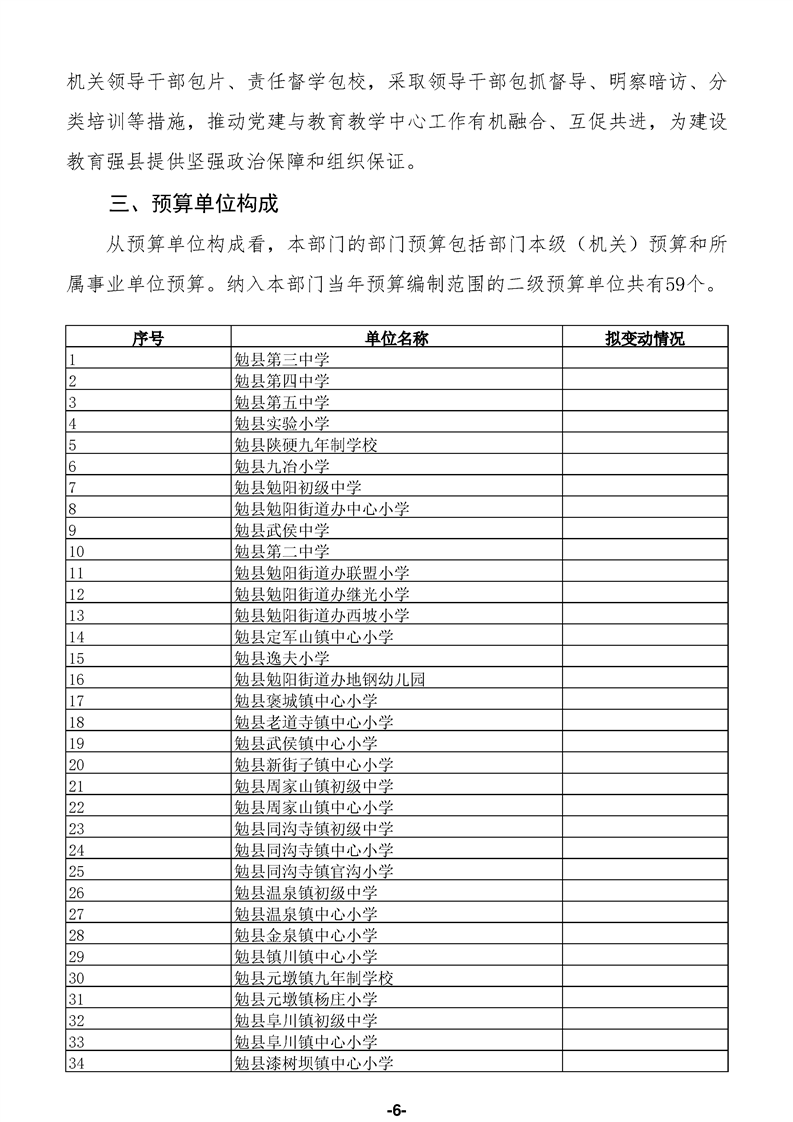 勉县教育体育局(汇总)2026年部门预算公开说明