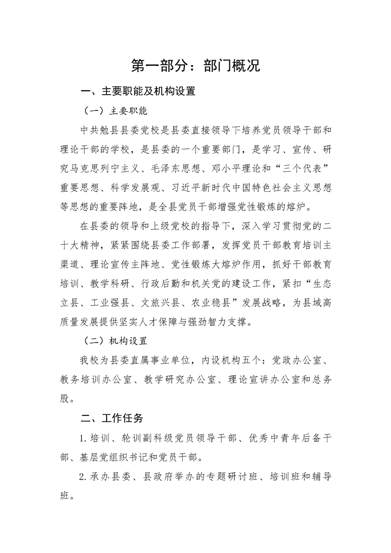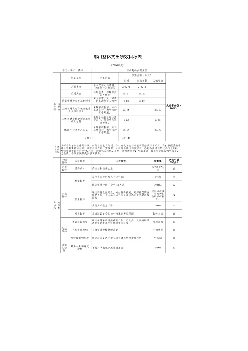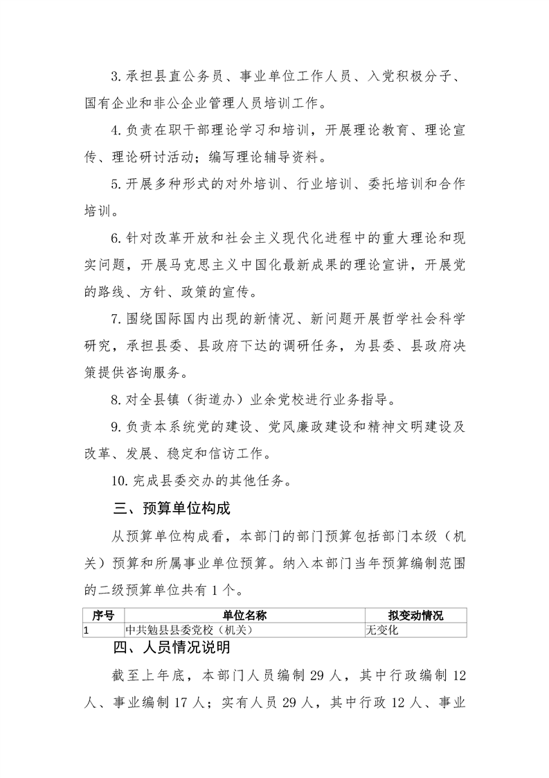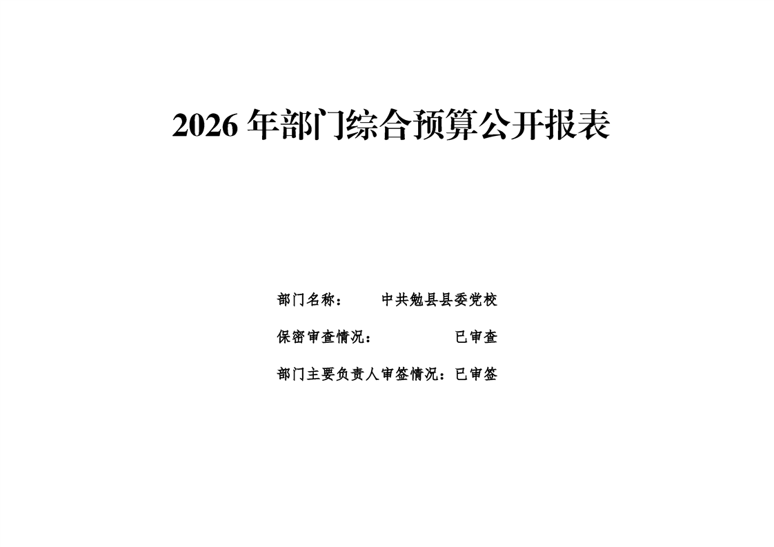 中共勉县县委党校2026年部门预算公开说明