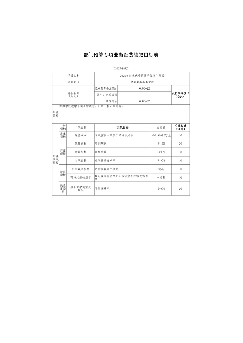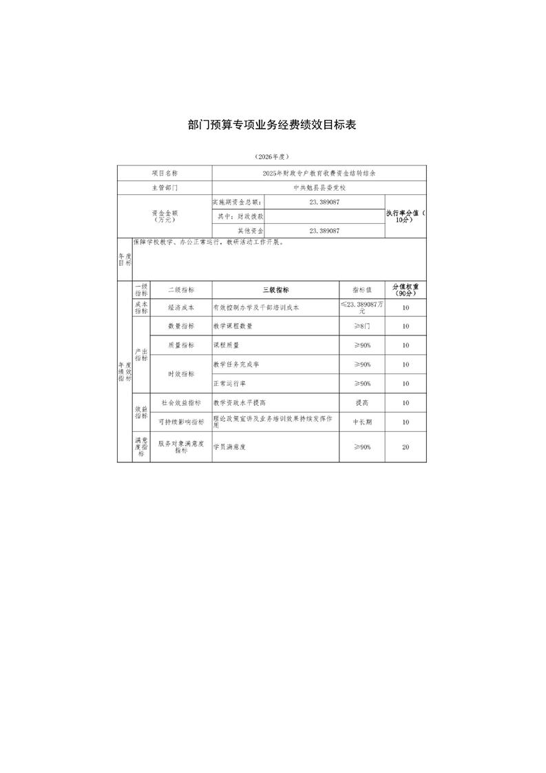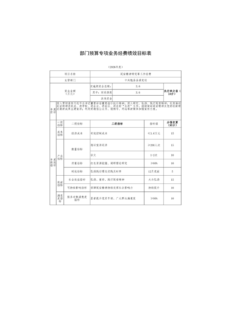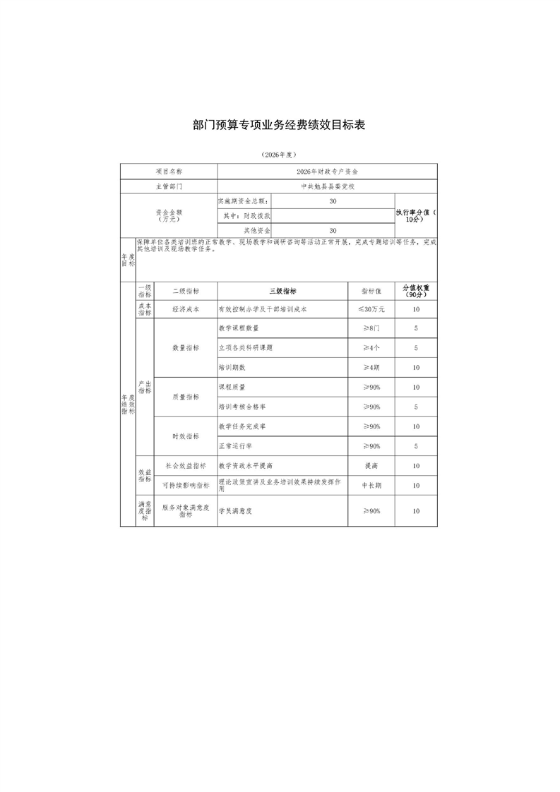 中共勉县县委党校2026年部门预算公开说明