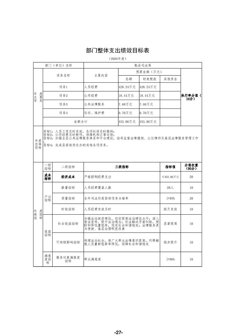 勉县司法局(汇总)2026年部门预算公开说明