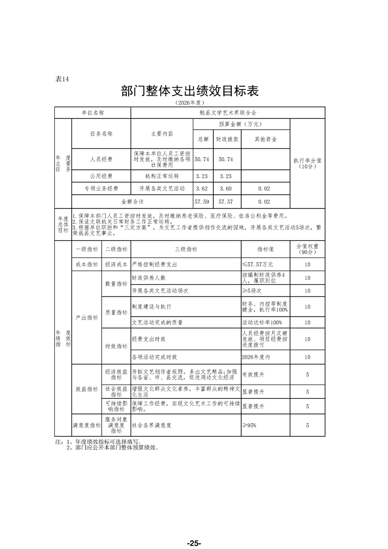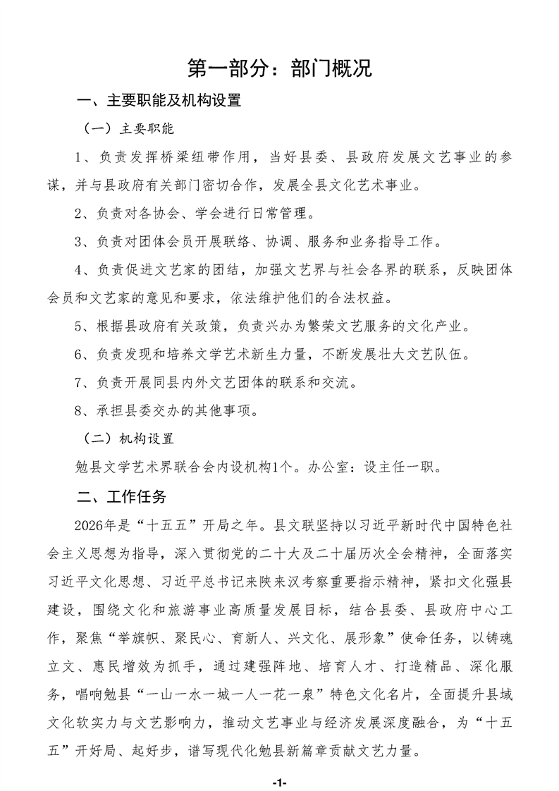 勉县文学艺术界联合会(汇总)2026年部门预算公开说明