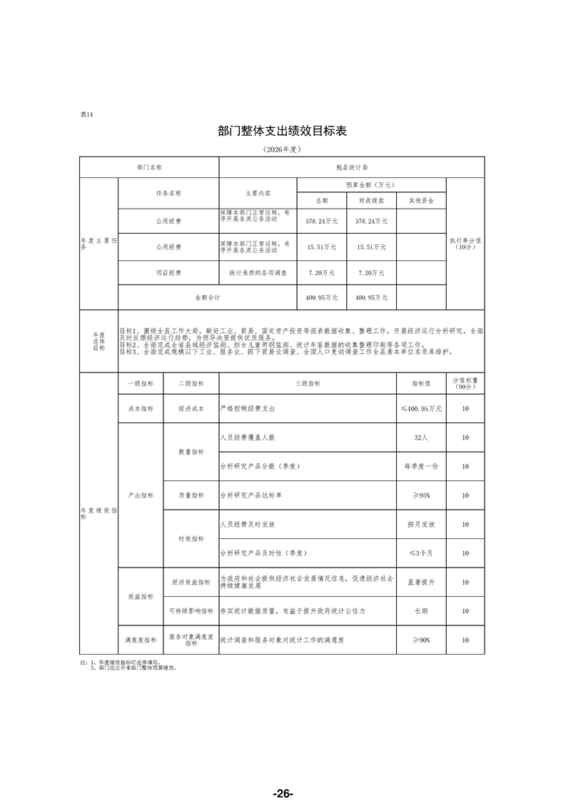 勉县统计局(汇总)2026年部门预算公开说明