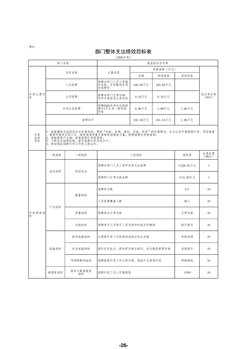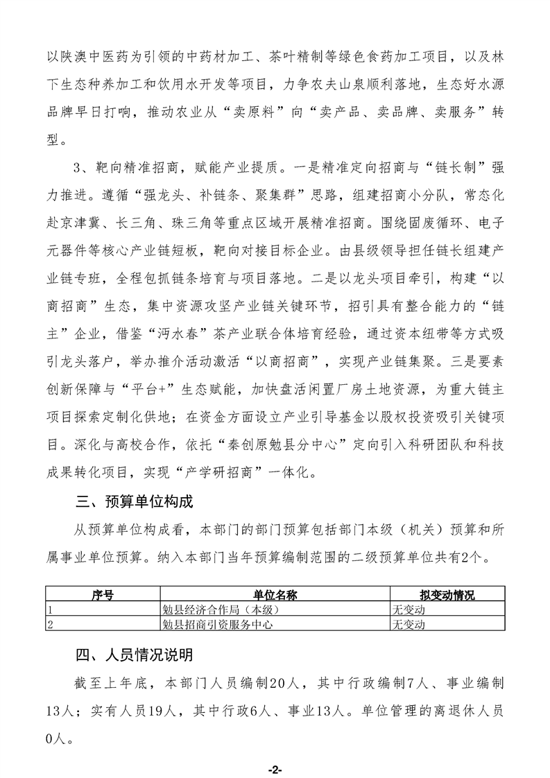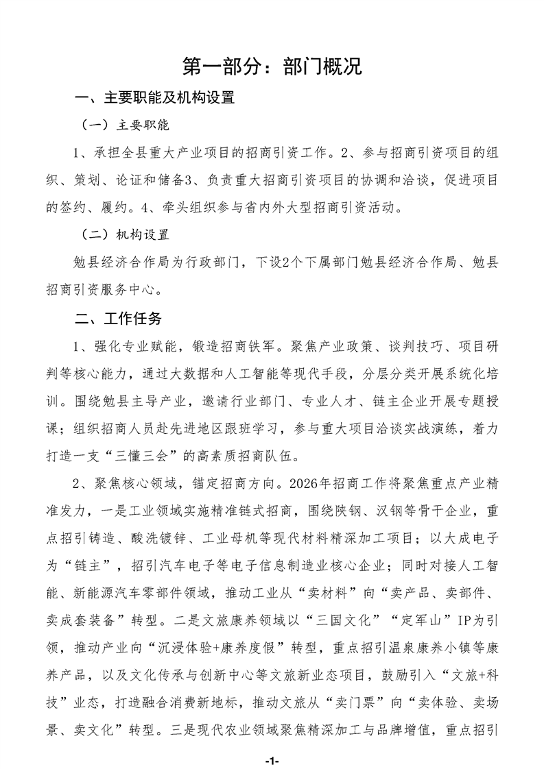 勉县经济合作局(汇总)2026年部门预算公开说明