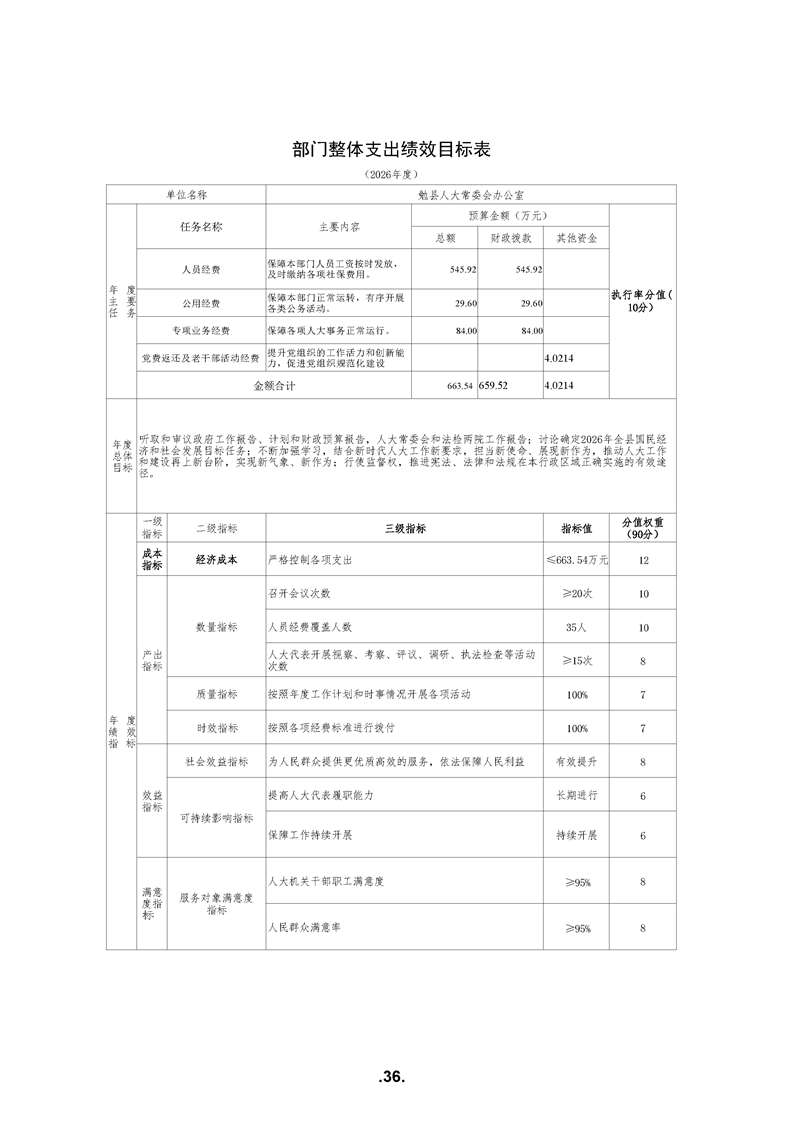 勉县人大常委会办公室(汇总)2026年部门预算公开说明