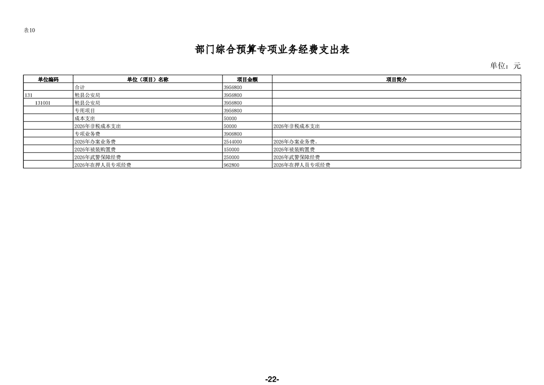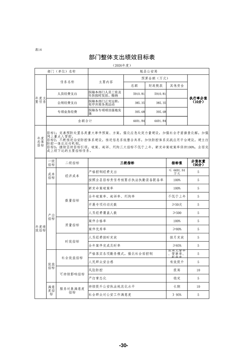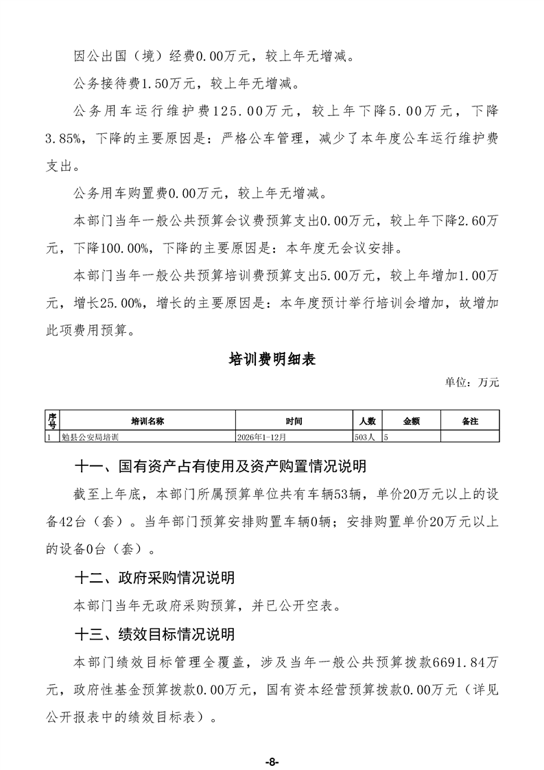 勉县公安局(汇总)2026年部门预算公开说明