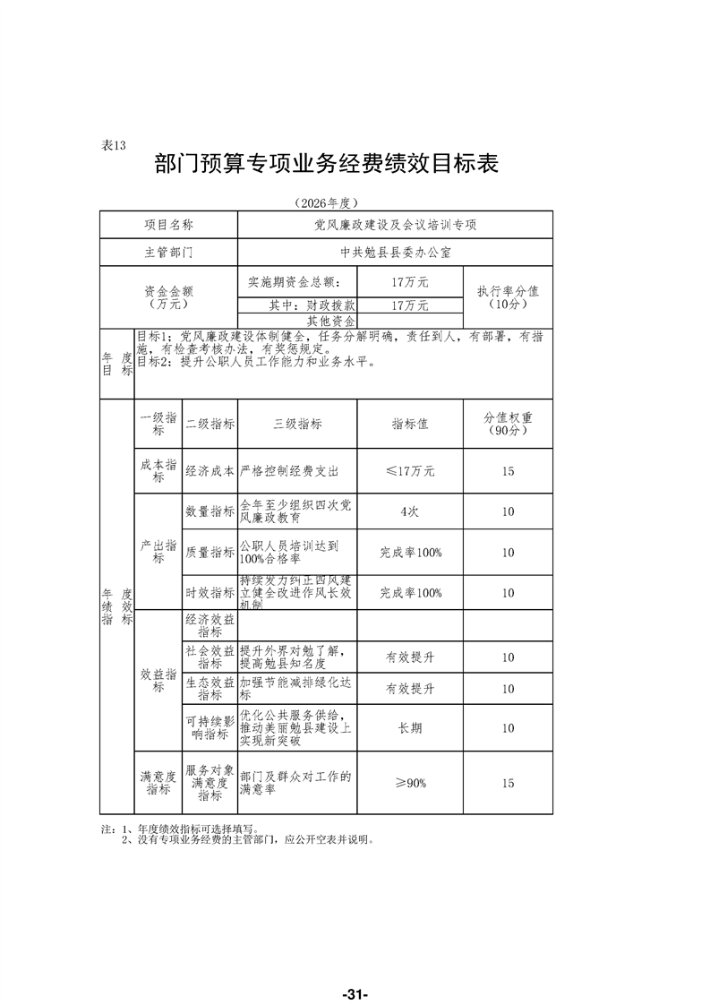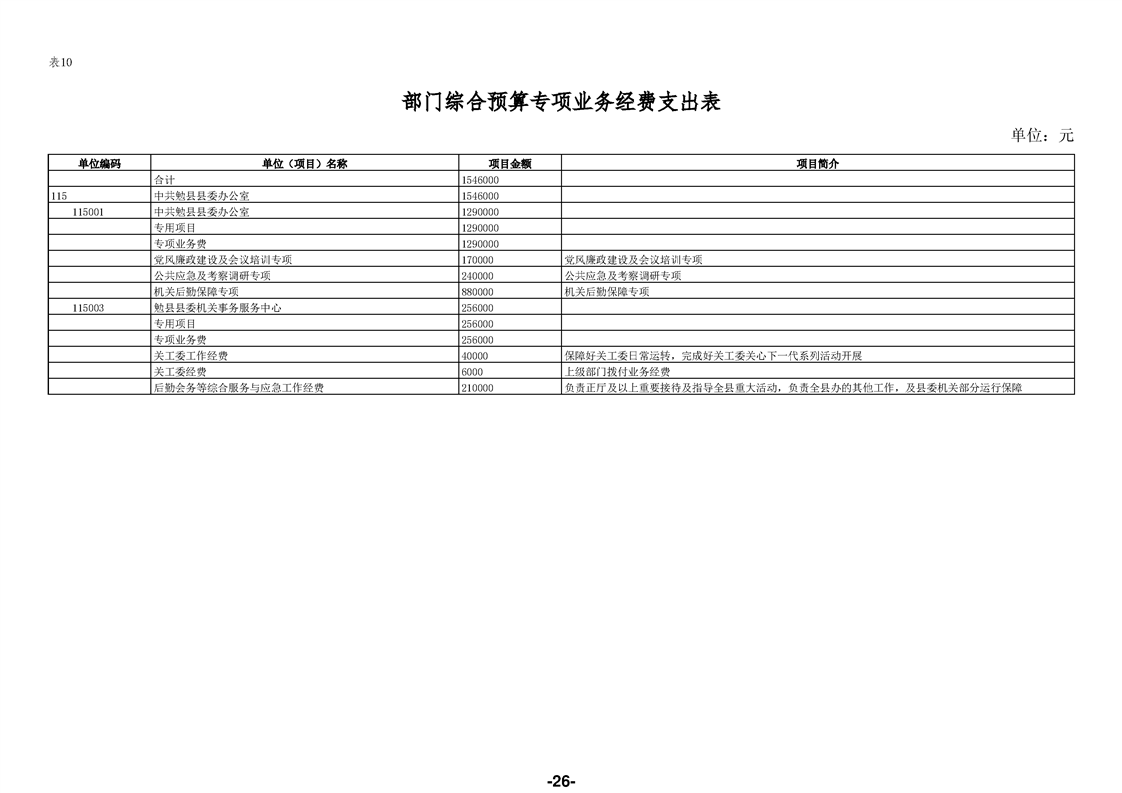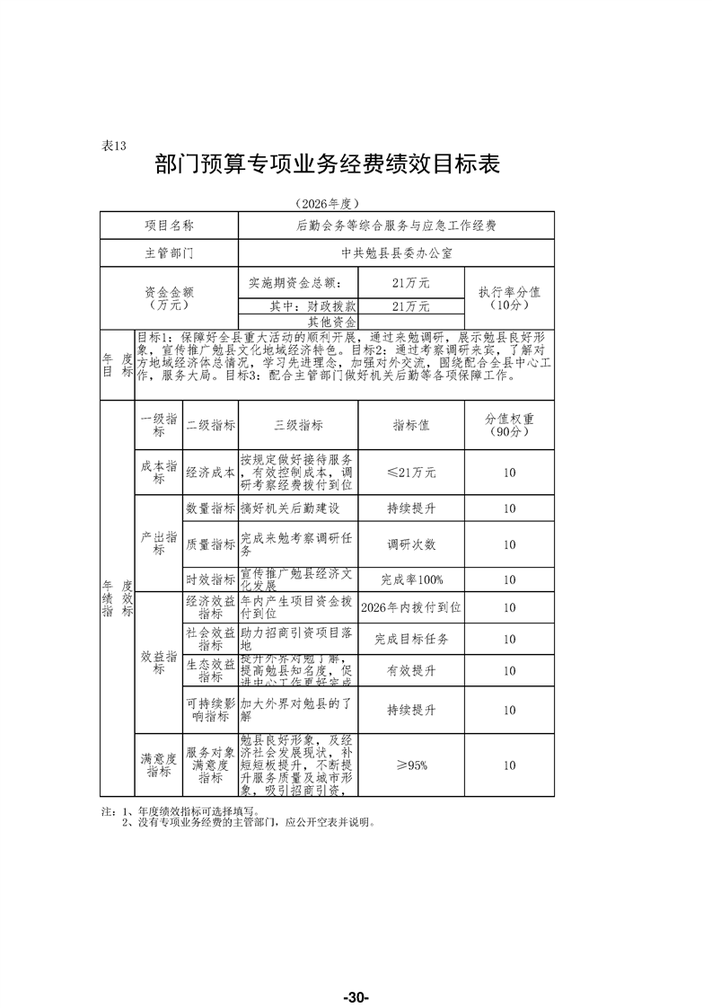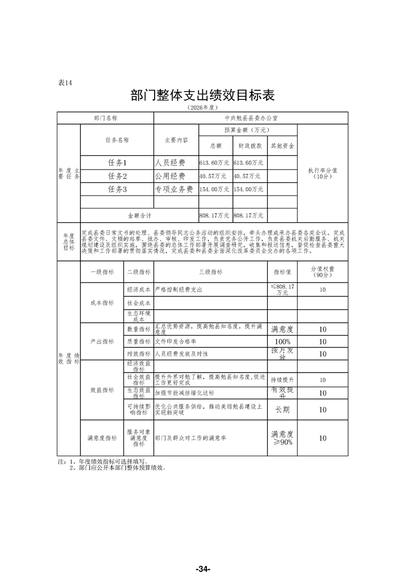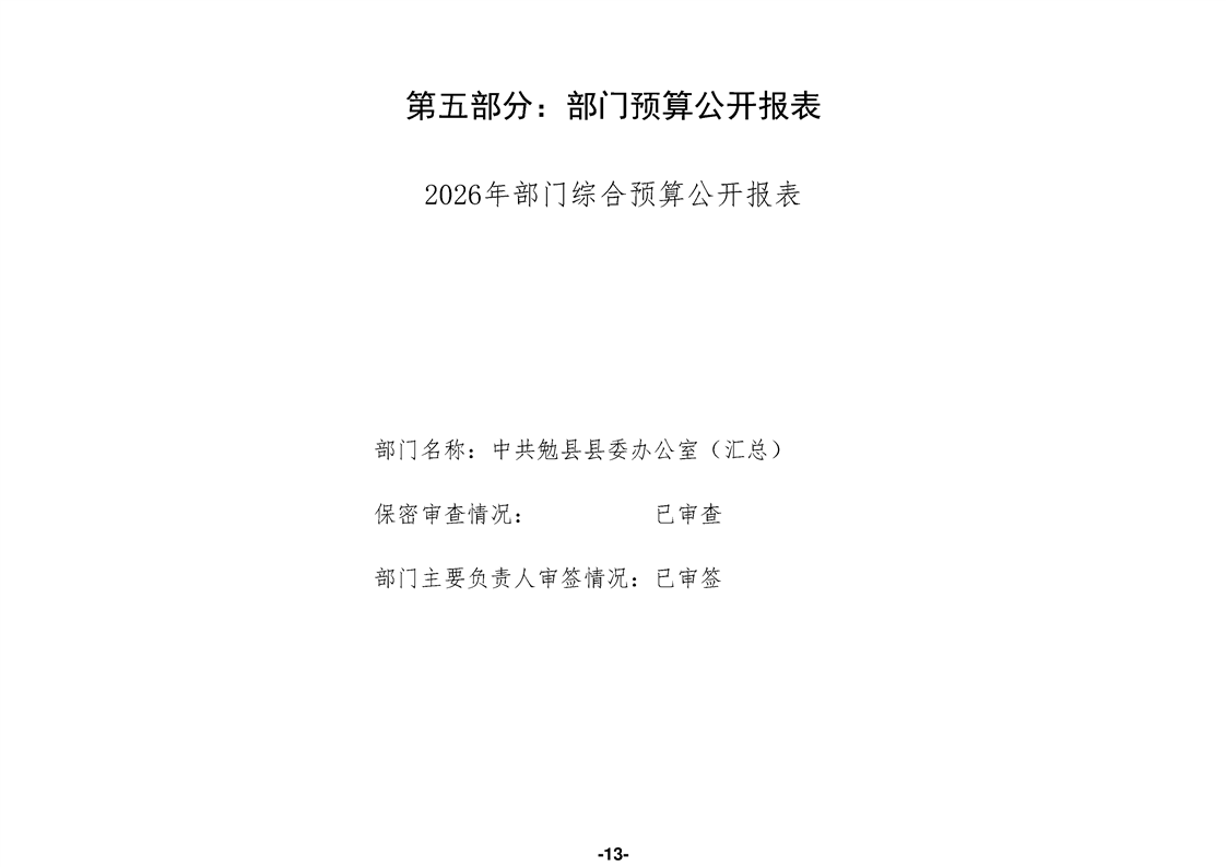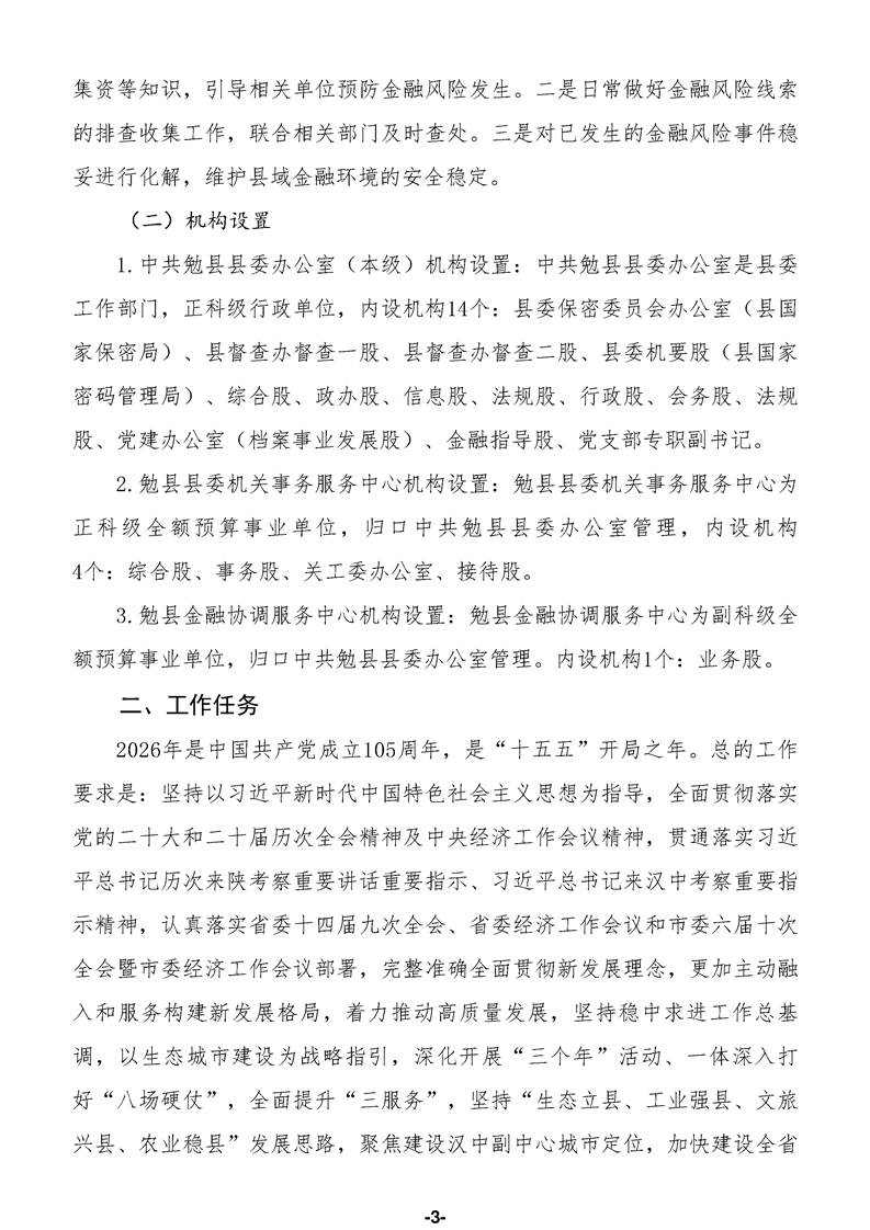 中共勉县县委办公室(汇总)2026年部门预算公开说明