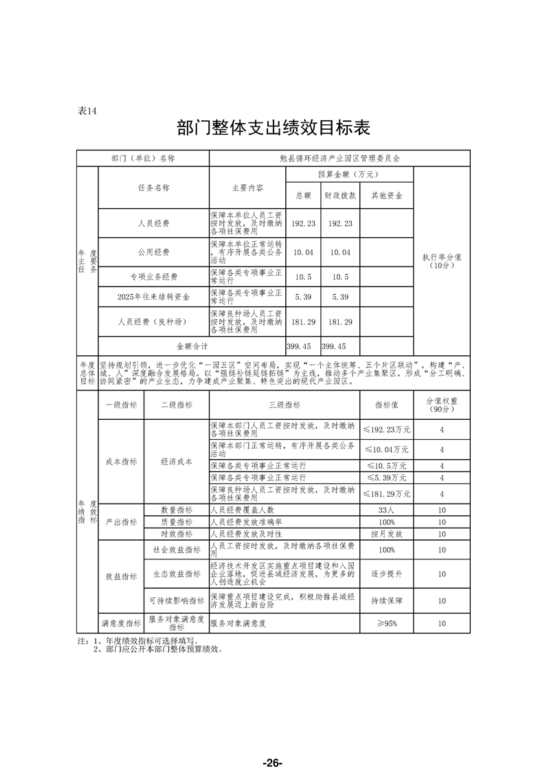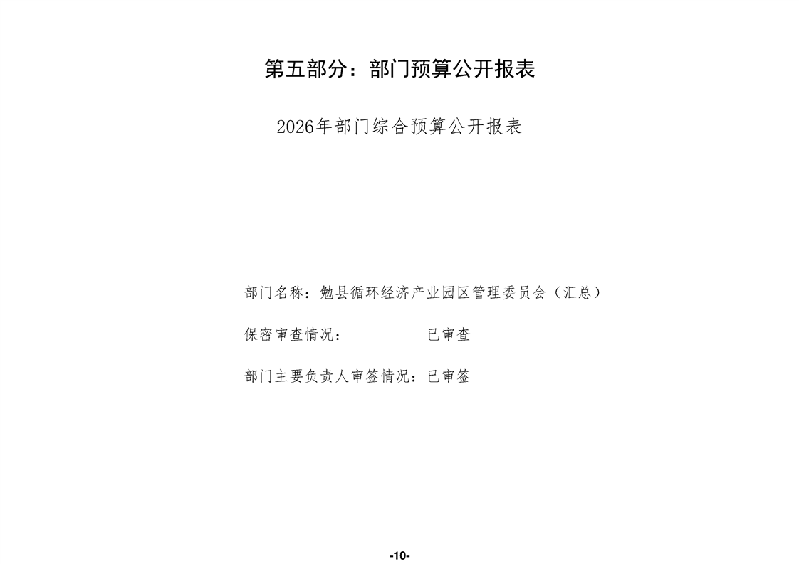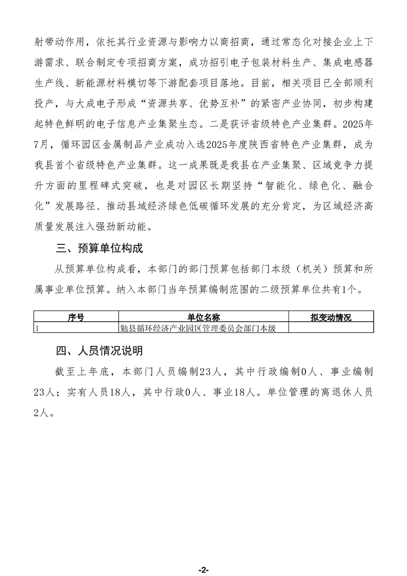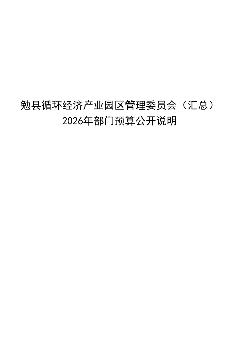 勉县循环经济产业园区管理委员会(汇总)2026年部门预算公开说明