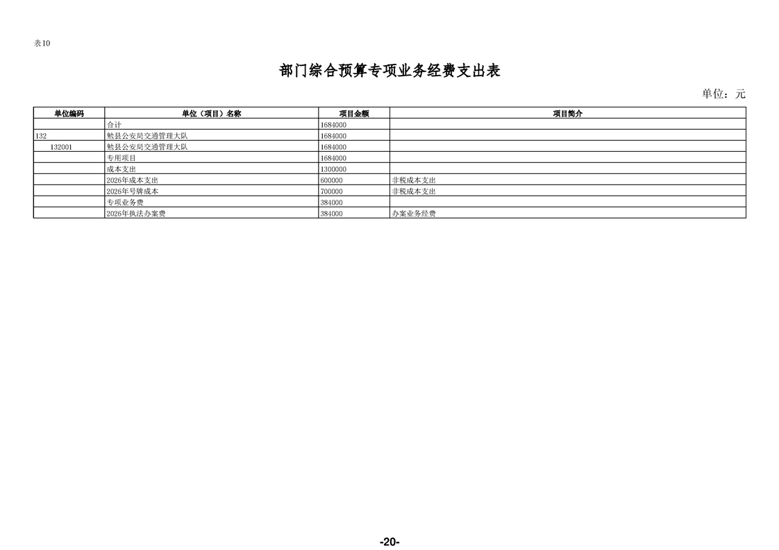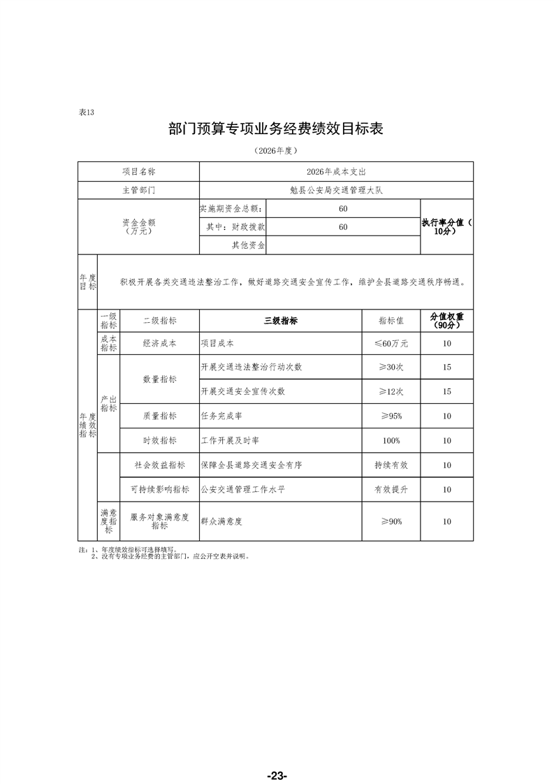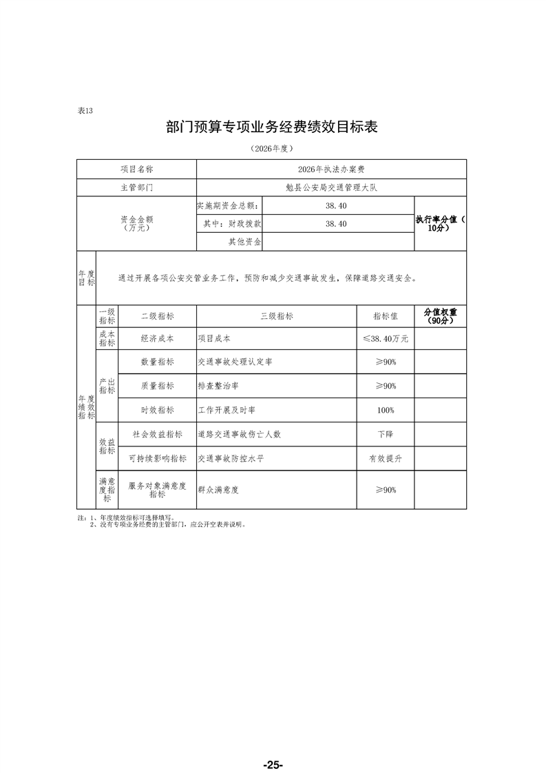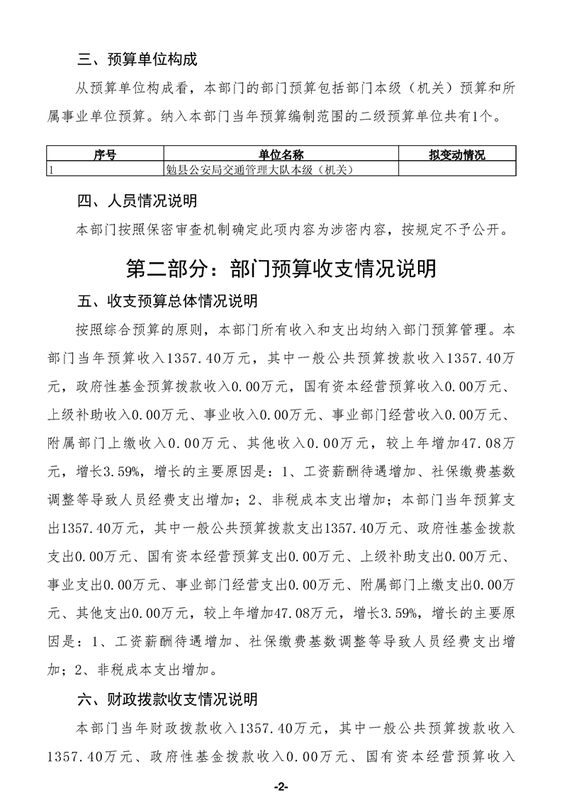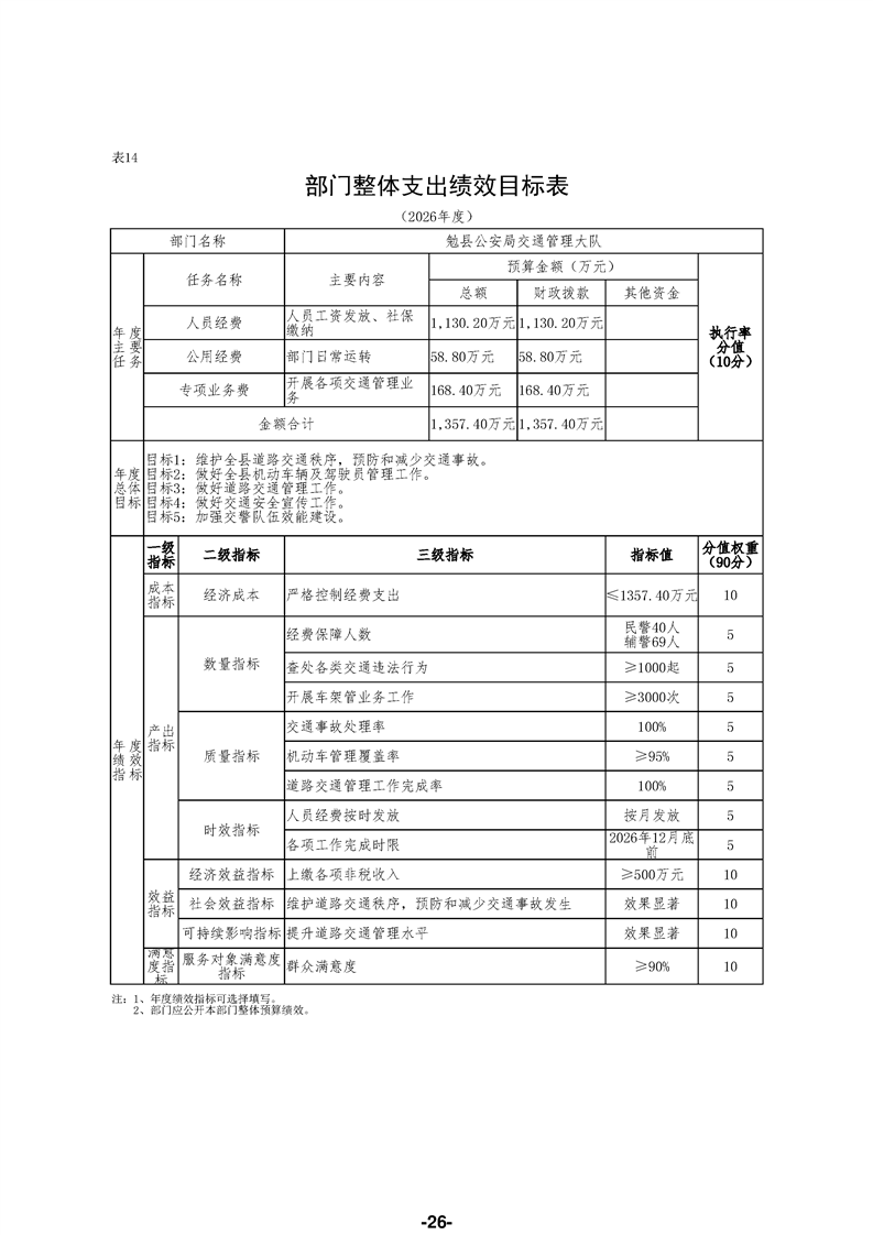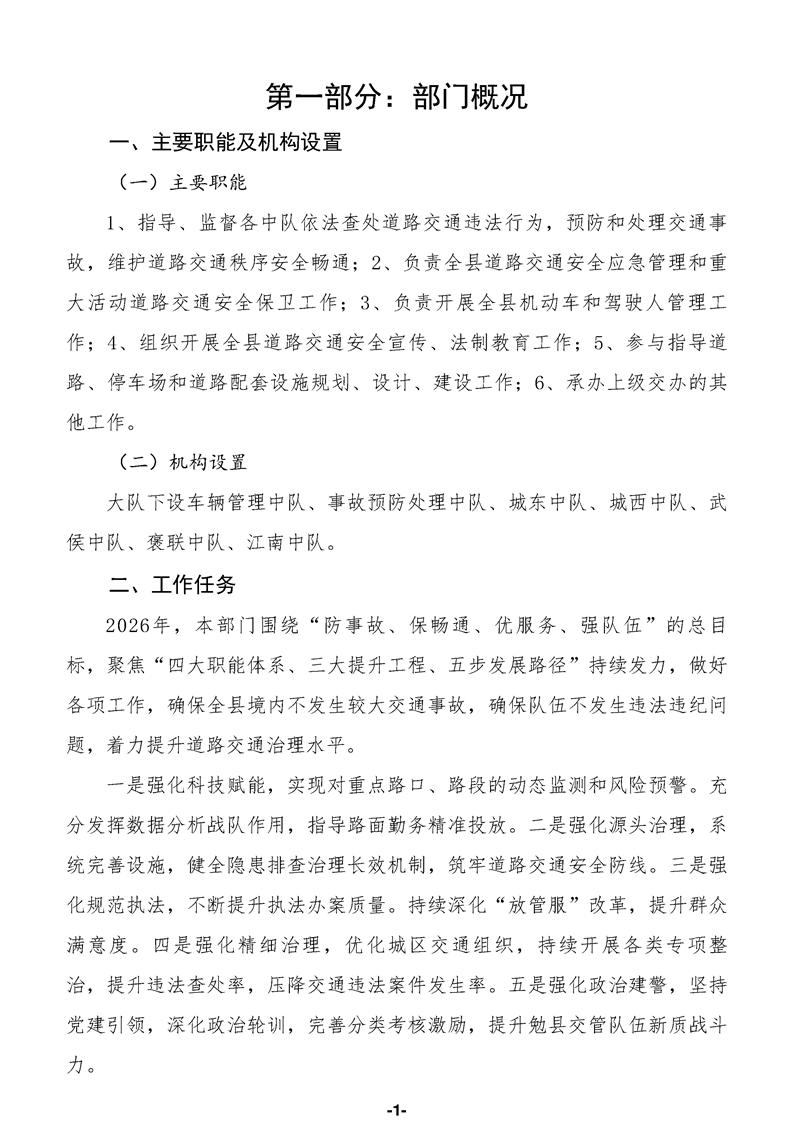 勉县公安局交通管理大队(汇总)2026年部门预算公开说明