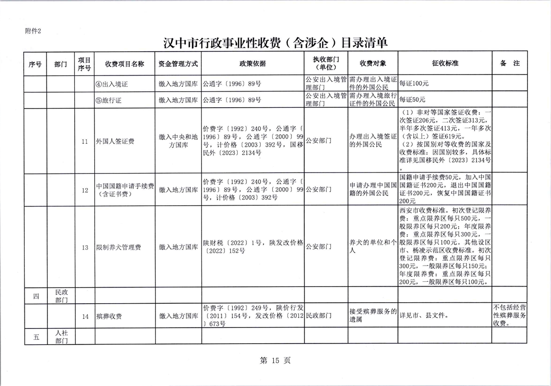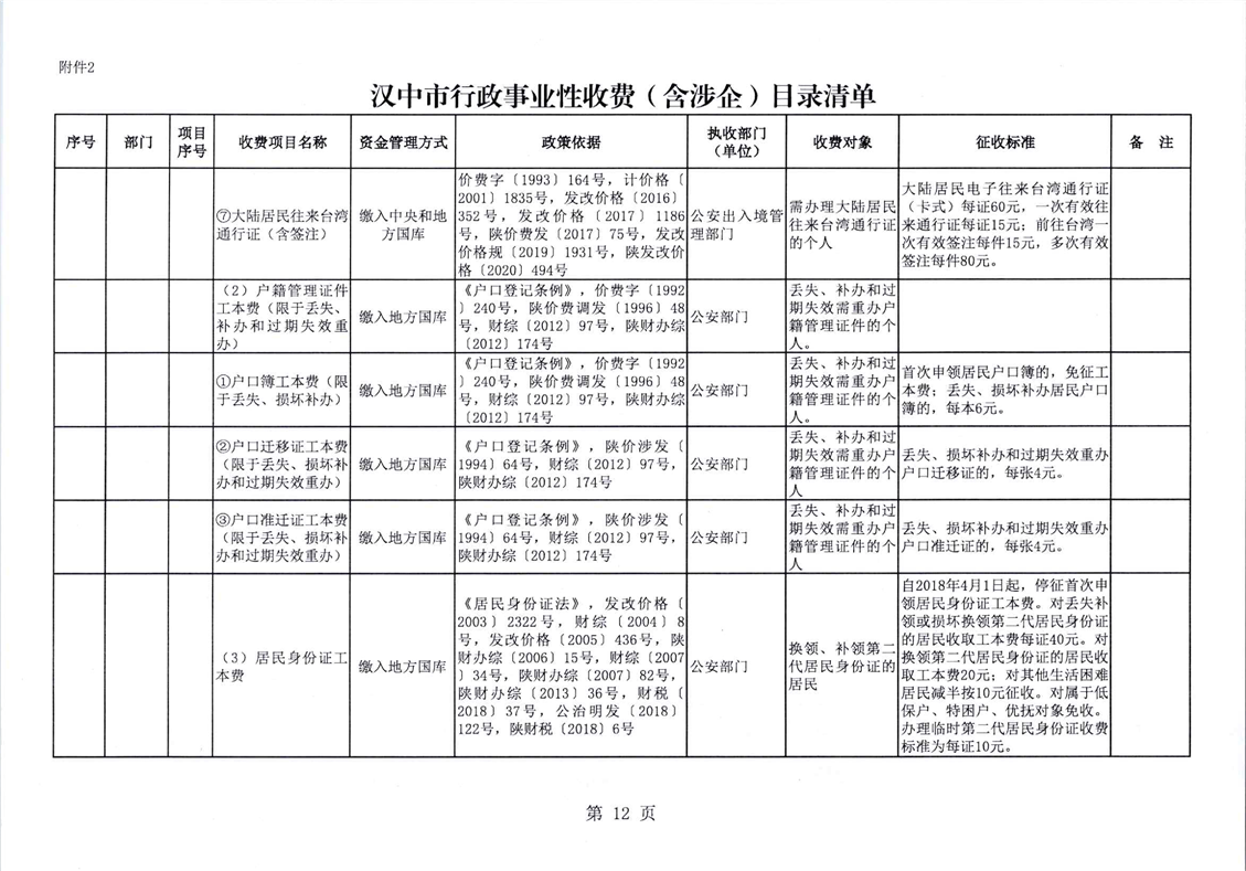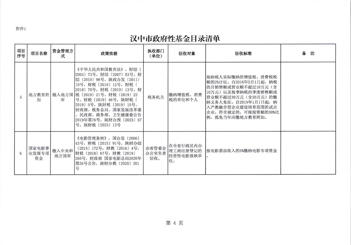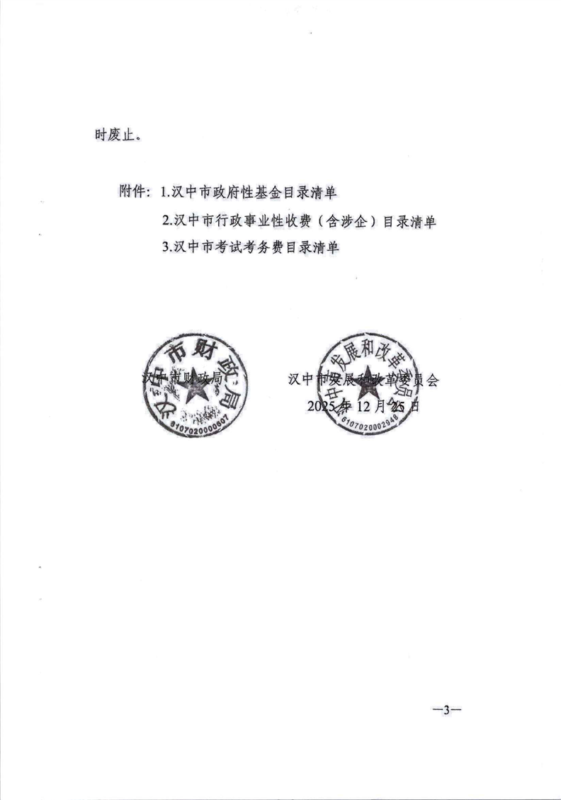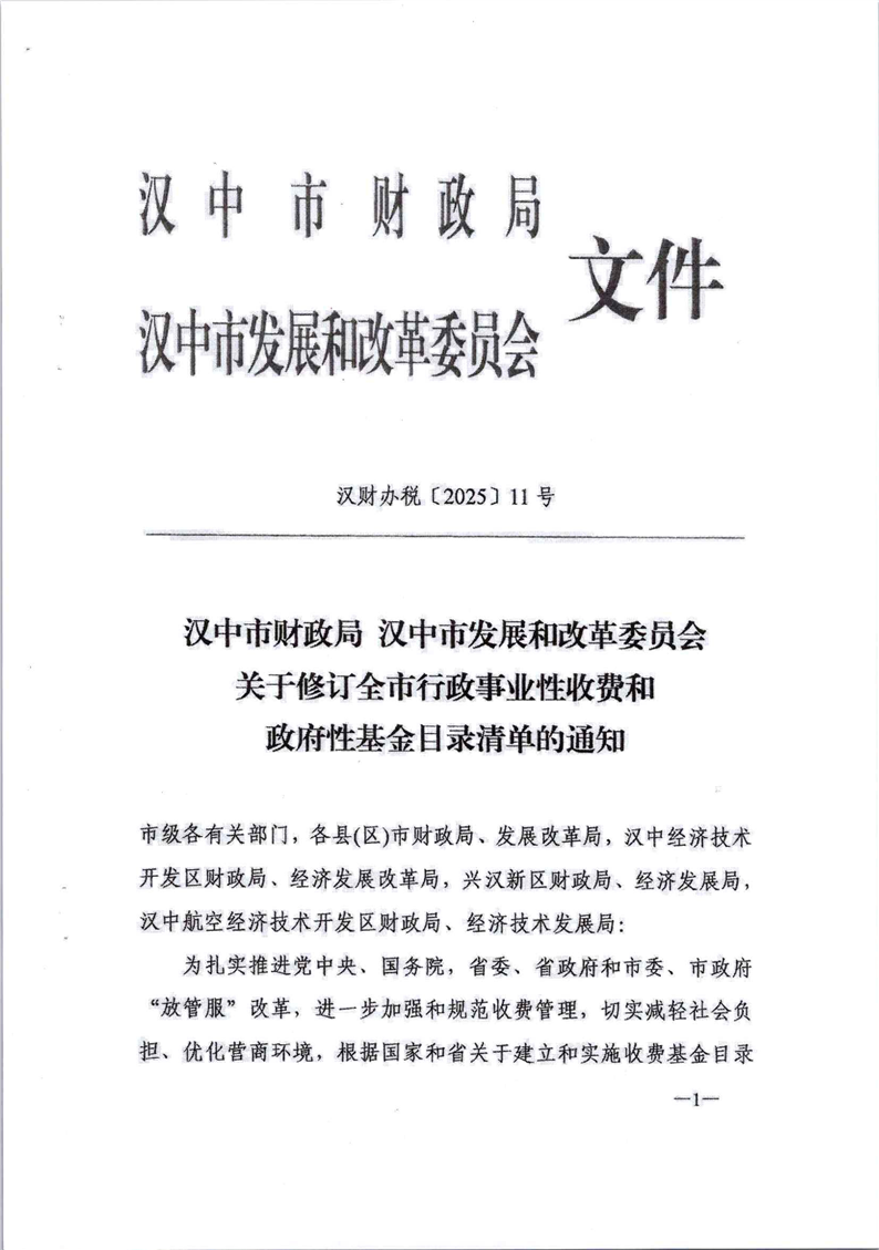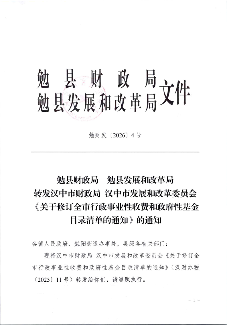 勉财发〔2026〕4号勉县财政局 勉县发展和改革局转发汉中市财政局 汉中市发展和改革委员会《关于修订全市行政事业性收费和政府性基金目录清单的通知》的通知