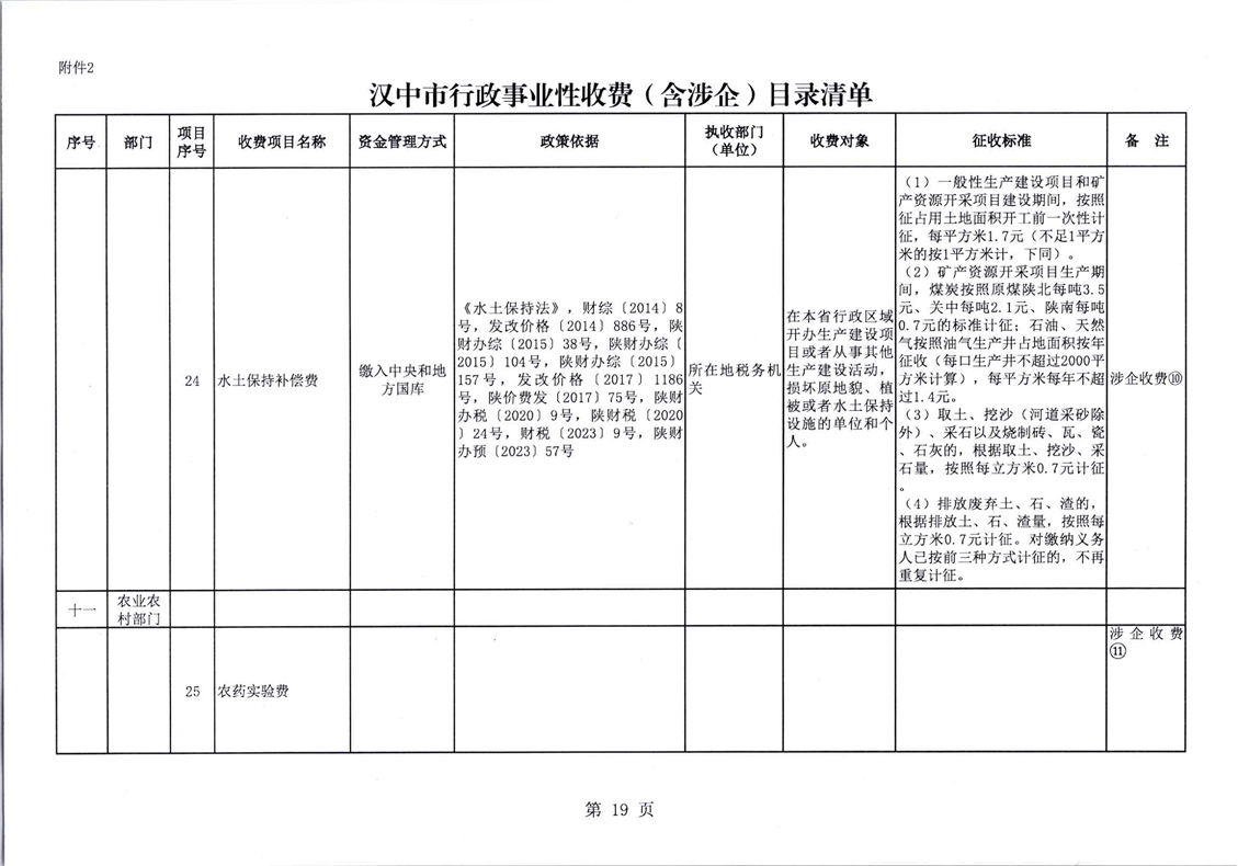 行政事业性收费