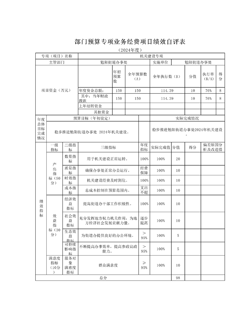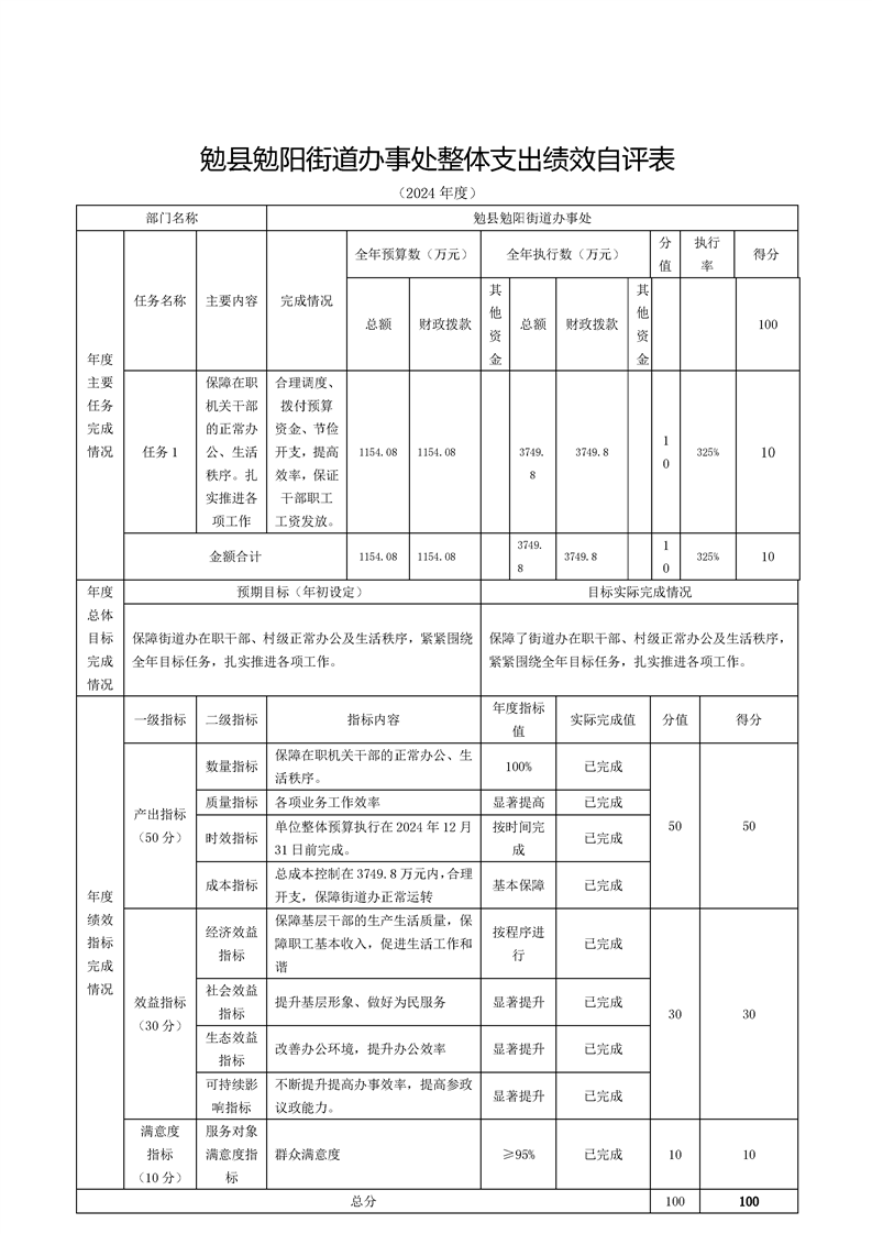 勉县勉阳街道办事处2024年度部门决算公开