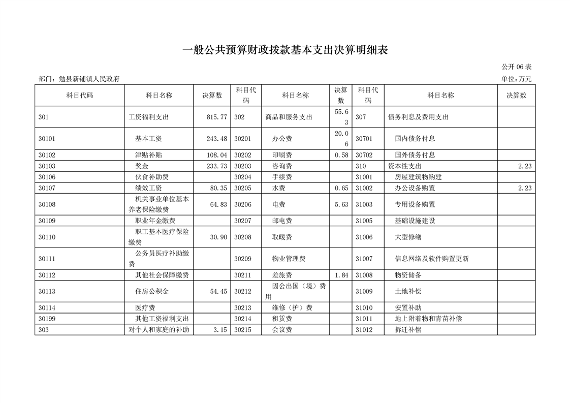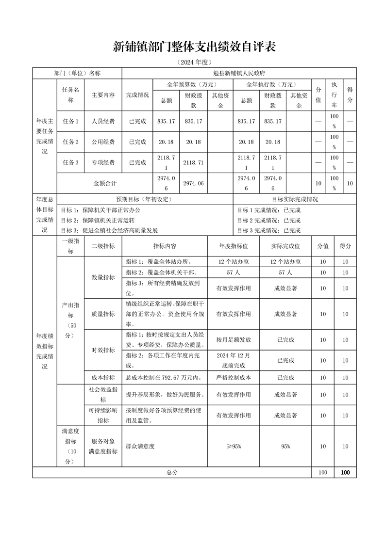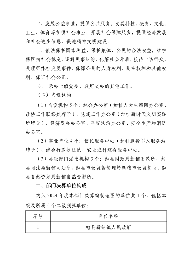 勉县新铺镇人民政府2024年度部门决算公开