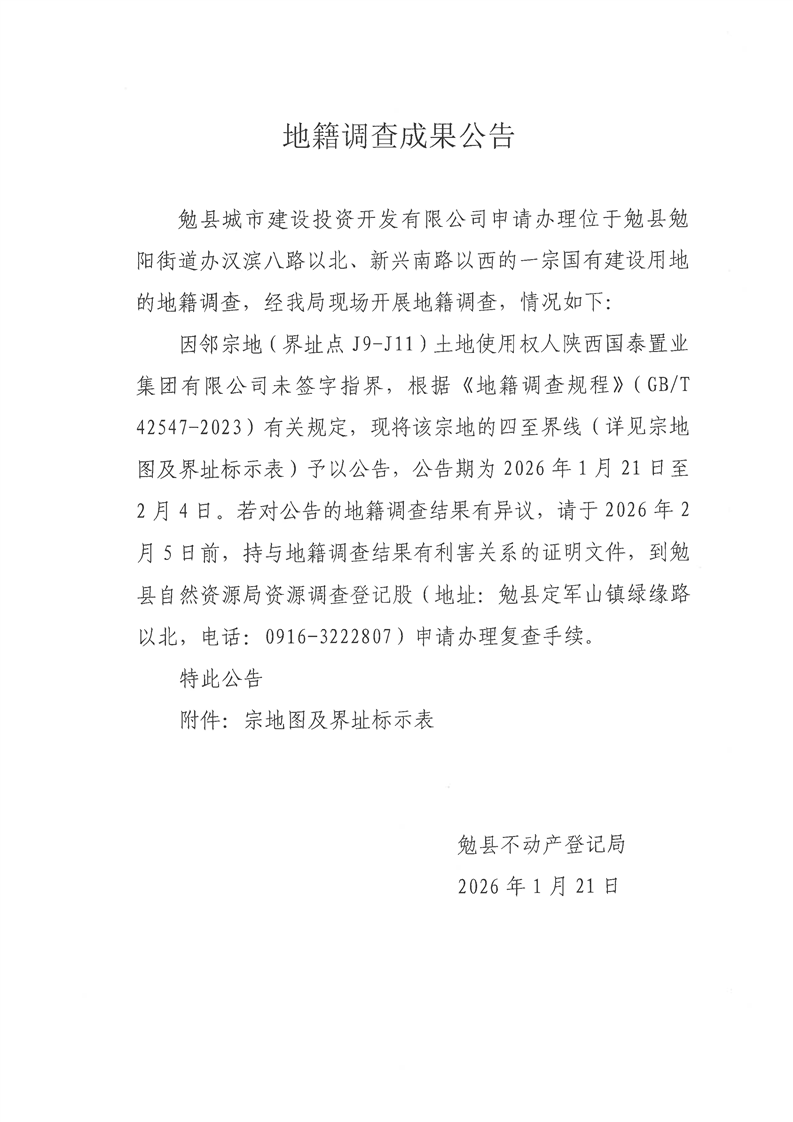 地籍调查成果公告
