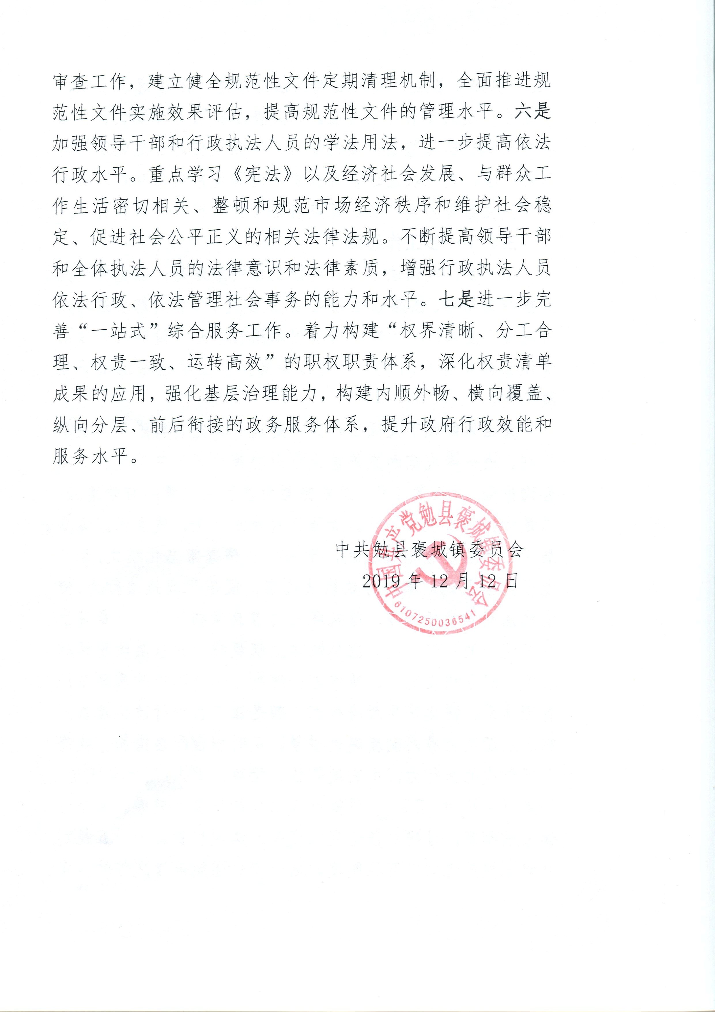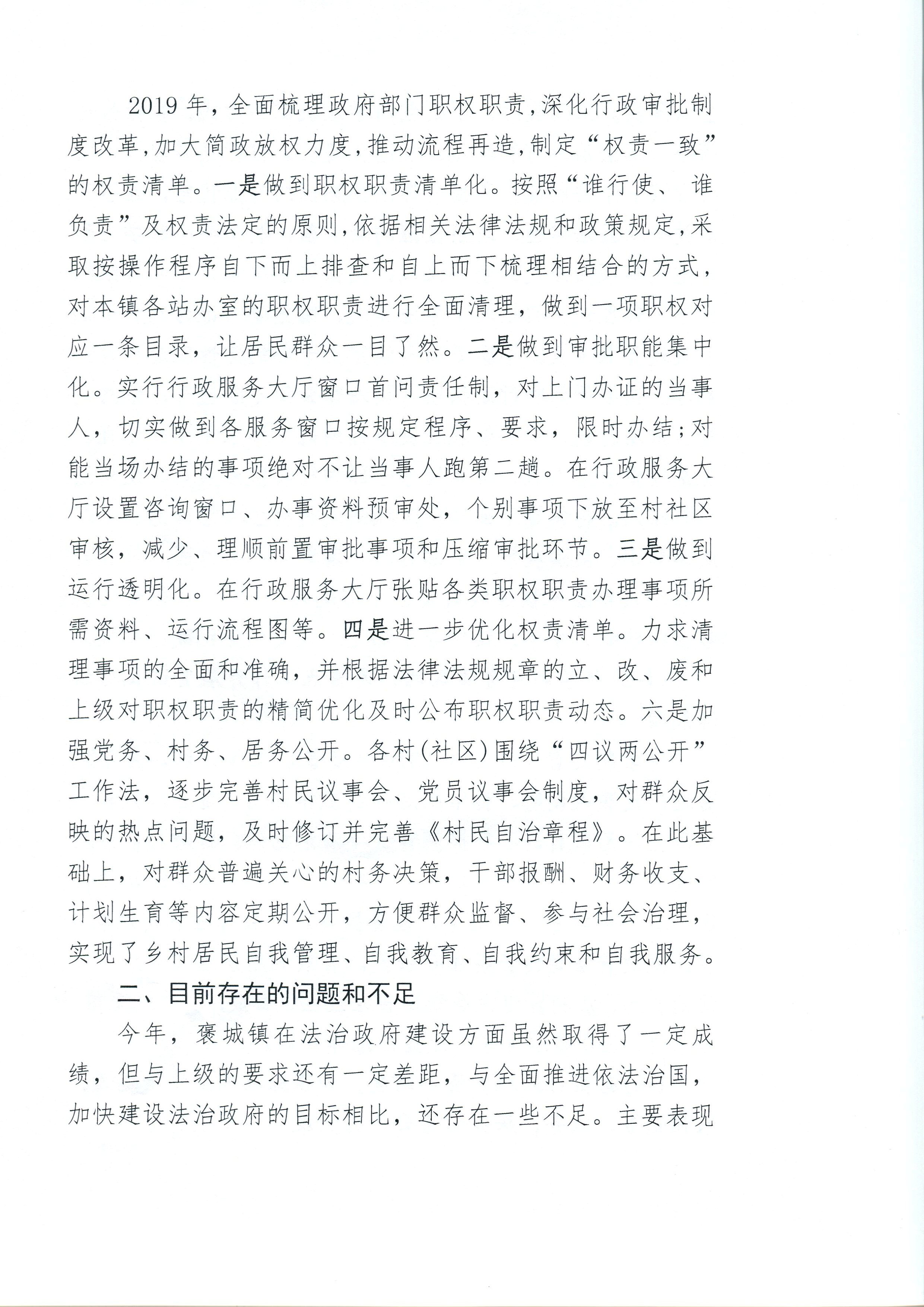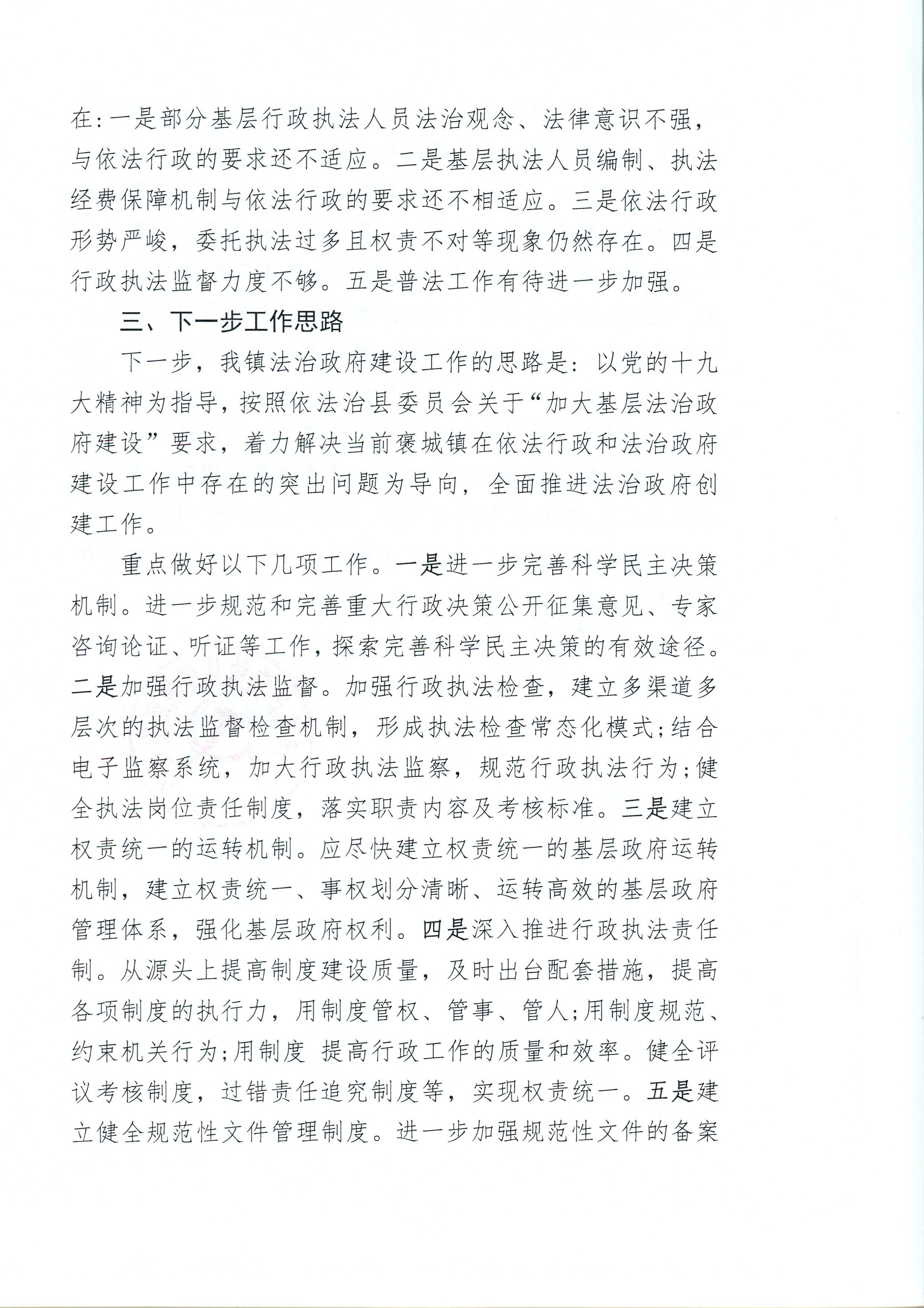 褒城镇2019年度法治政府工作报告