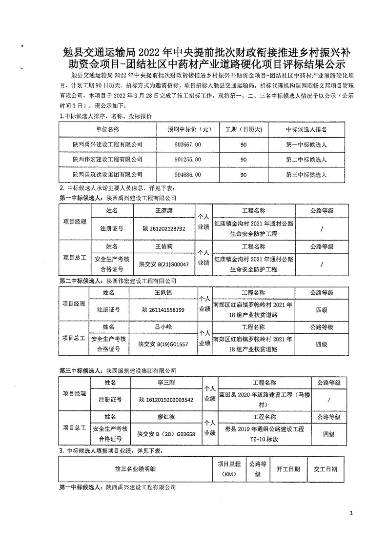 团结社区中药材产业路评标结果公示
