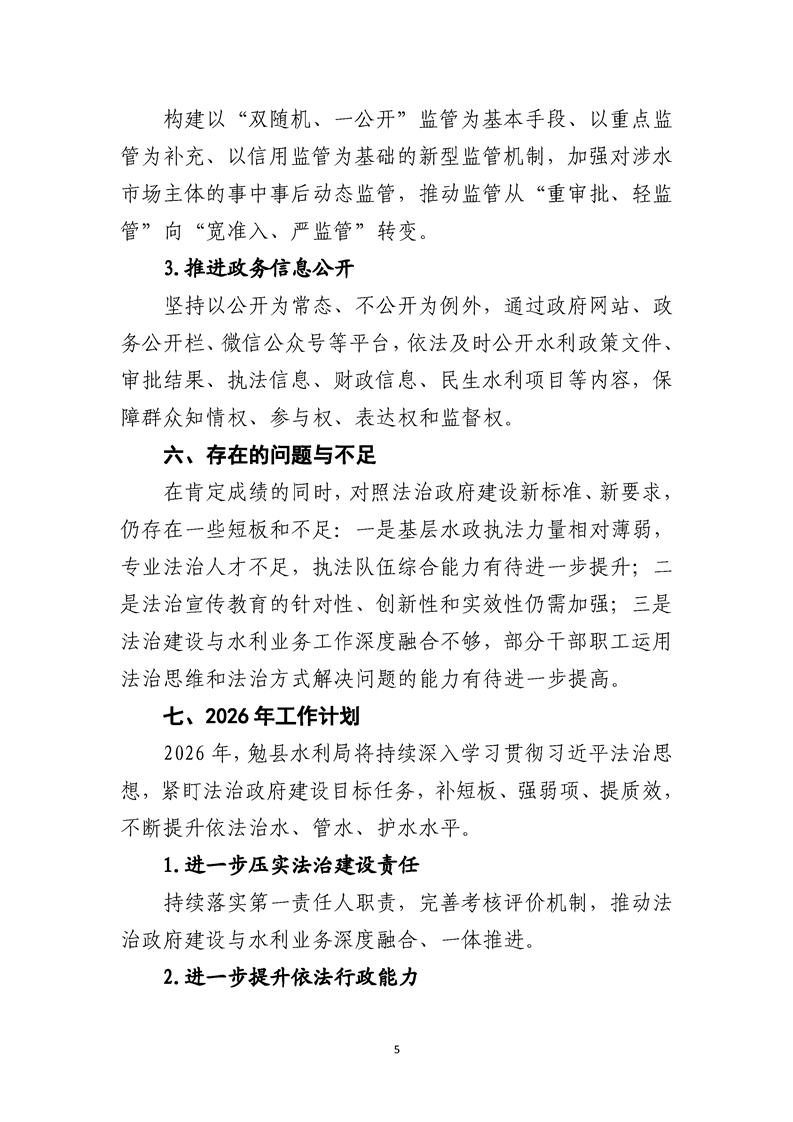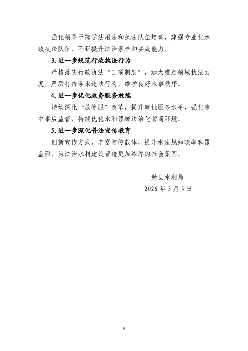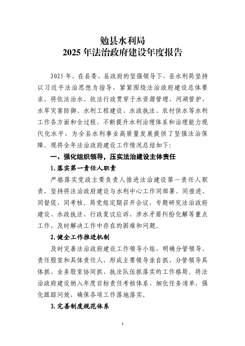 勉县水利局2025年法治政府建设年度报告