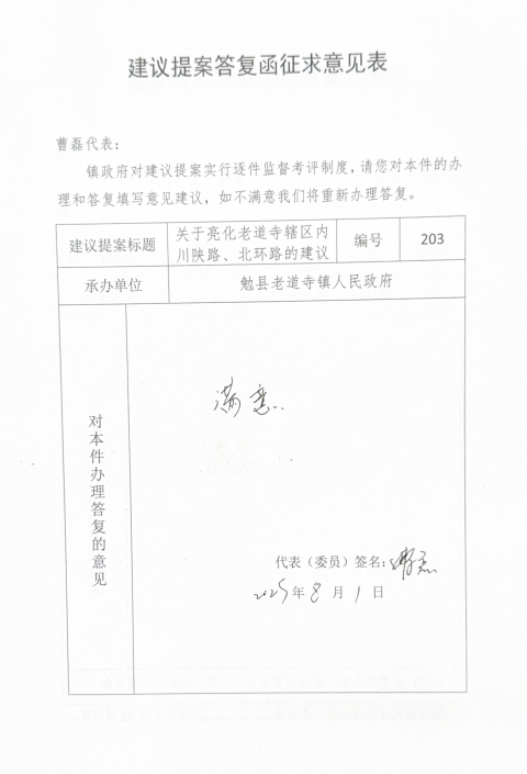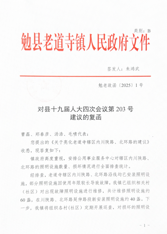 您提出的《关于亮化老道寺辖区内川陕路、北环路的建议》收悉,现答复如下: