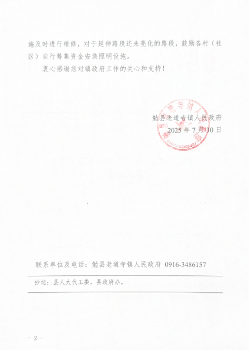 经排查,老道寺辖区内川陕路、北环路沿线均已安装照明设施,部分照明设施因使用年限较长导致故障,我镇已组织相关村(社区)对出现故障照明设施进行维修,共计维修照明设施约60盏,在川陕路、北环路延伸路段新安装照明设施约40盏。下一步,我镇将组织各村(社区)定期开展巡查,对损坏的照明设施及时进行维修,对于延伸路段还未亮化的路段,鼓励各村(社区)自行筹集资金安装照明设施。