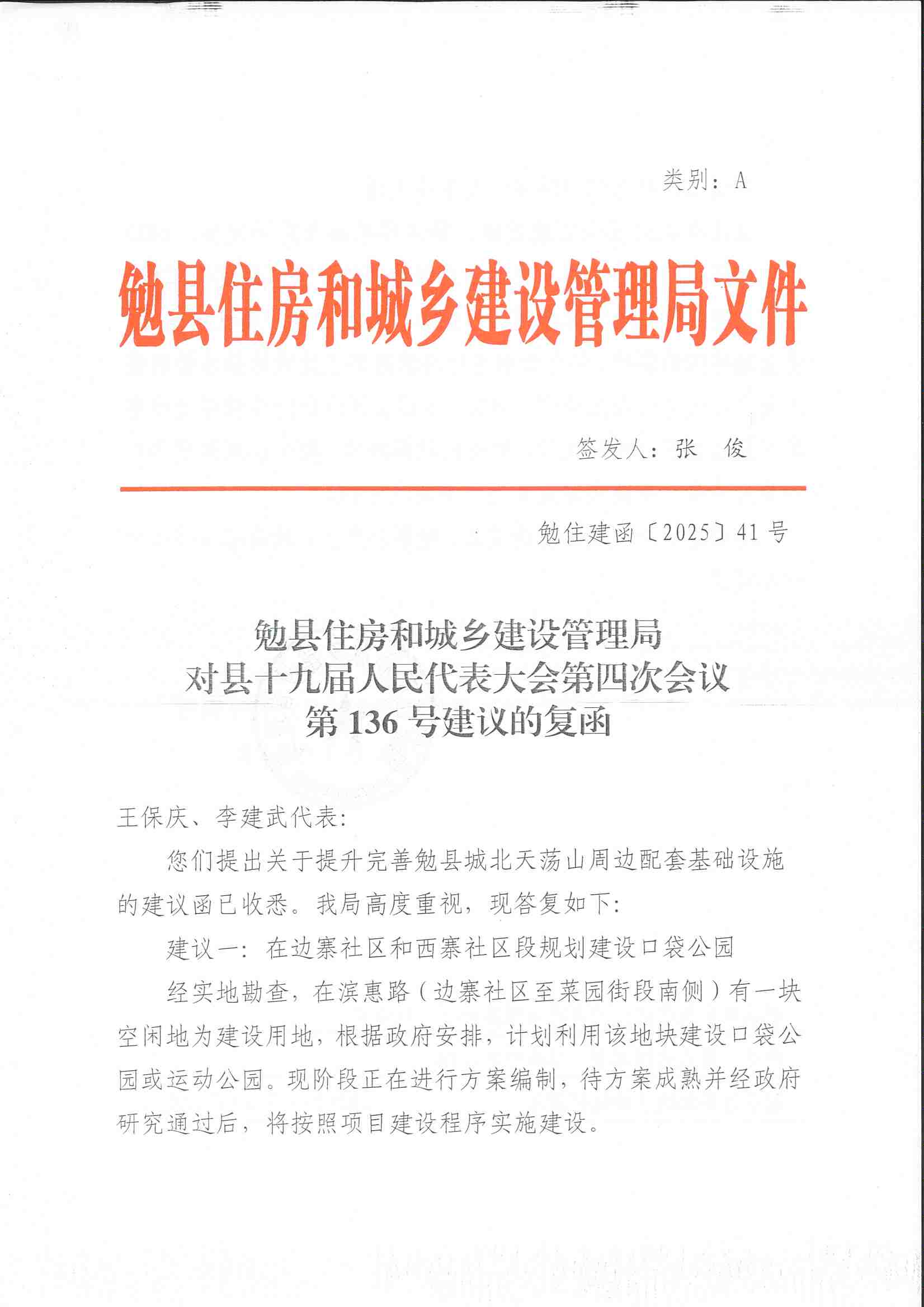 勉县第十九届人民代表大会第四次会议代表建议批评和意见第 136号