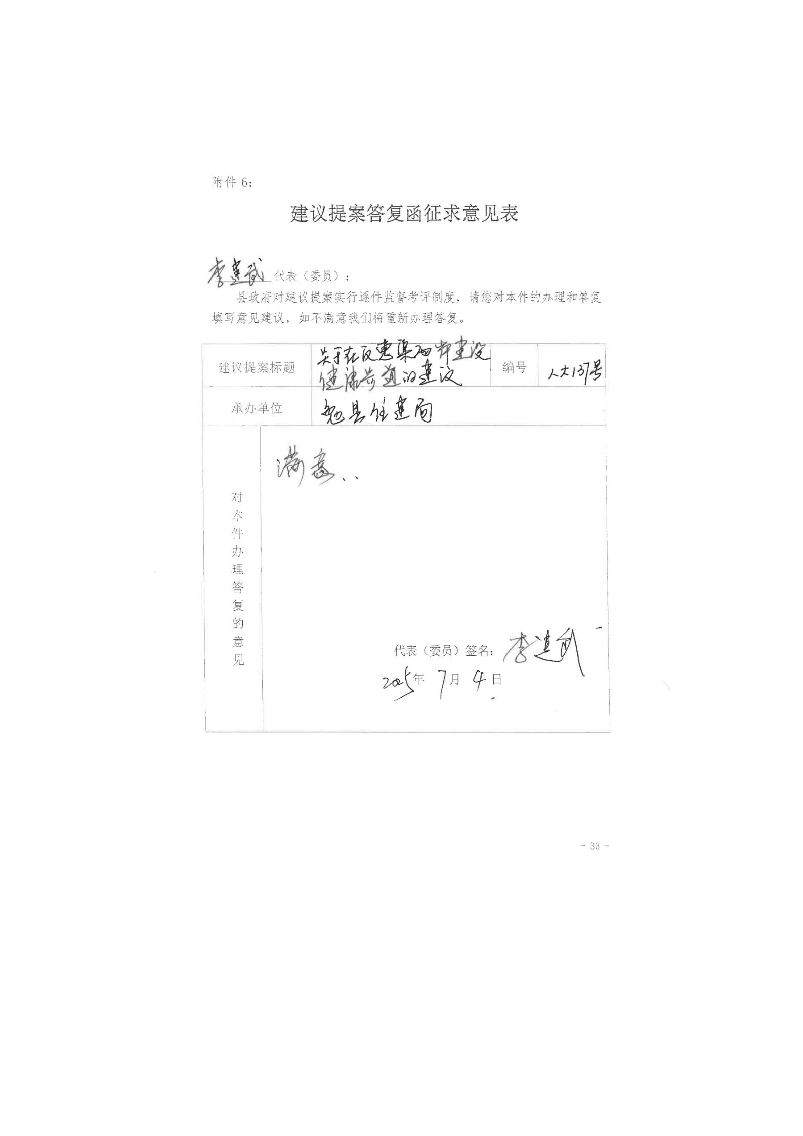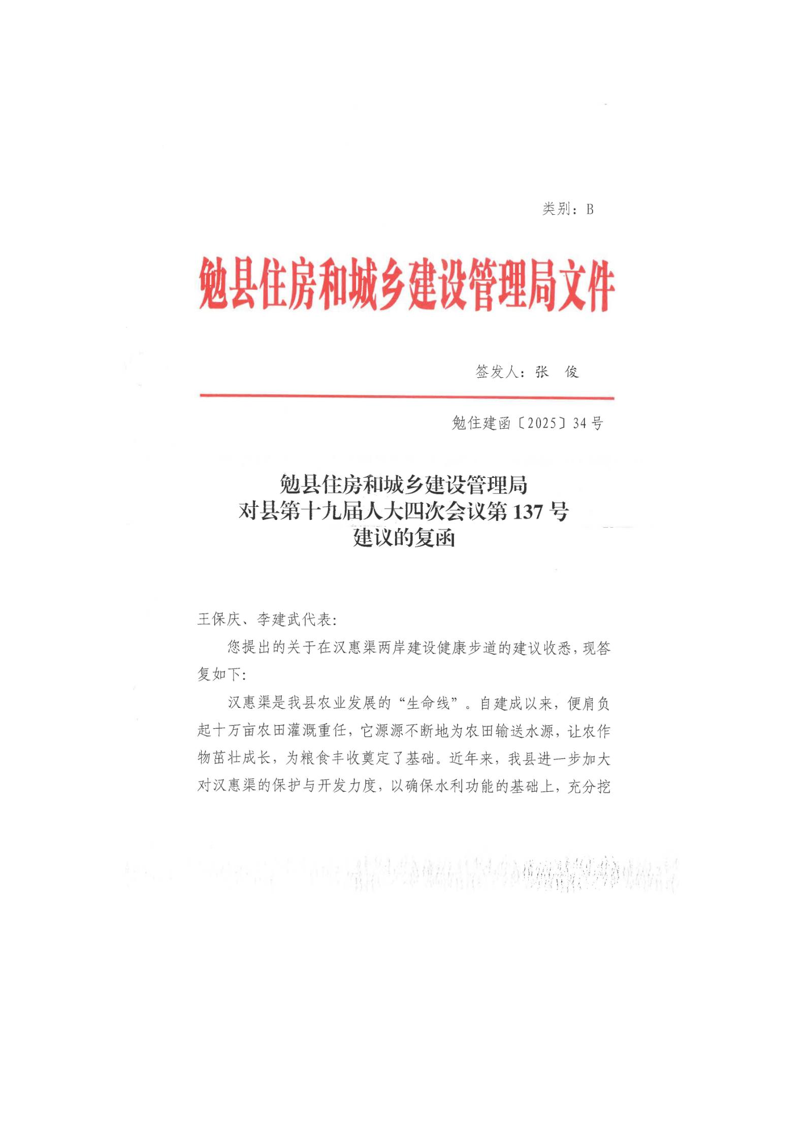 勉县第十九届人民代表大会第四次会议代表建议批评和意见第137号