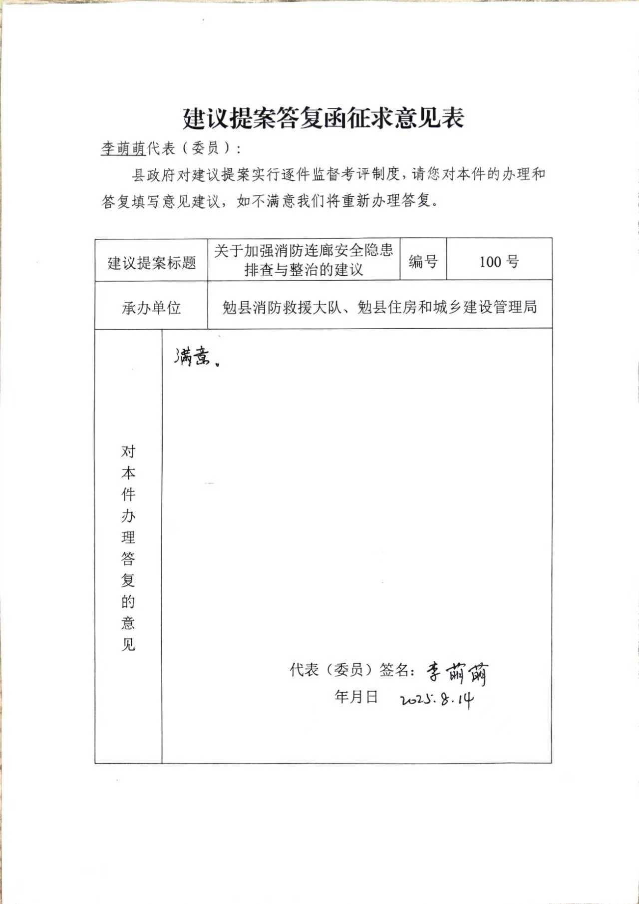 您提出的关于加强消防连廊安全隐患排查与整治的建议收悉,提案指出了我县消防连廊存在的突出安全隐患,对提升住宅小区消防安全管理水平具有重要意义。我大队高度重视,结合全县连廊房现状及日常消防监管情况,现答复如下: